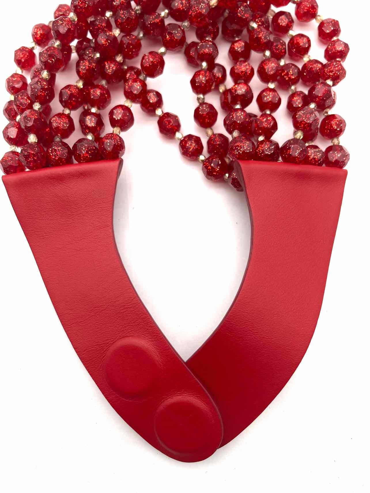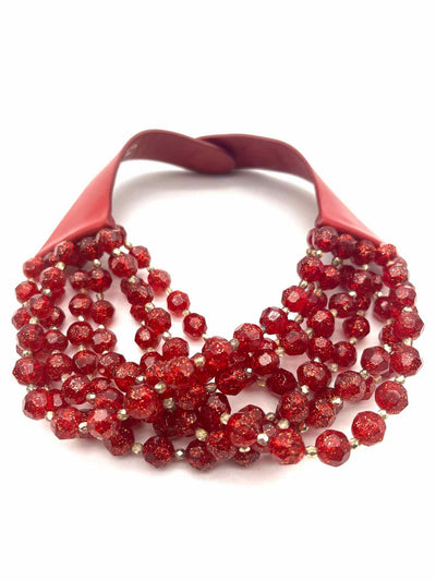 Fairchild Baldwin Red Multi-Strand Beaded Leather W/ BAG! Jewelry Necklace