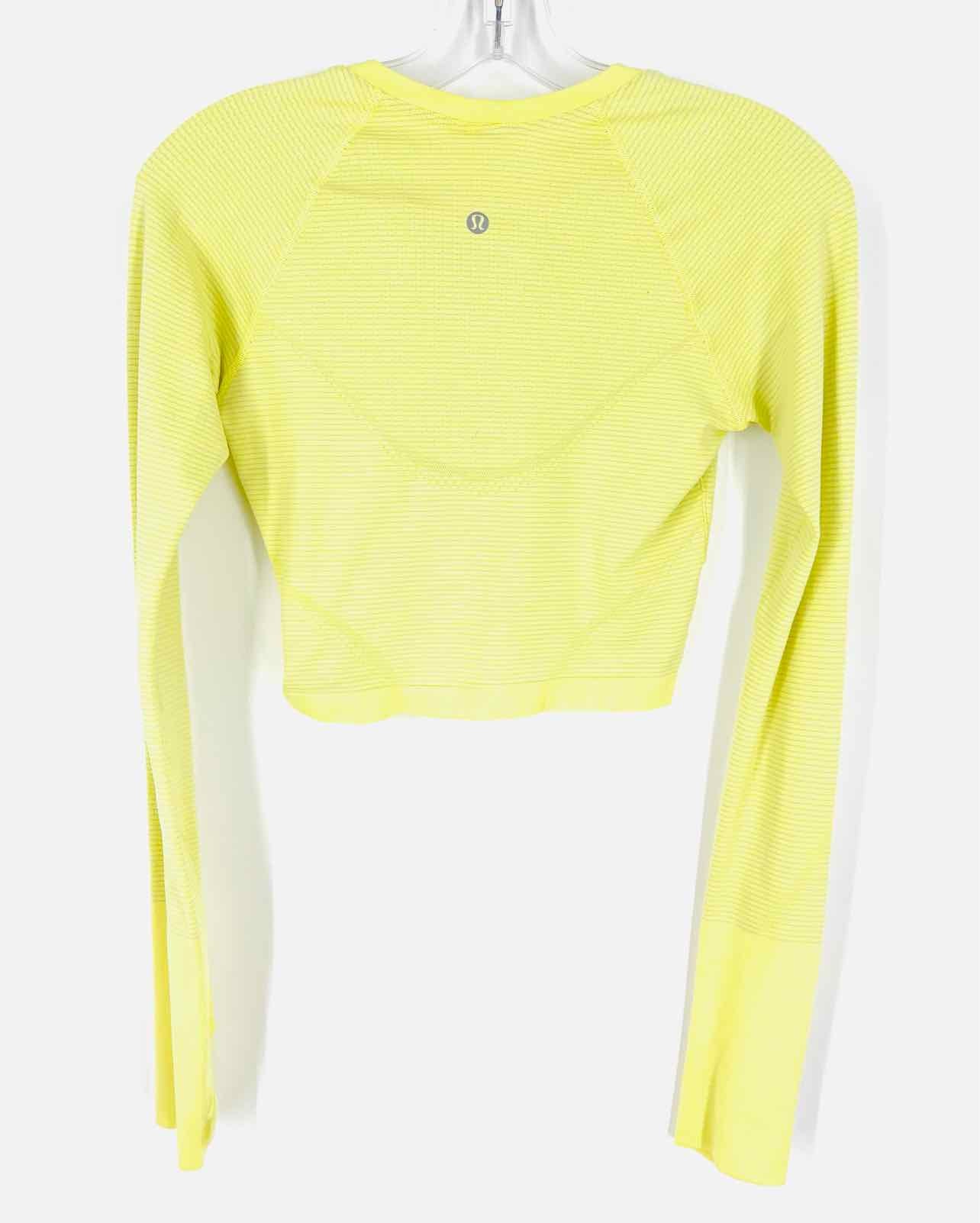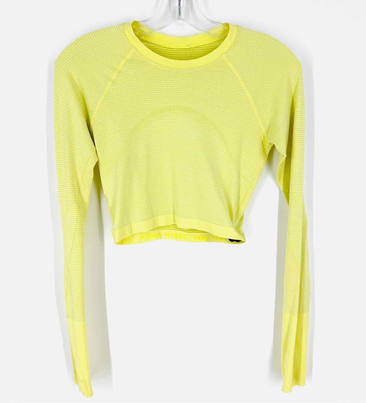 Lululemon Athletica Size 4 Yellow Cropped Stripe Activewear Top-Long Sleeve