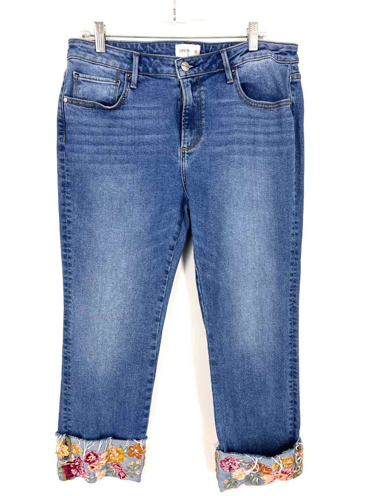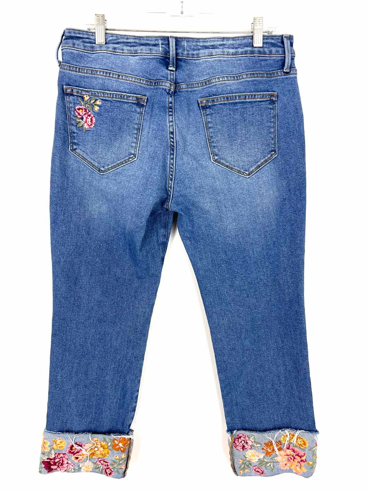 Driftwood Size 14 Denim/Multi Floral Cuffed Premium Denim Jeans