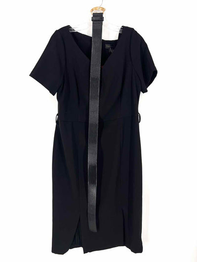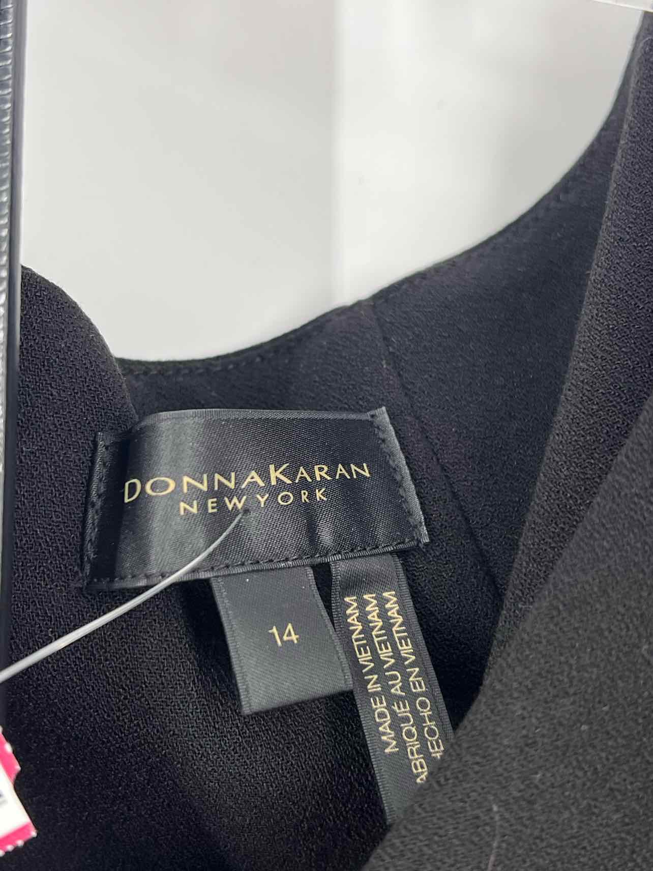 Donna Karan Size 14 Black/Gold Solid Slit Belted Dresses Dress
