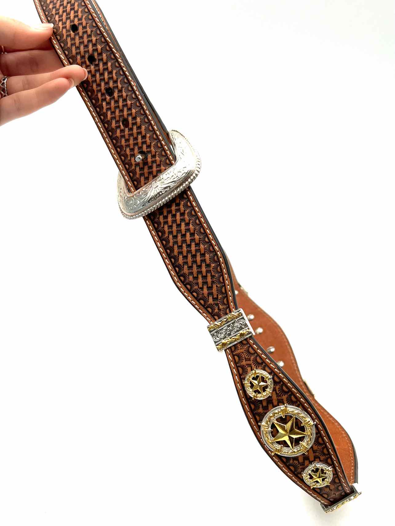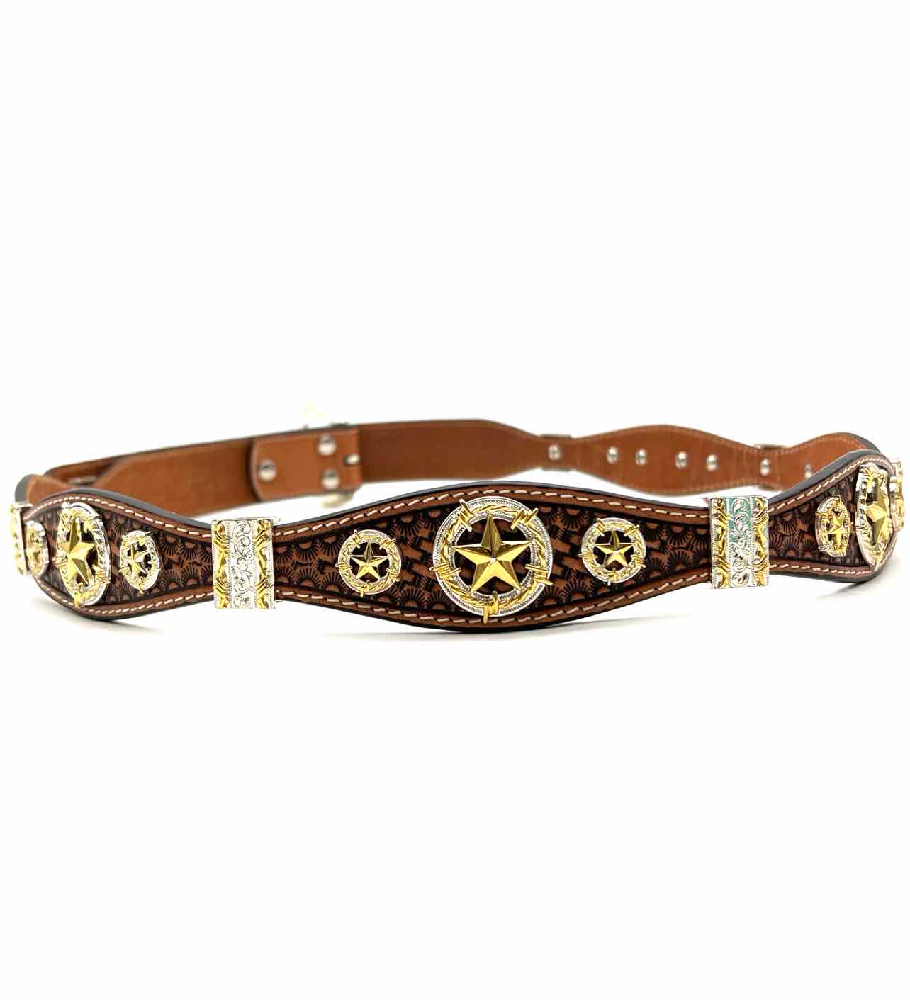 nocona Size 44 Brown/Gold Embellished Leather Men's Belt