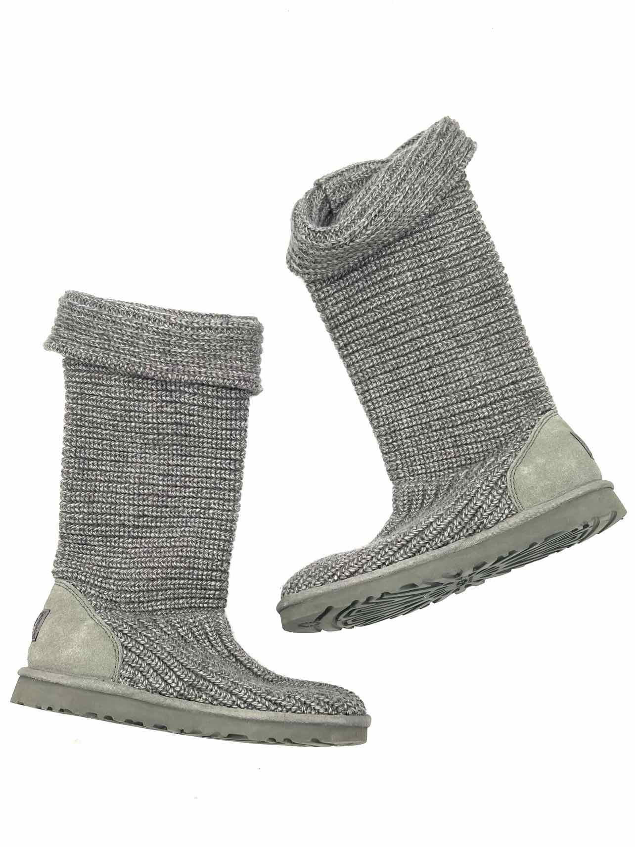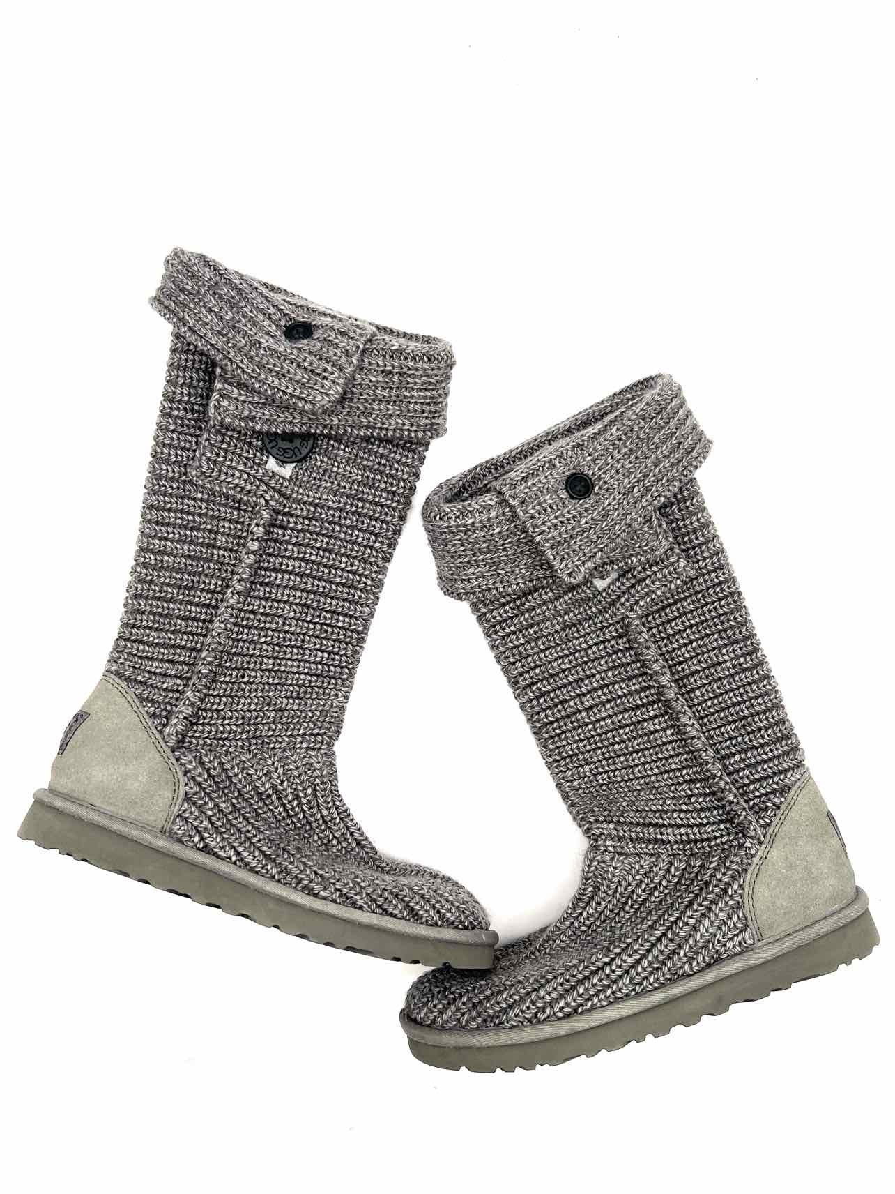 UGG Size 7 Gray/Black Button(s) Knit Shoes Boots
