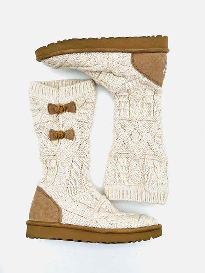 UGG Size 7 Beige/White Variegated Cable Knit Shoes Boots