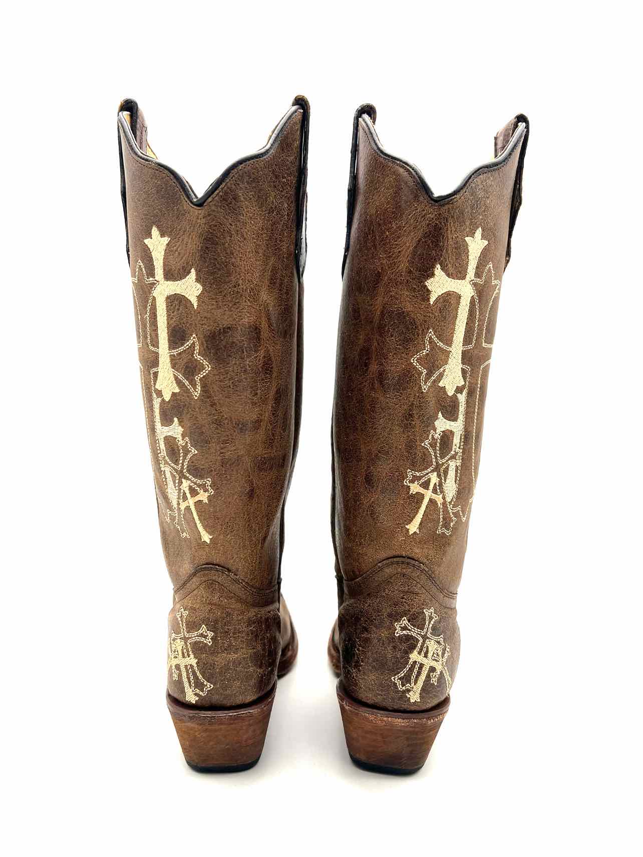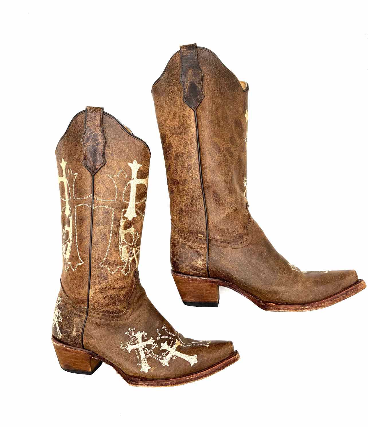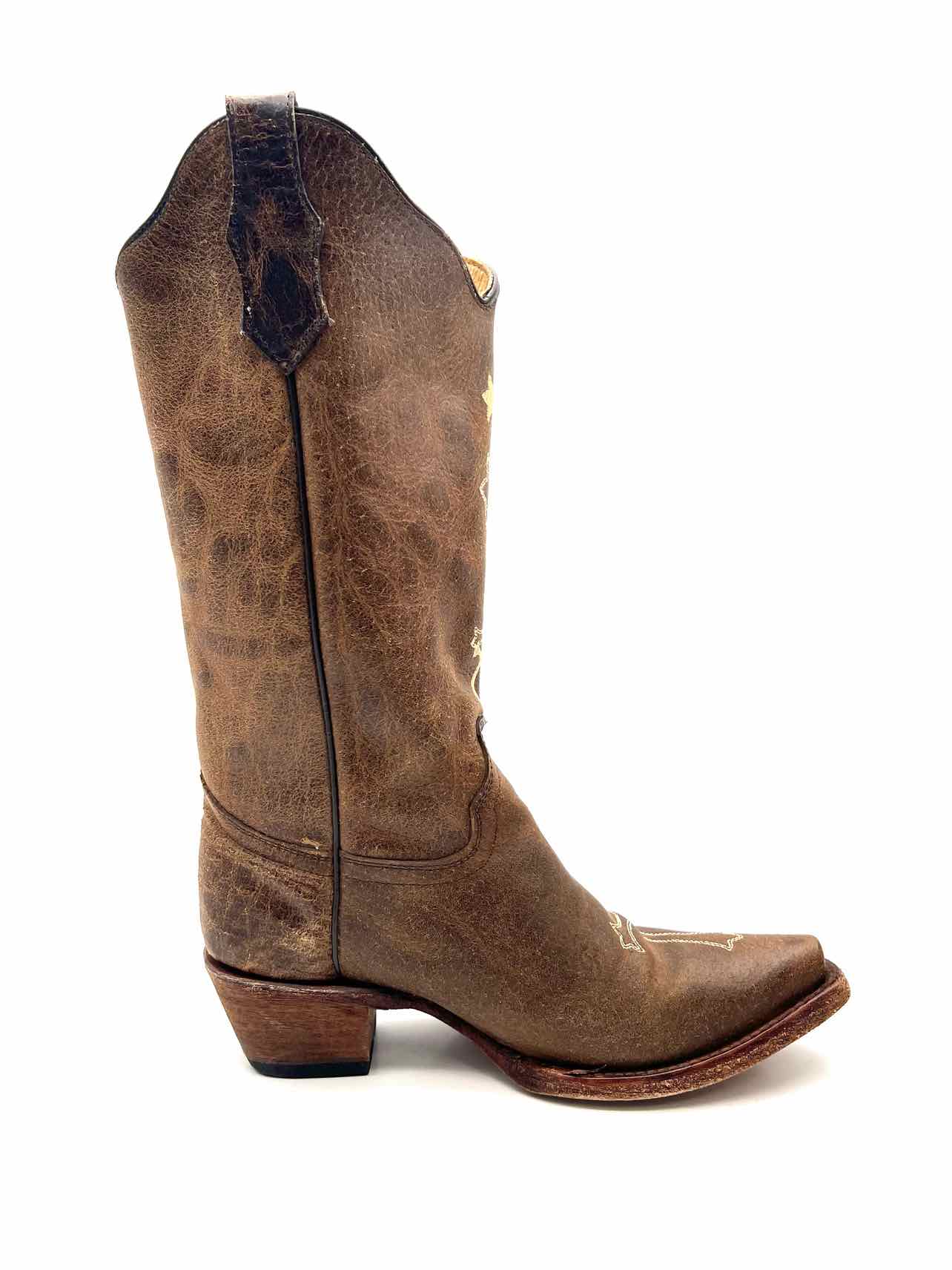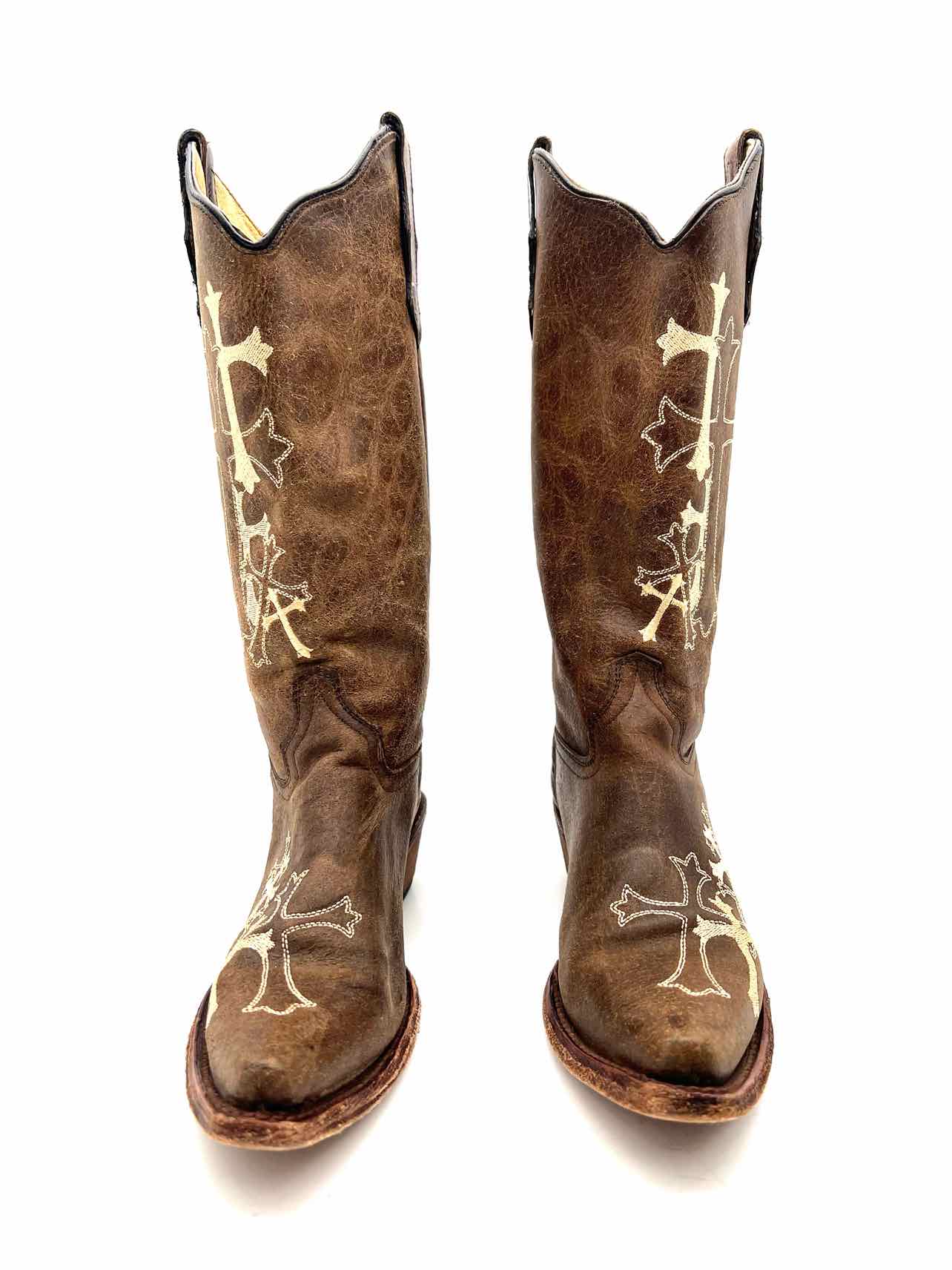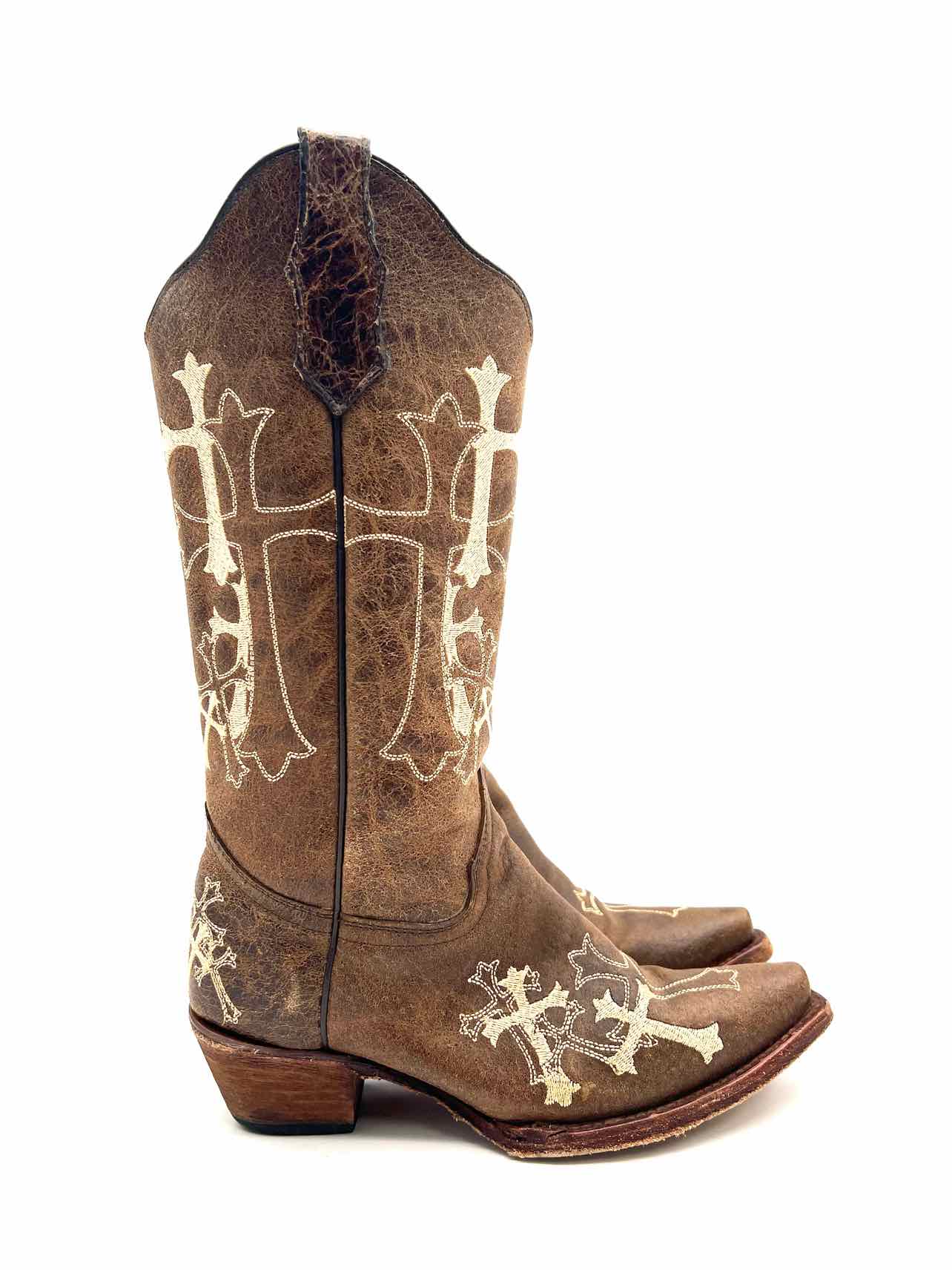Circle G Size 7 Brown/Cream Stitched Leather Shoes Cowboy Boots