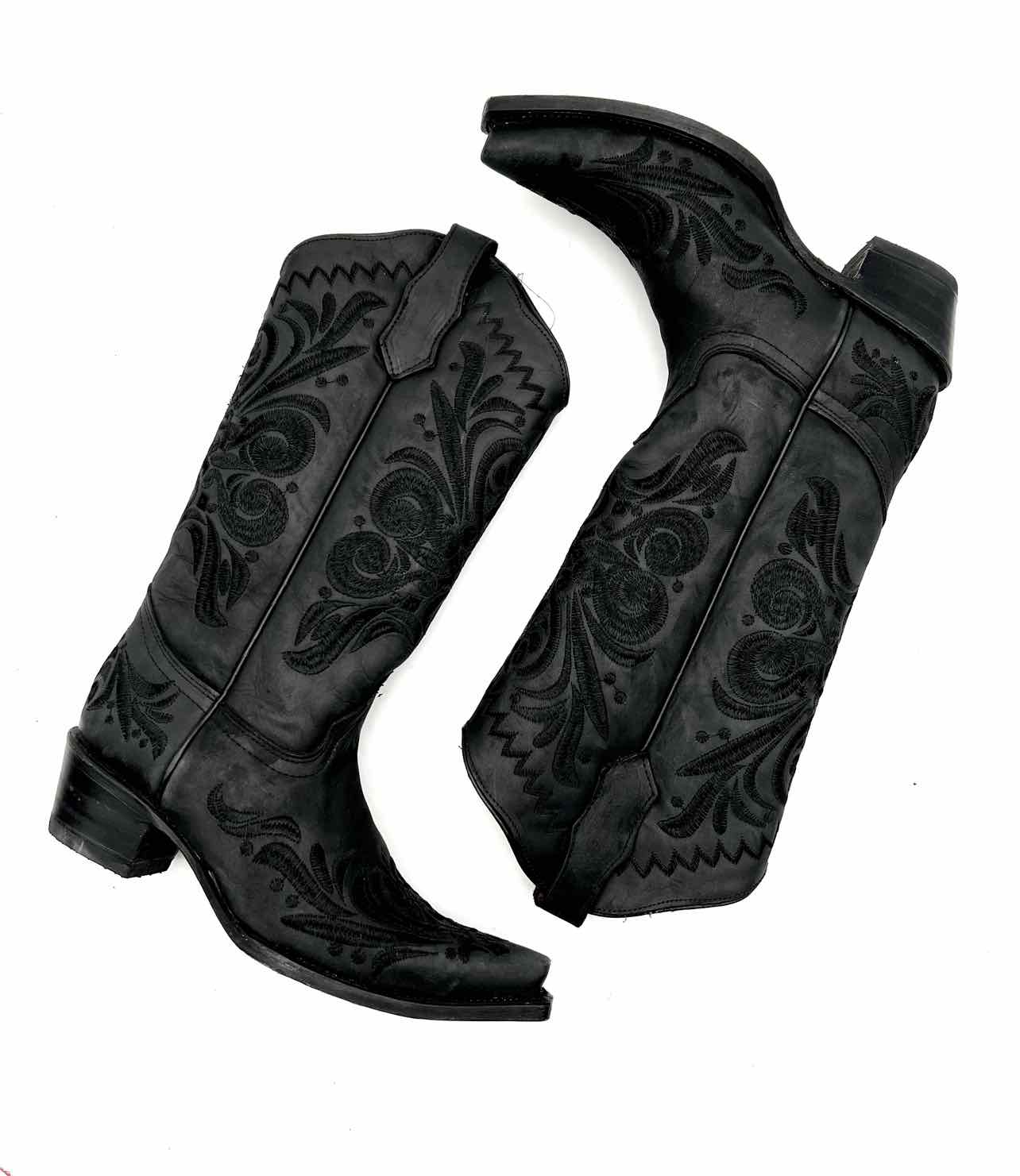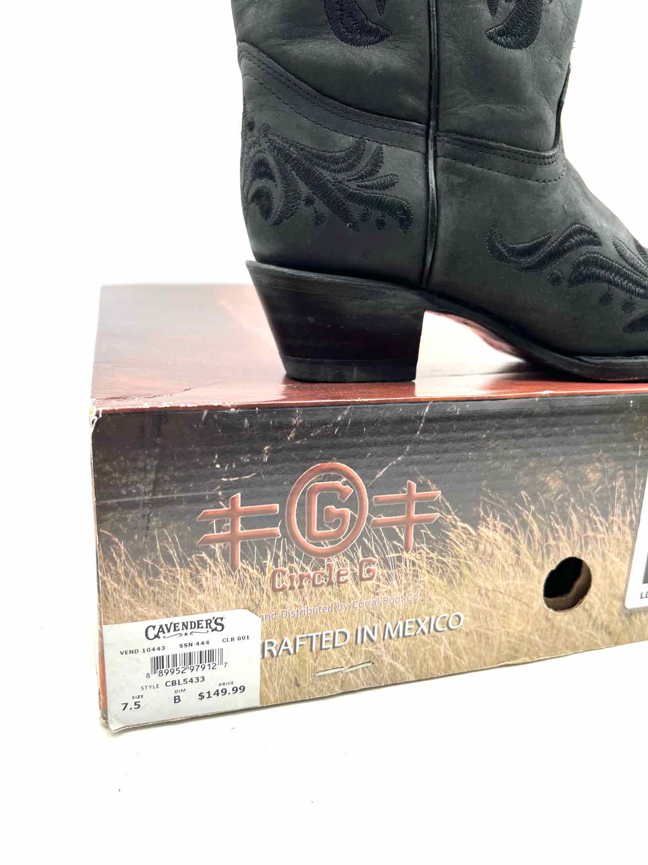 Circle G Size 7.5 Black Embroidered Leather W/ BOX!!! Designer Cowboy Boots