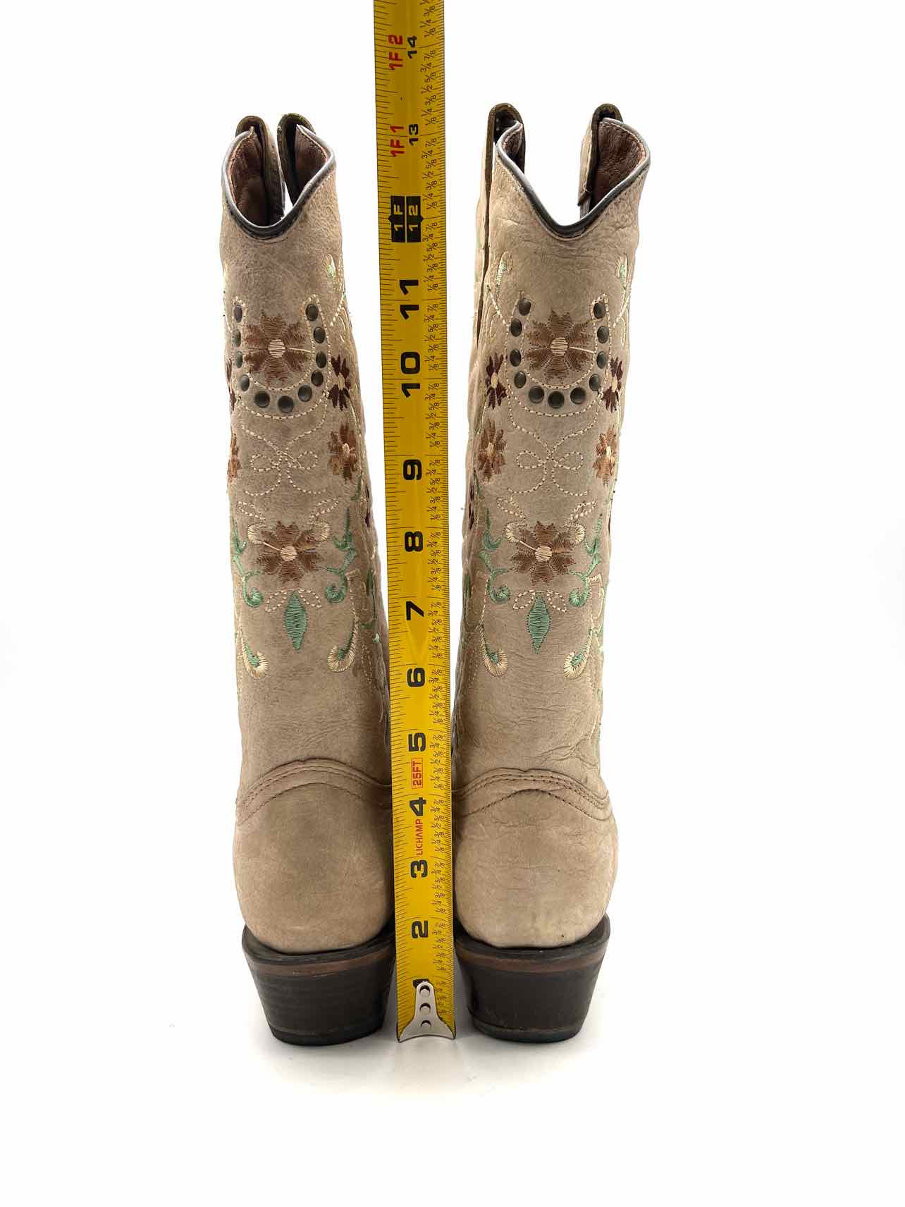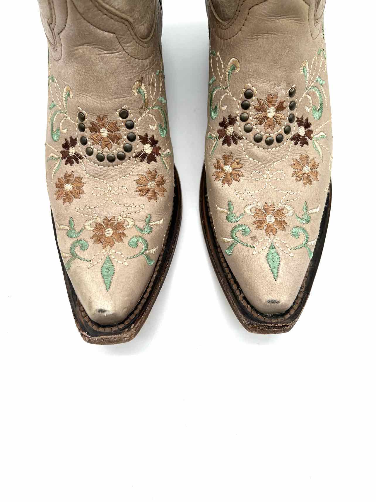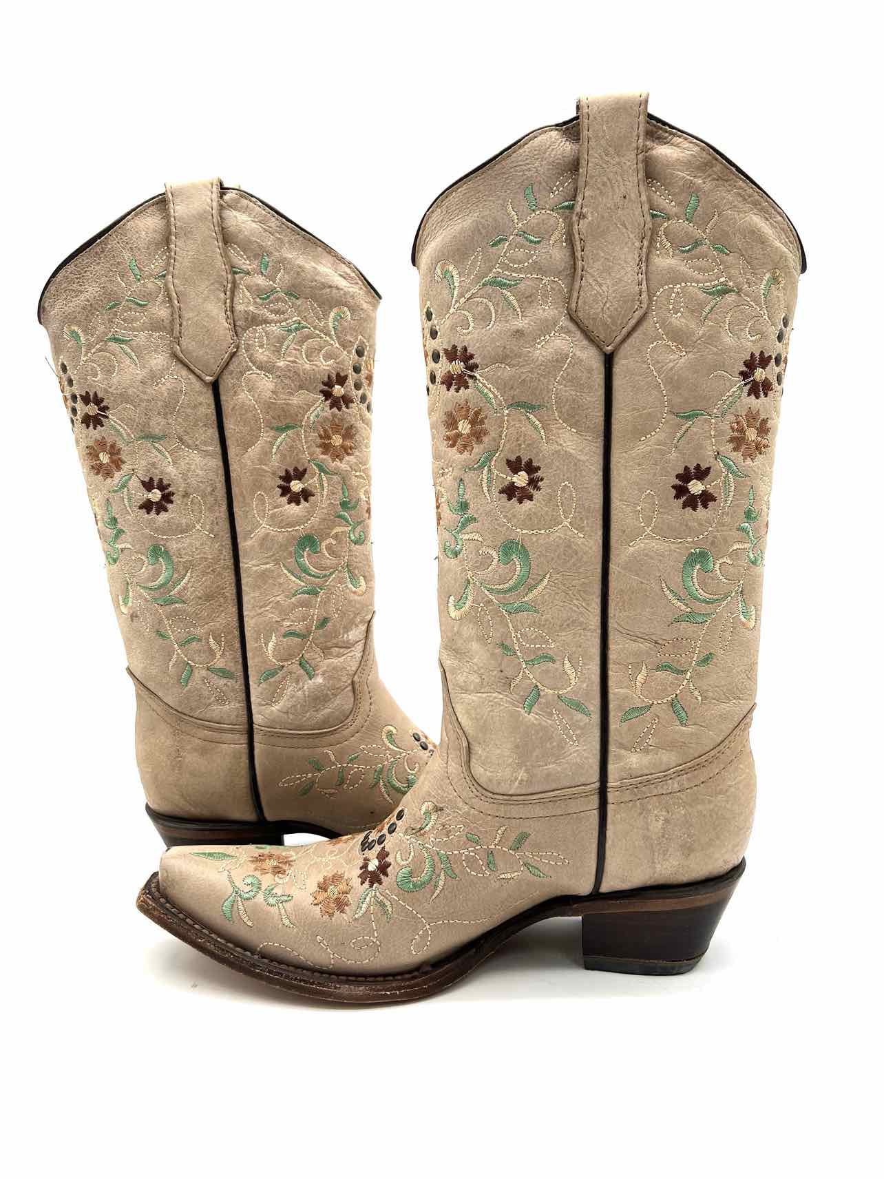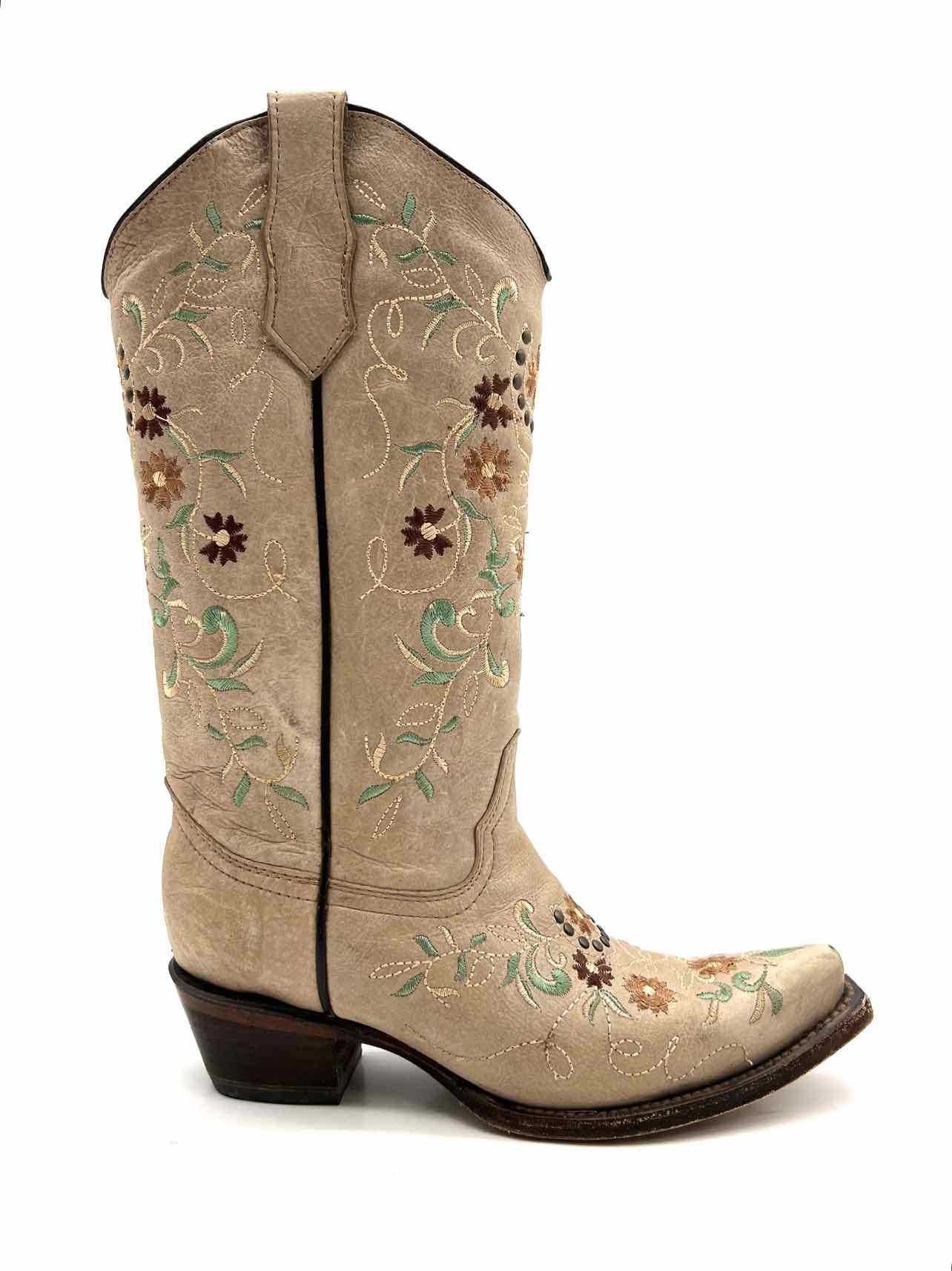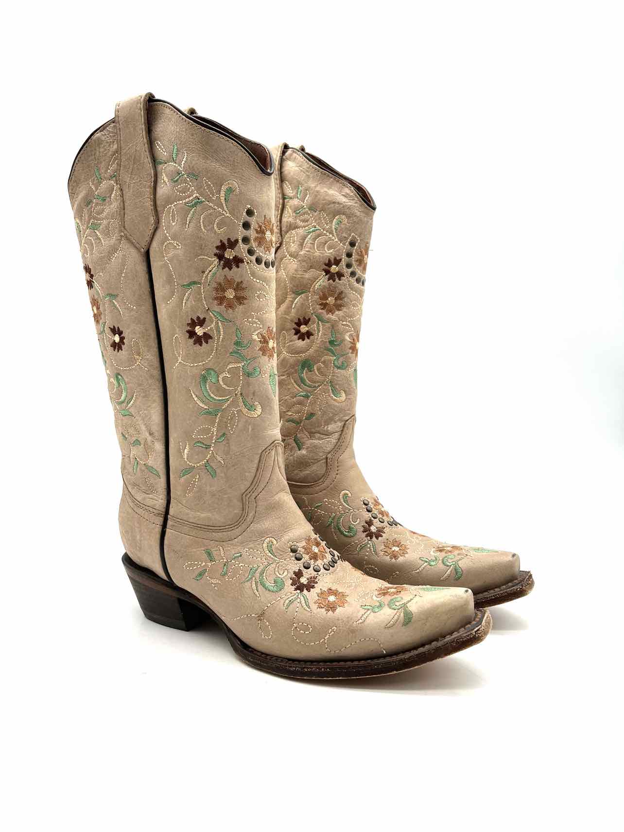 Corral Size 7.5 Taupe/Black Embroidered Leather Shoes Cowboy Boots