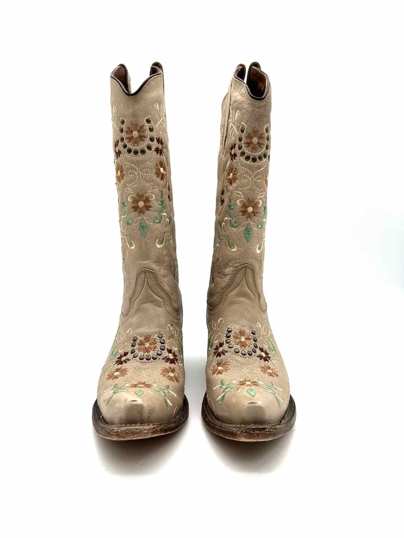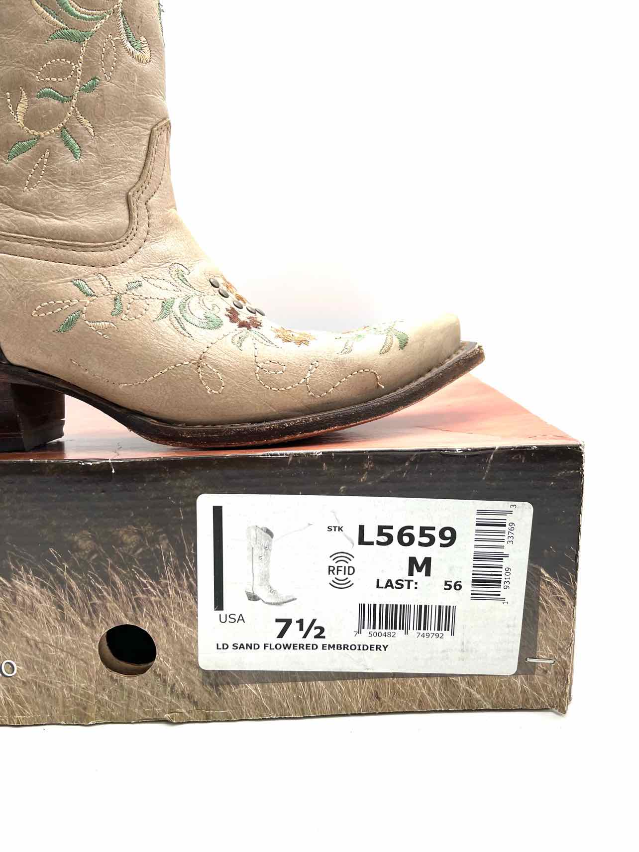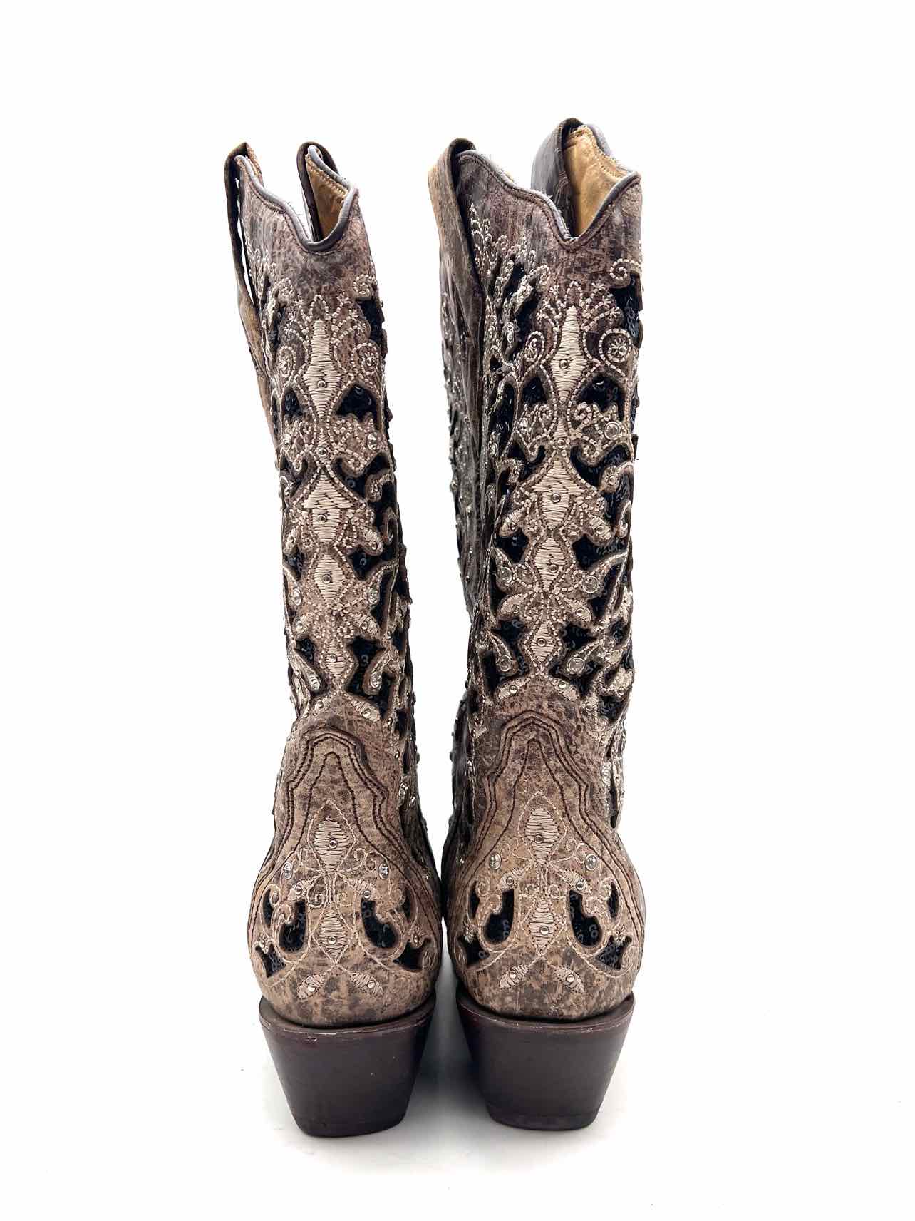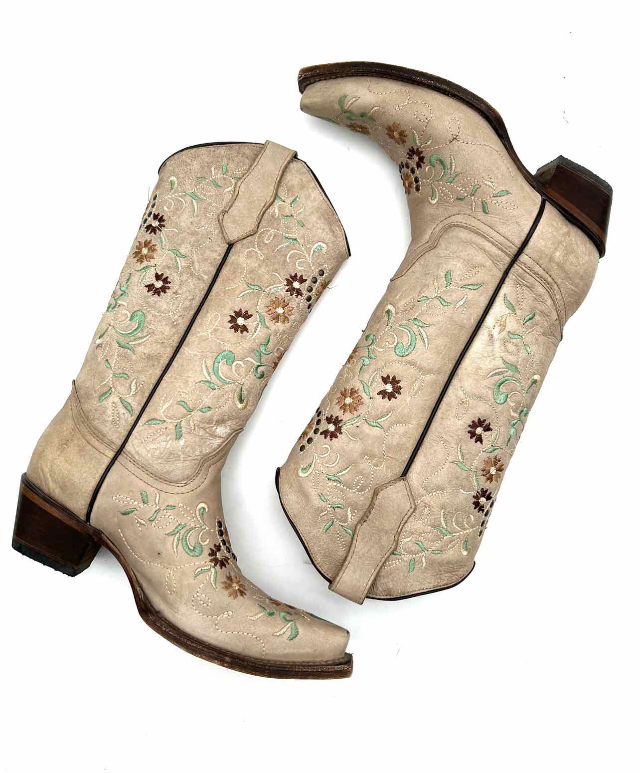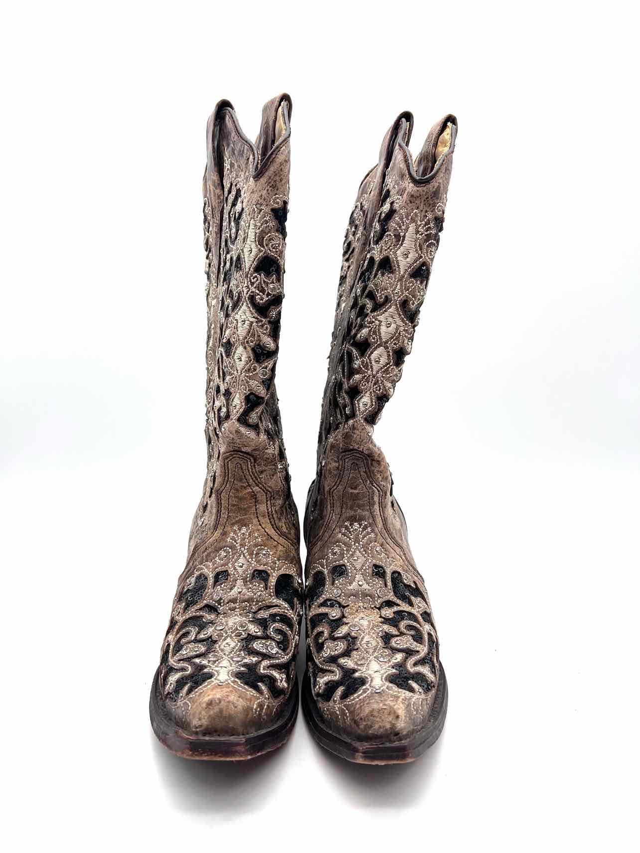 Corral Size 7.5 Taupe/Black Embroidered Leather Shoes Cowboy Boots