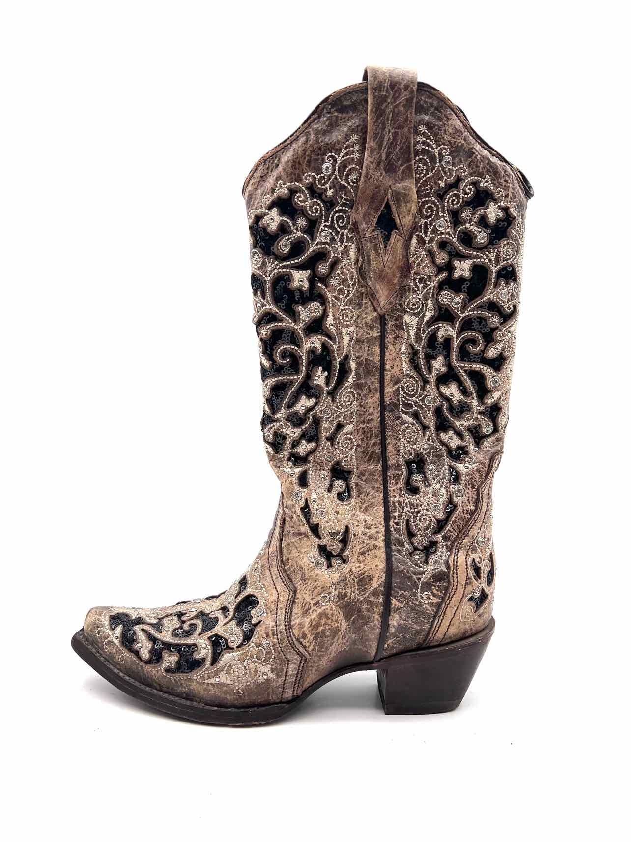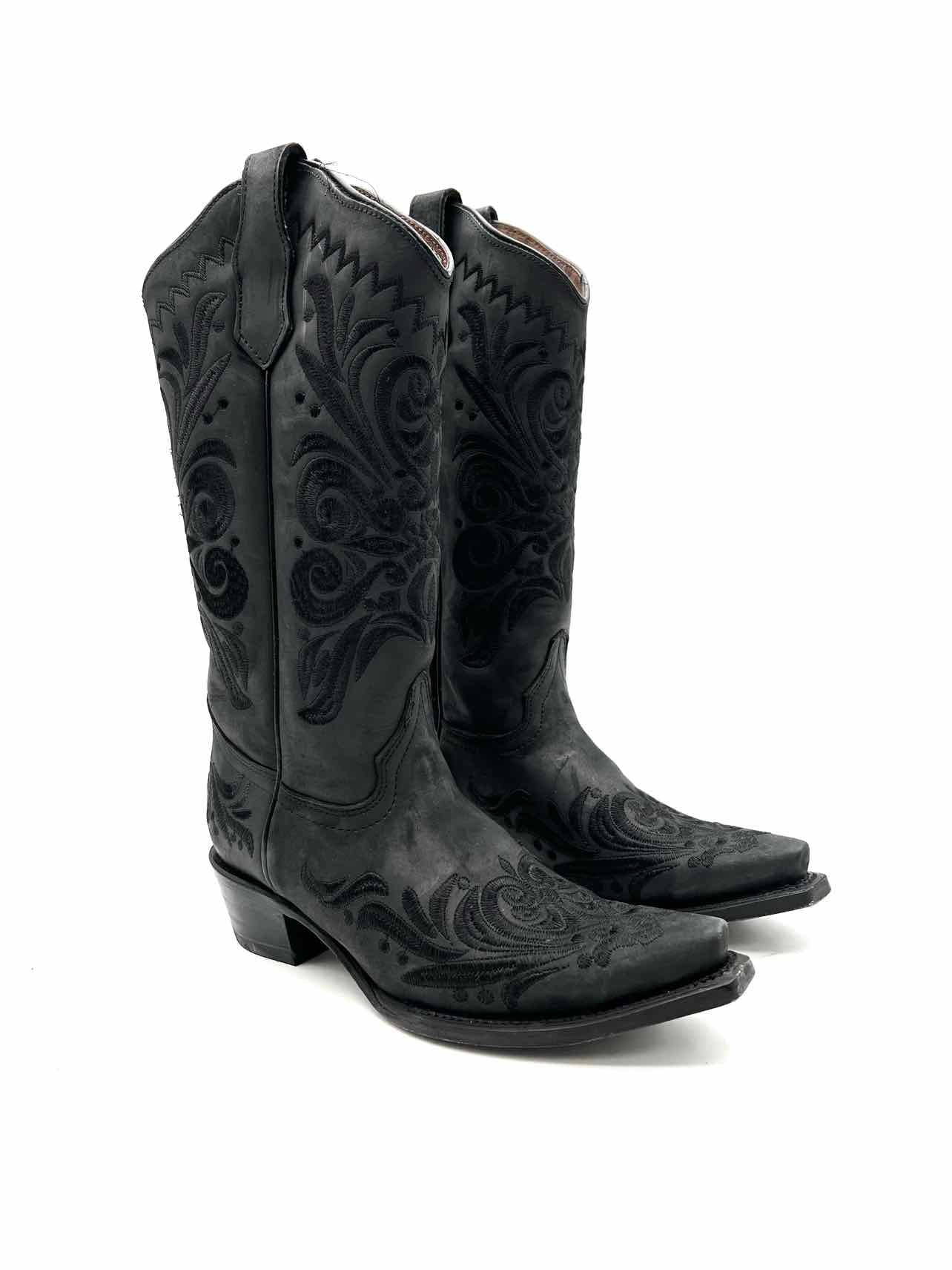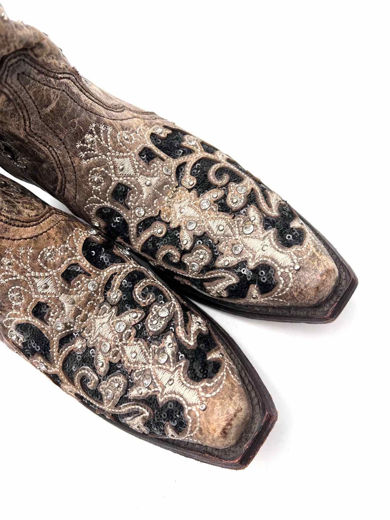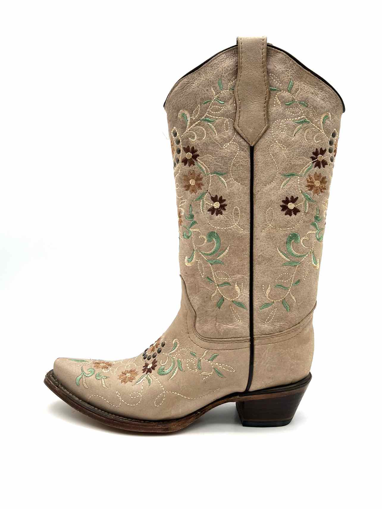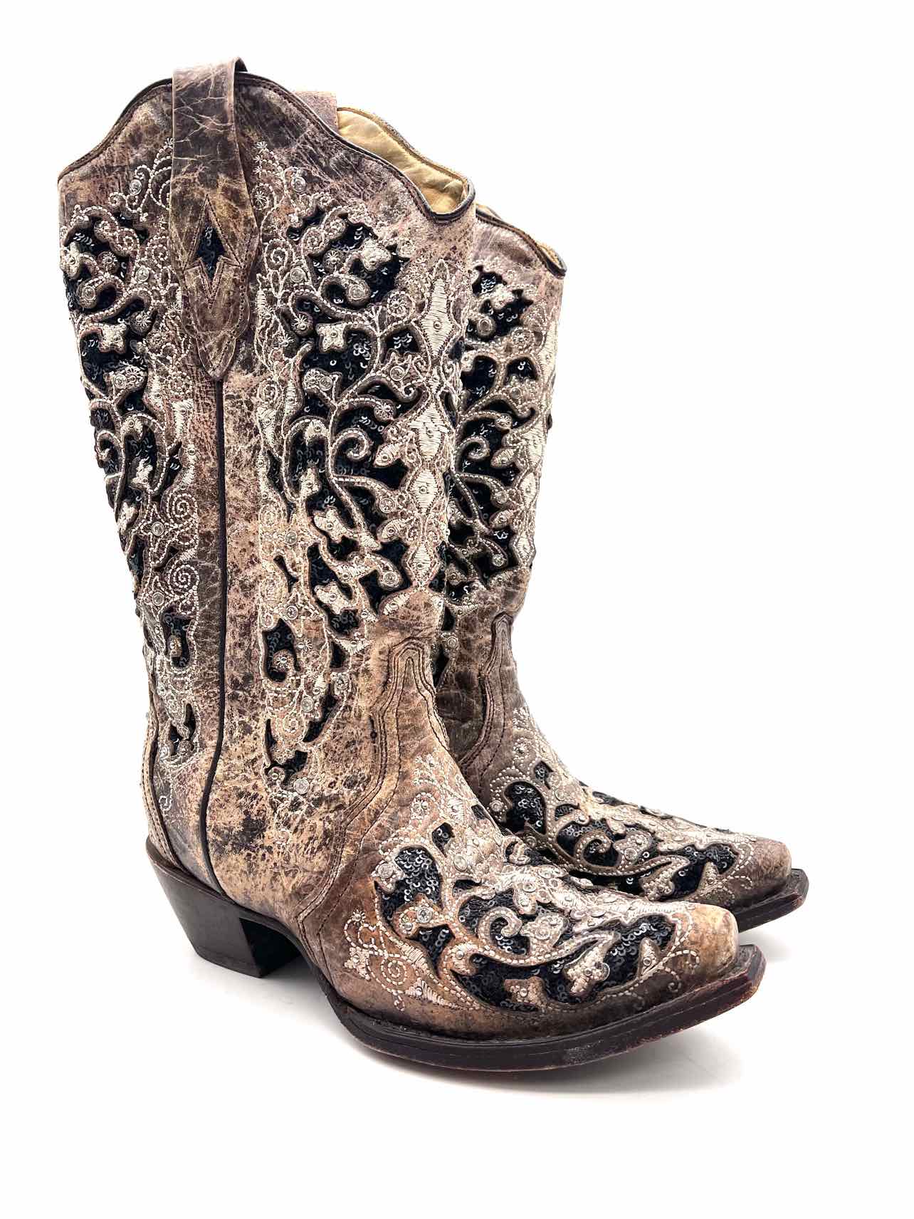 Corral Size 7.5 Taupe/Black Embroidered Leather Shoes Cowboy Boots