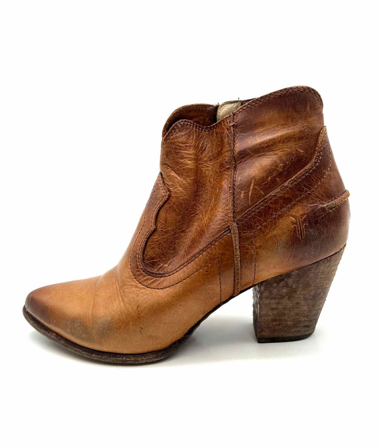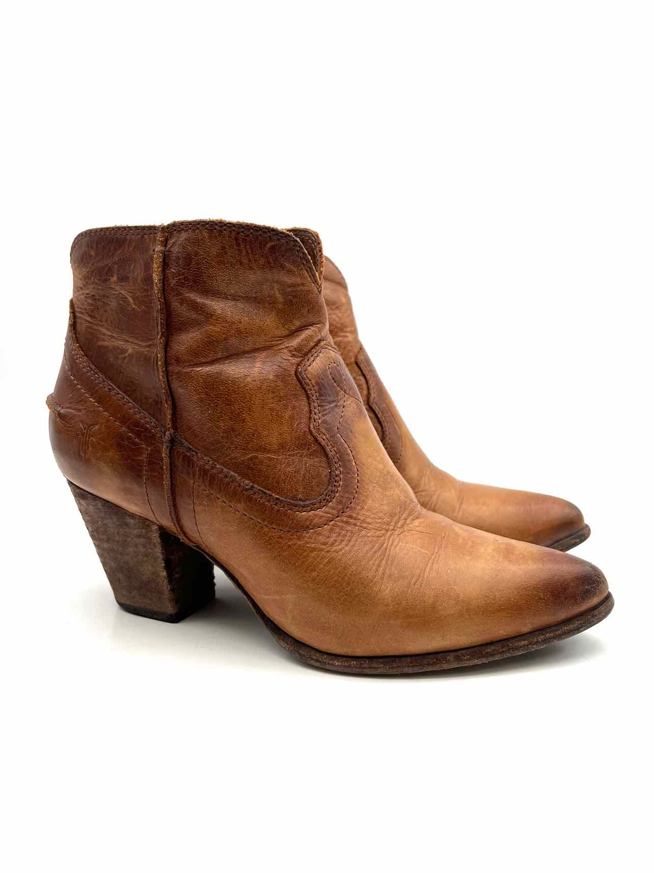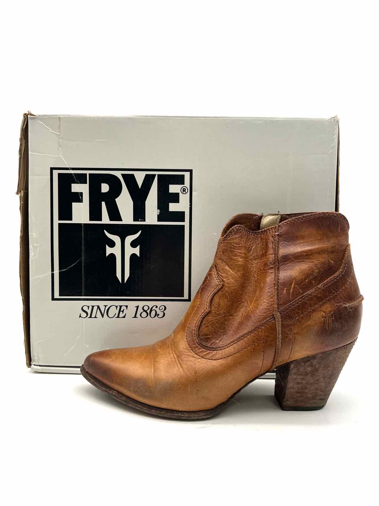 Frye Size 7.5 Cognac Zipper Leather W/ BOX!!! Shoes Ankle Boots