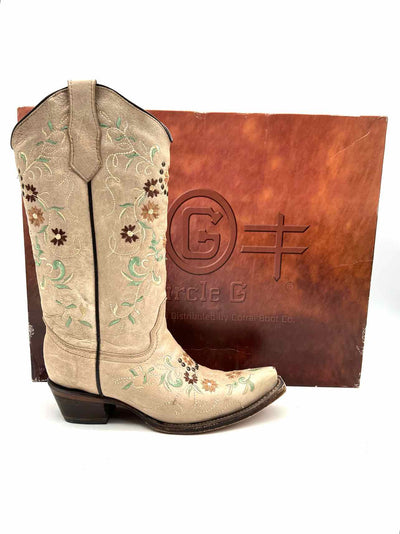 Circle G Size 7.5 Taupe/Green Floral Leather W/ BOX!!! Designer Cowboy Boots