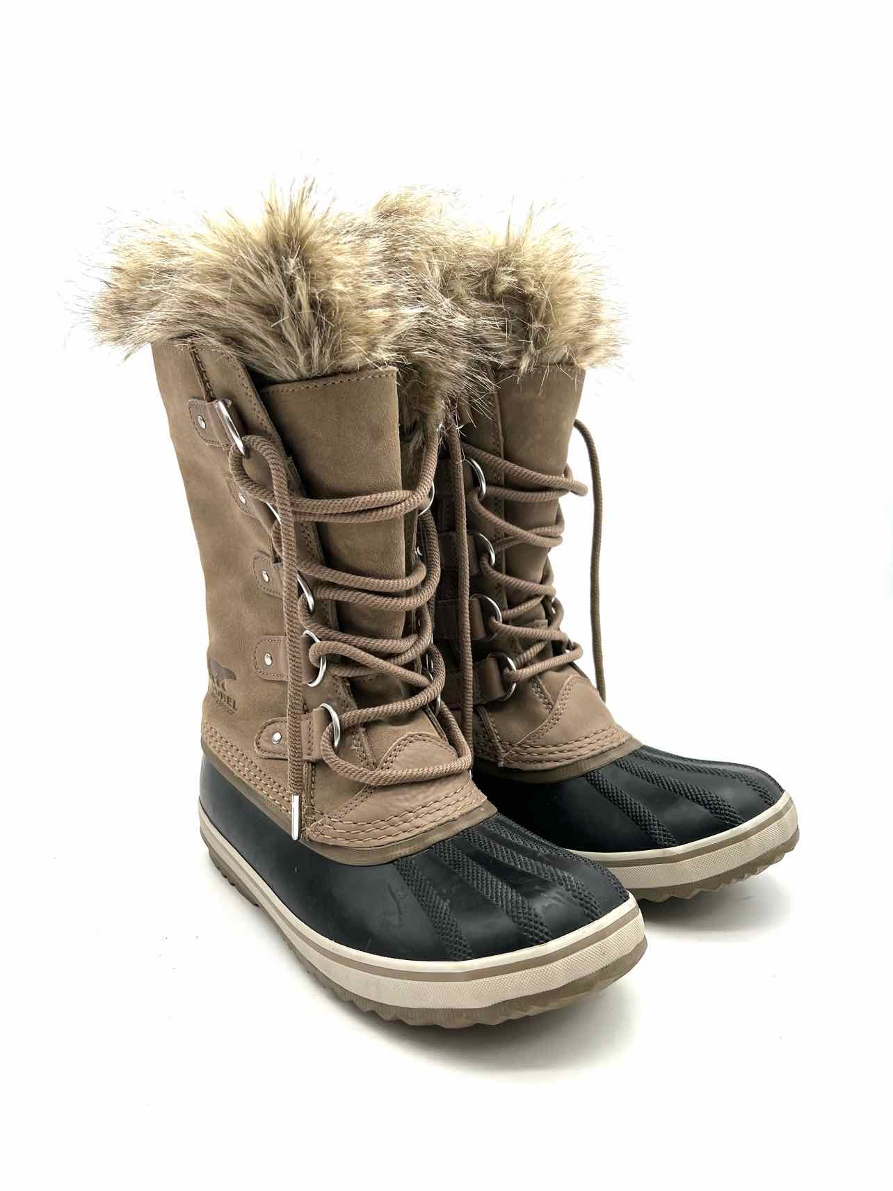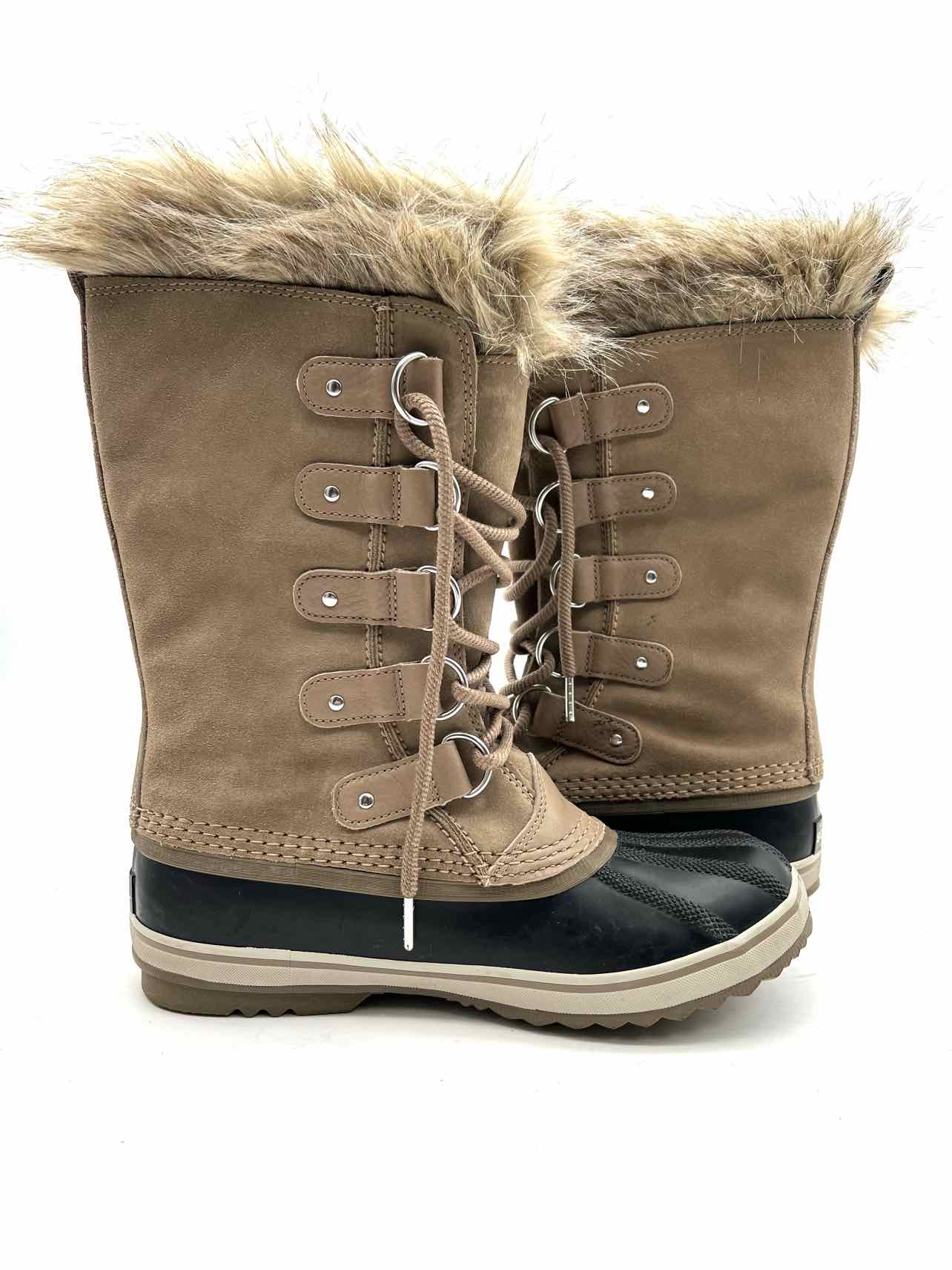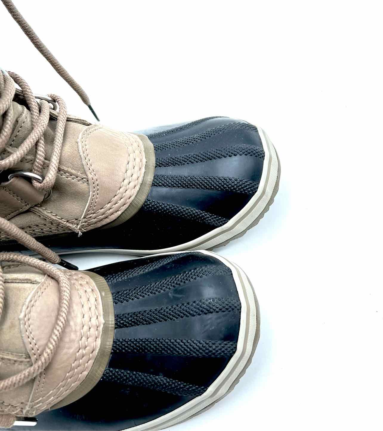 Sorel Size 9.5 Taupe/Black Lace-Up Faux Fur Shoes Boots