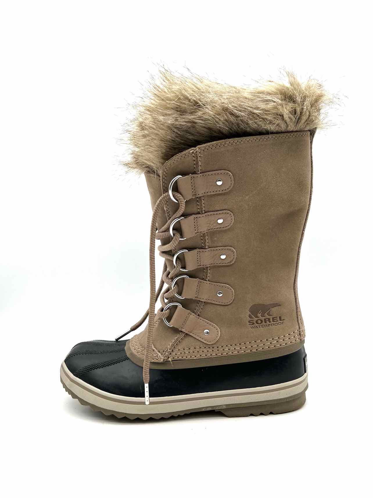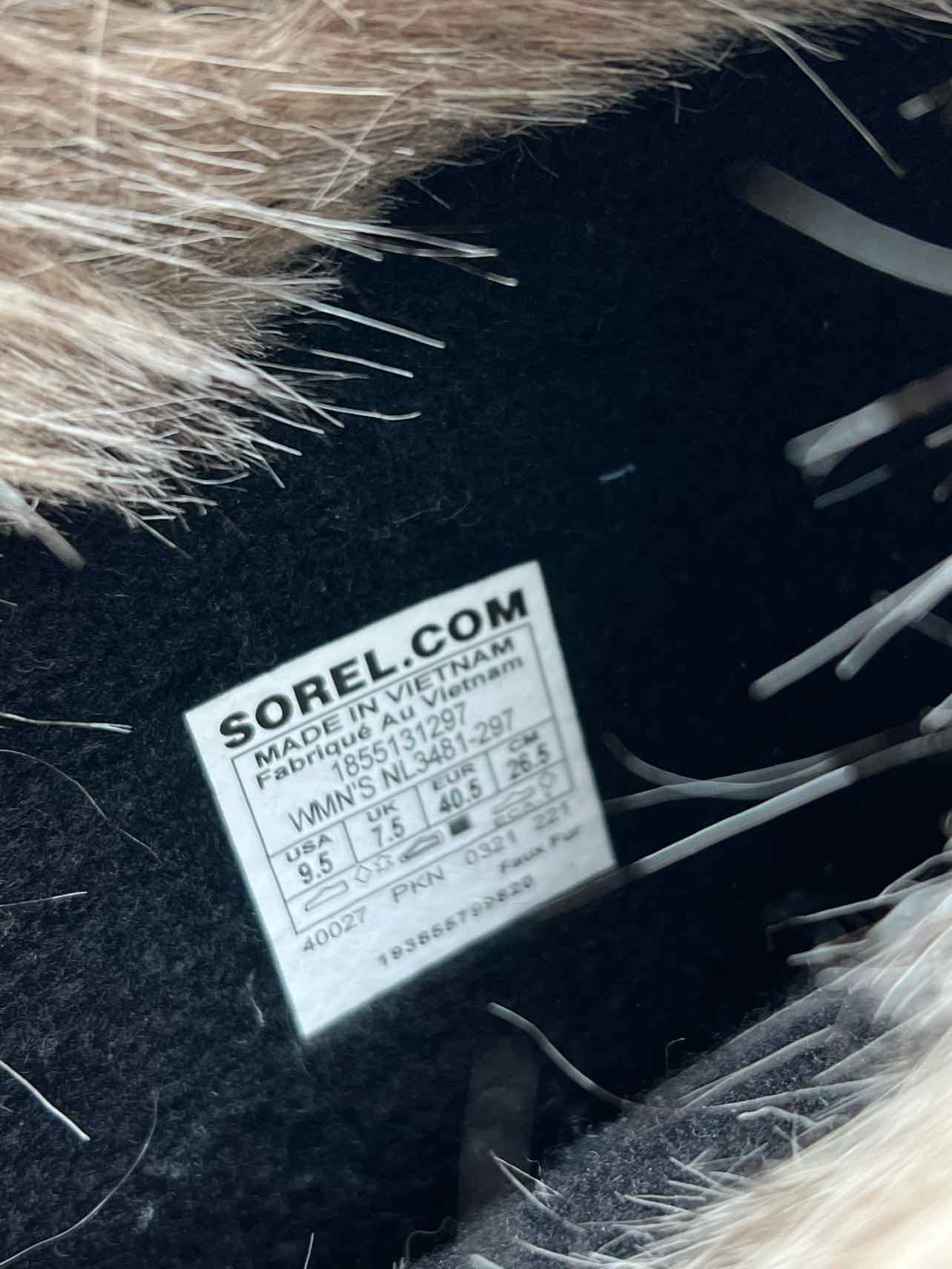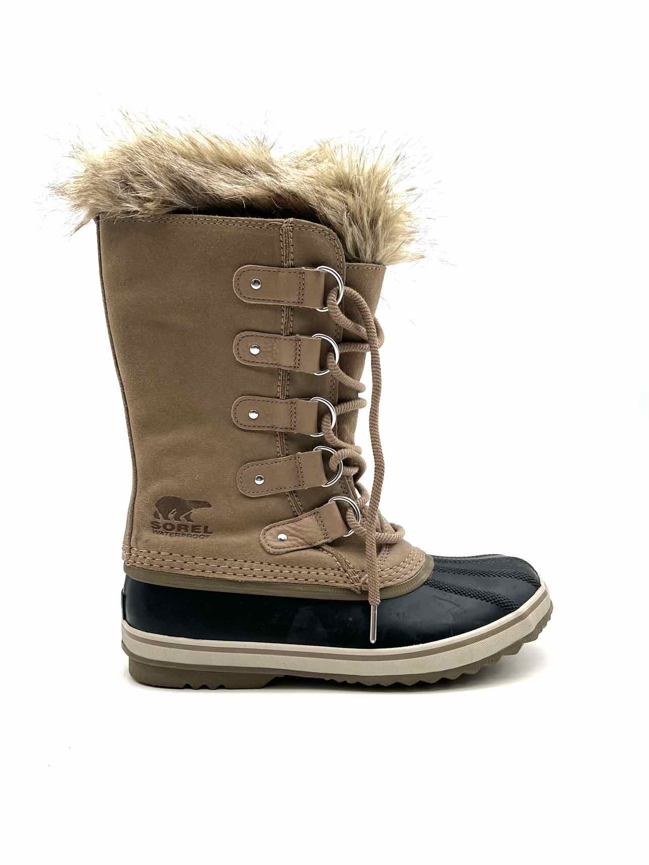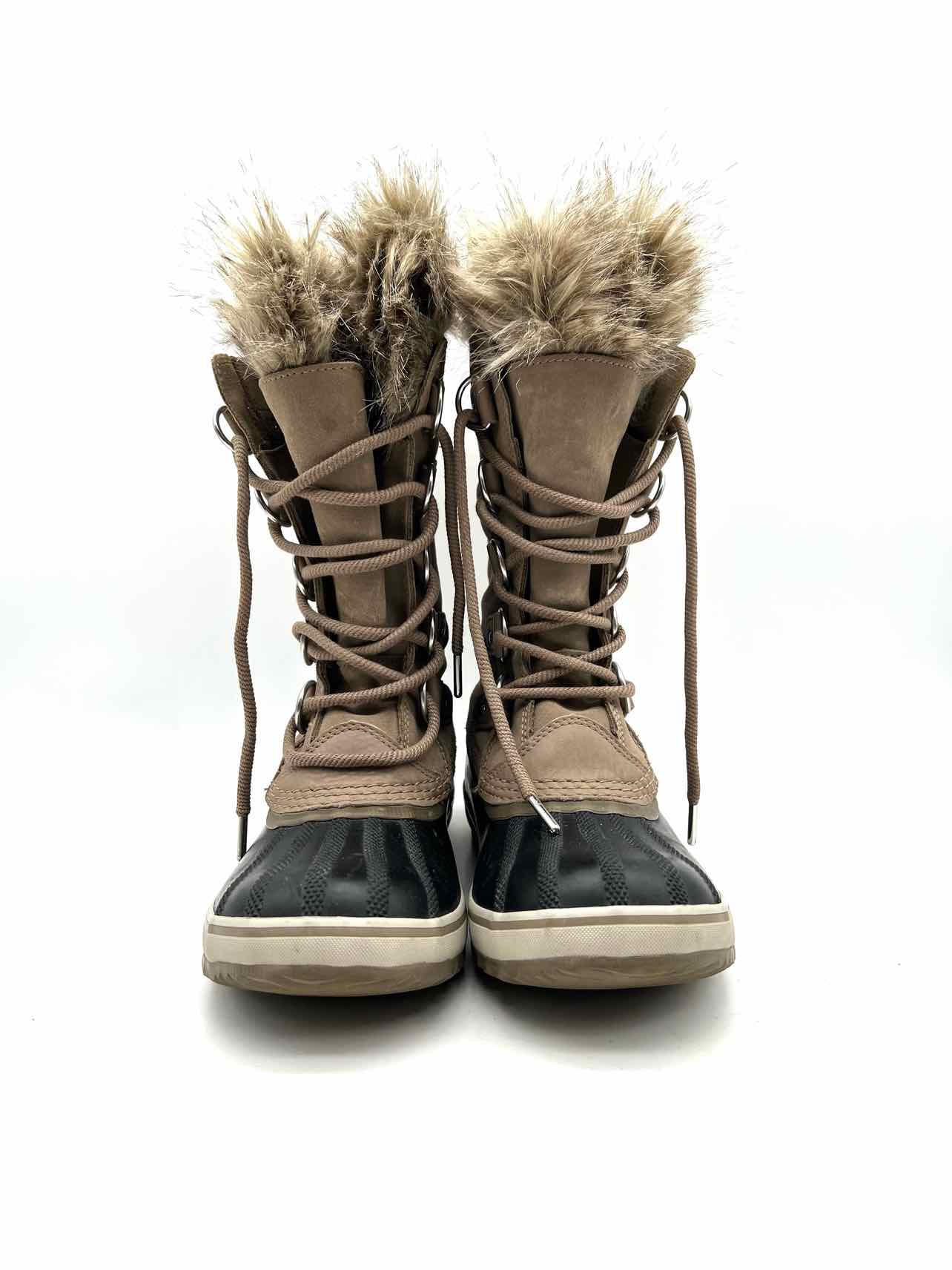 Sorel Size 9.5 Taupe/Black Lace-Up Faux Fur Shoes Boots