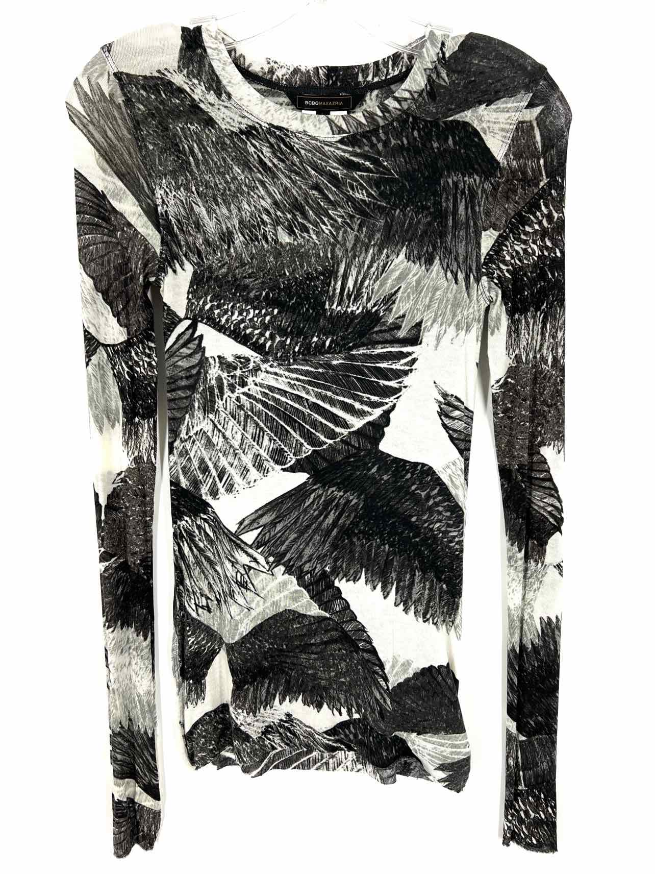 BCBGMaxazria Size S Black/White Print Knit Tops Top-Long Sleeve