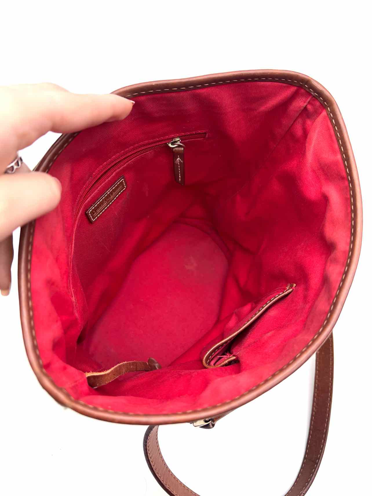 Dooney & Bourke Dk Brown/Red Signature Coated Cotton NEW Crossbody Purse