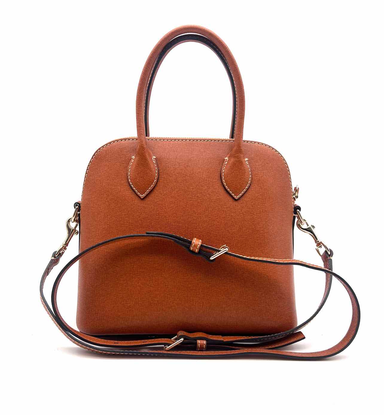 Dooney & Bourke Size Dome Cognac Crossgrain Leather Designer Satchel