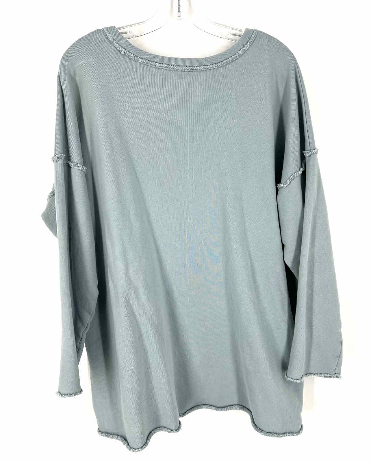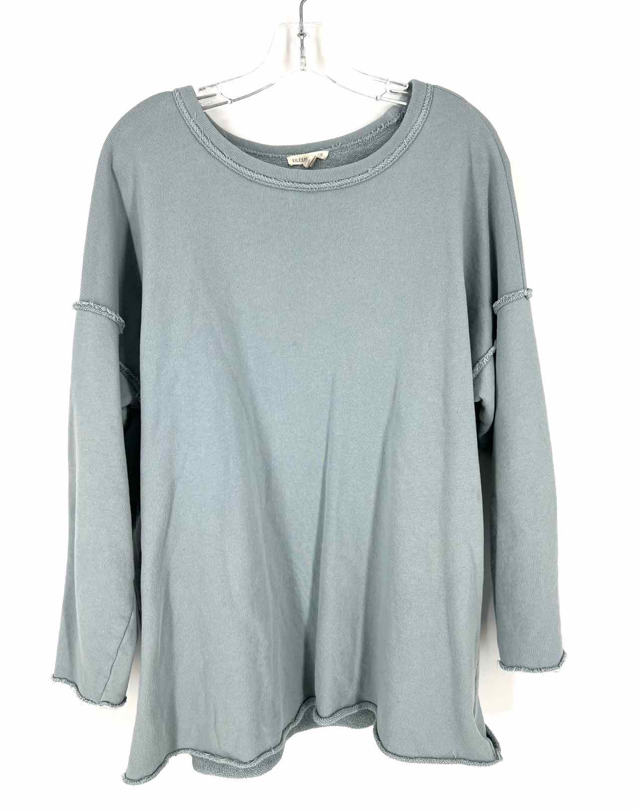 Eileen Fisher Size M Slate Solid Raw Hem Designer Top-Long Sleeve