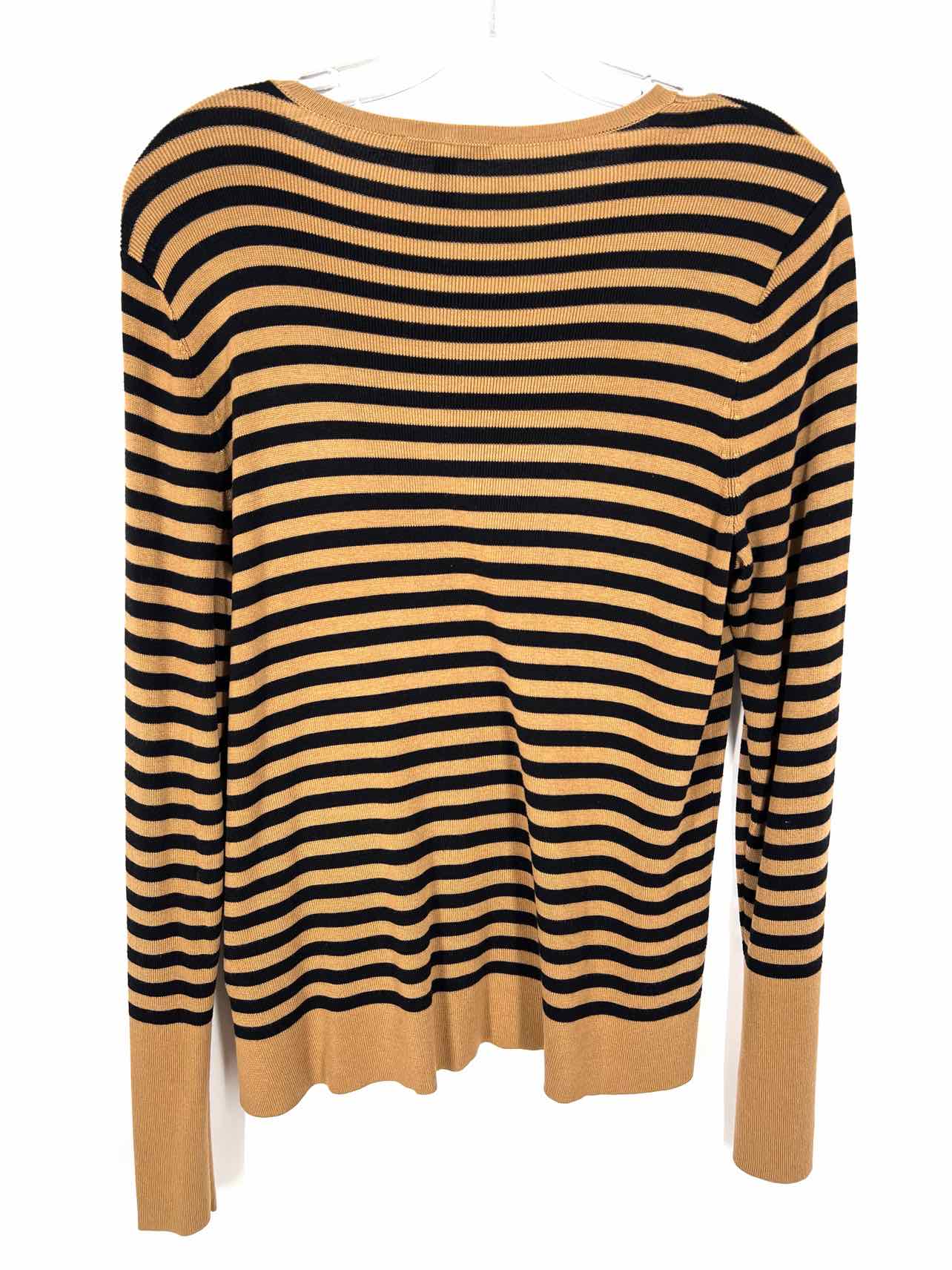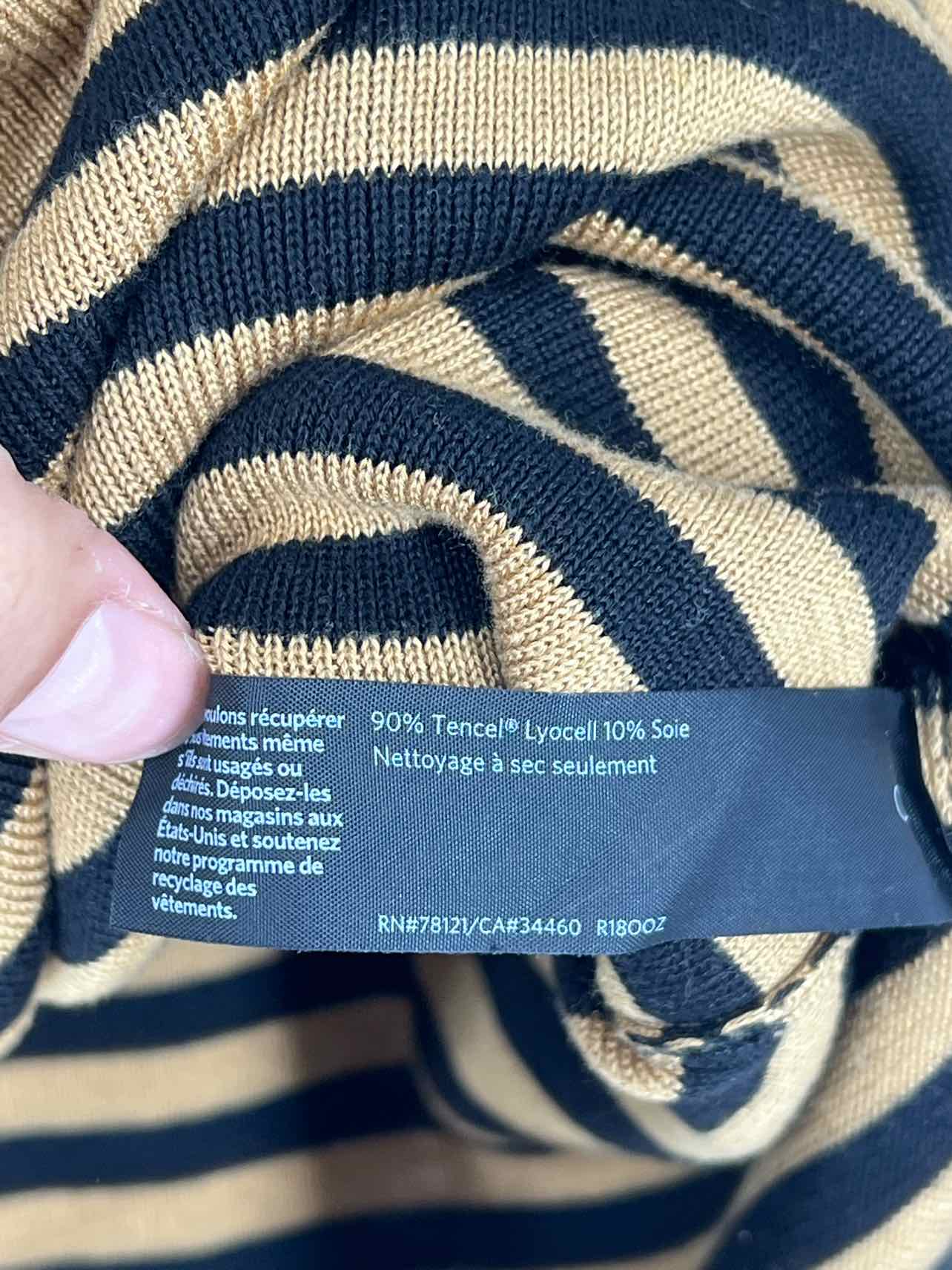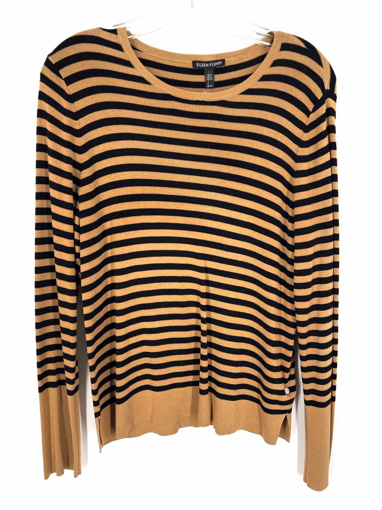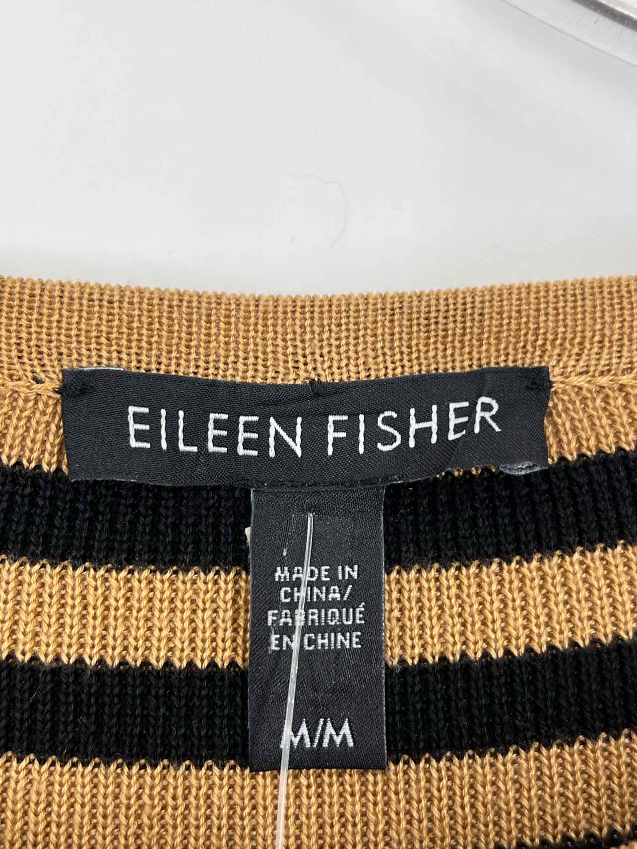 Eileen Fisher Size M Tan/Black Stripe Knit Designer Top-Long Sleeve