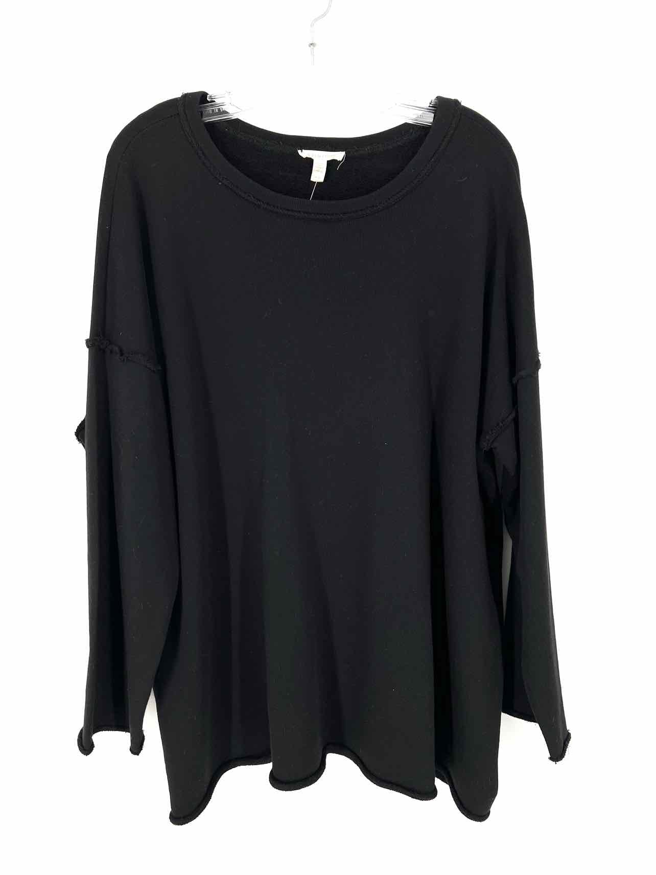 Eileen Fisher Size M Black Solid Raw Hem Designer Top-Long Sleeve