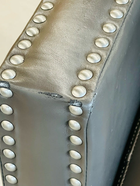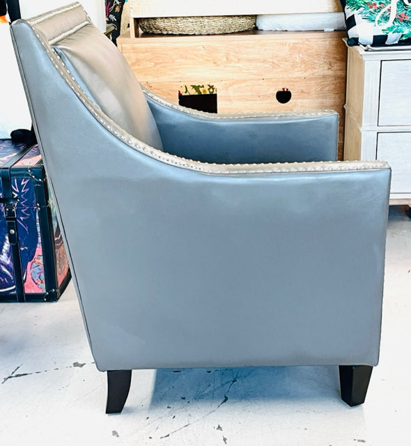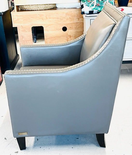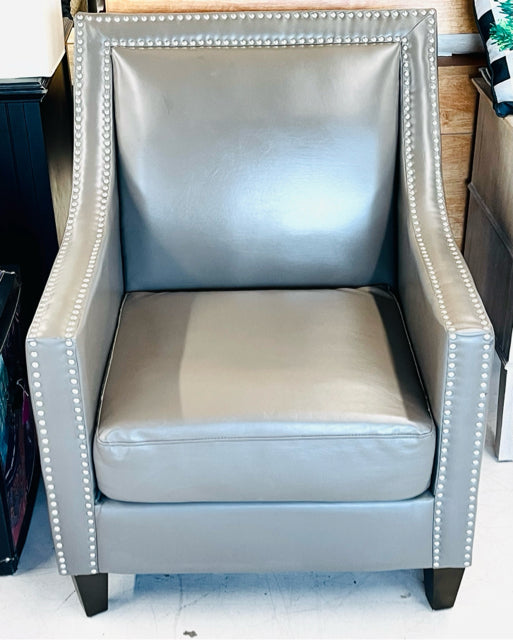 Abbyson Gray Faux Leather Nailhead AS IS Furniture Accent Chair