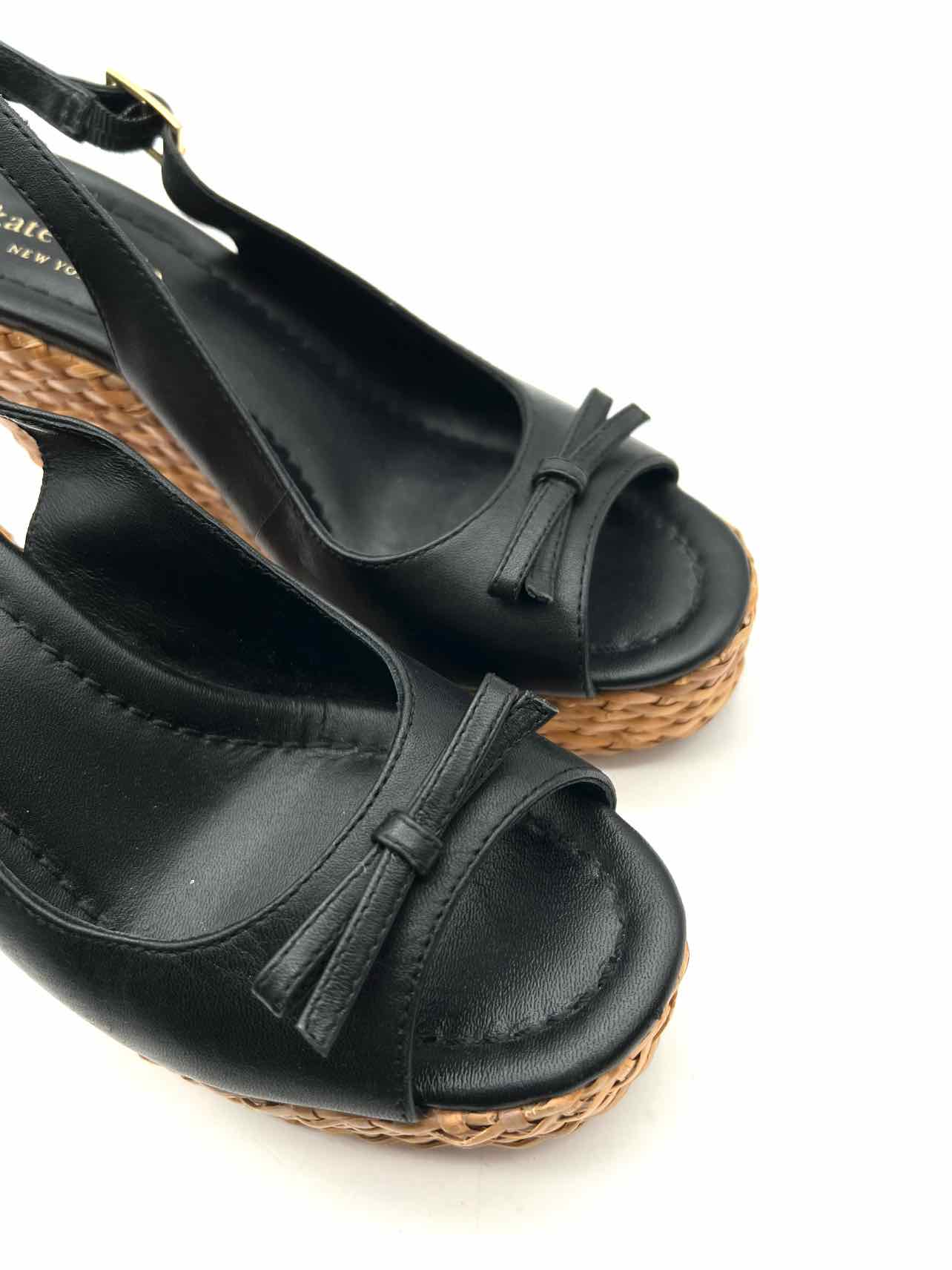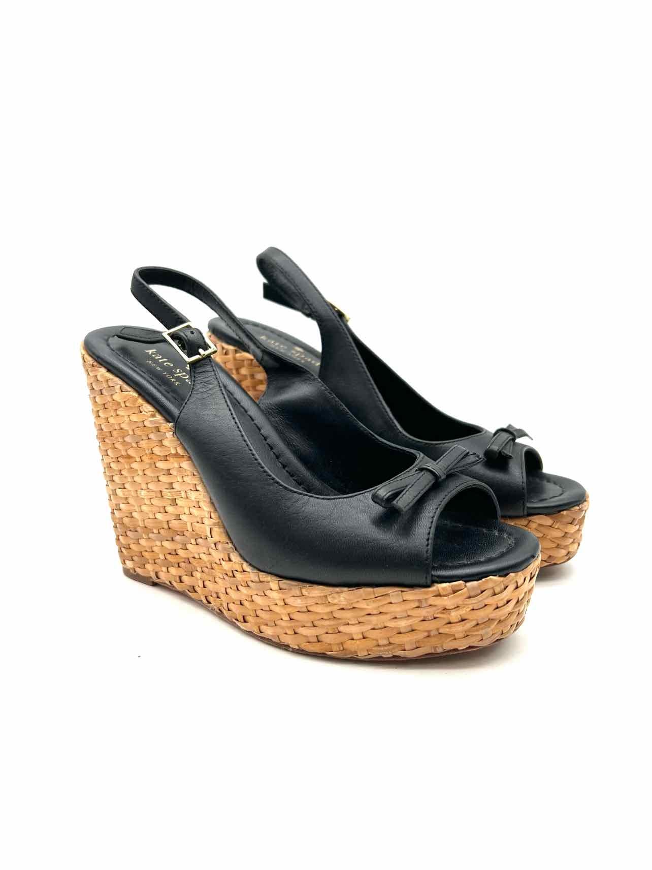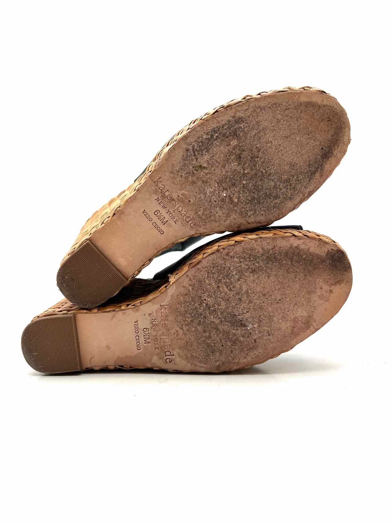 Kate Spade Size 6.5 Black/Natural Woven Leather Shoes Wedge Sandal