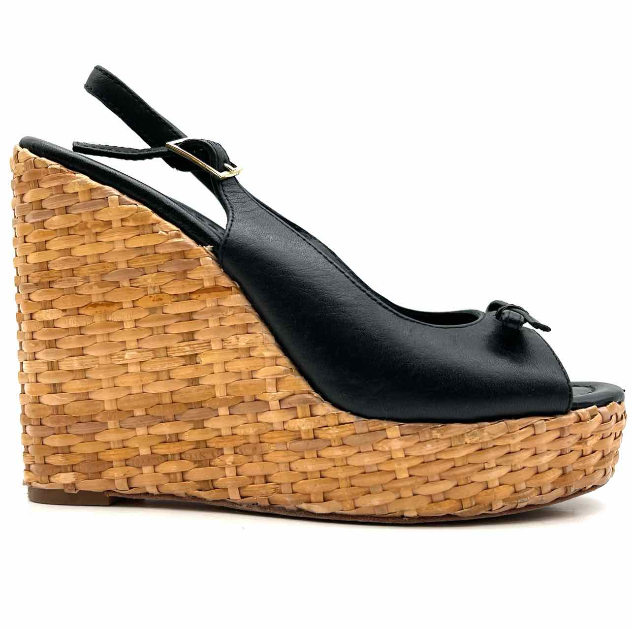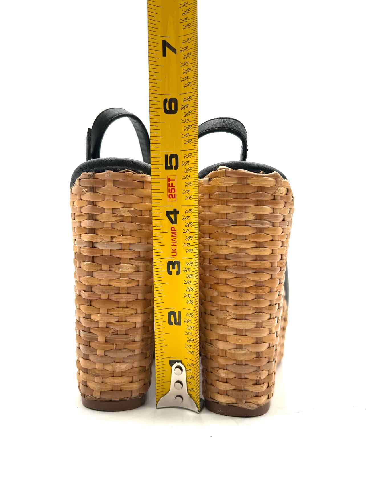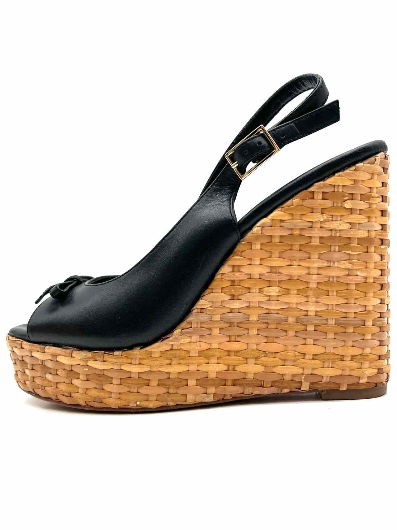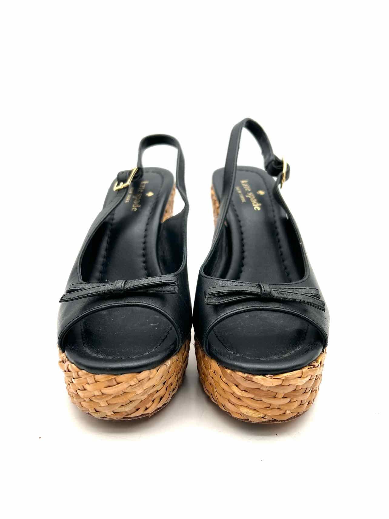Kate Spade Size 6.5 Black/Natural Woven Leather Shoes Wedge Sandal