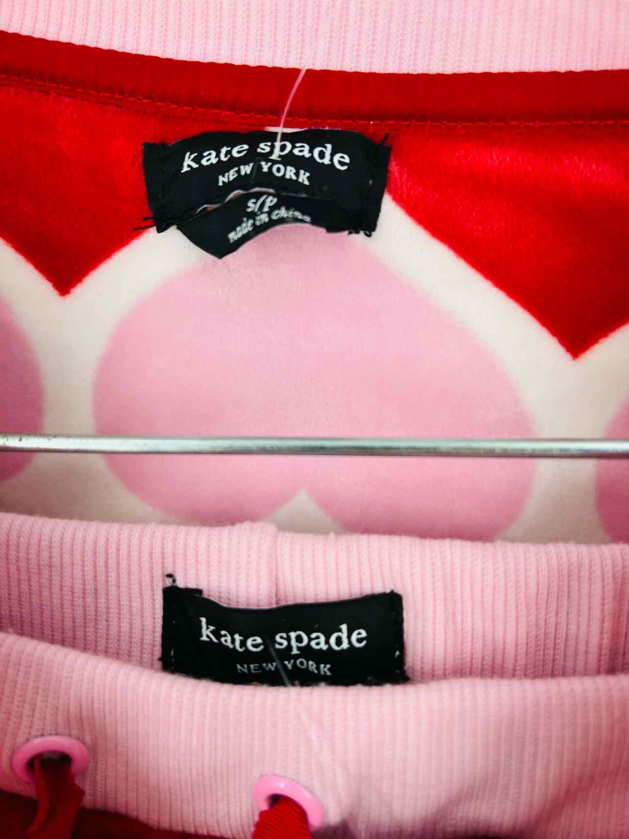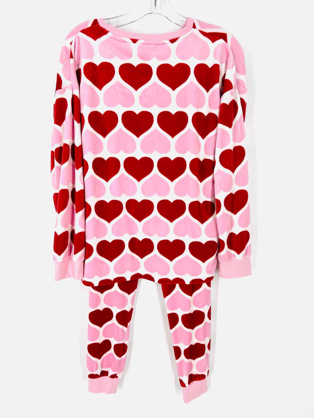 Kate Spade Size S Wh/Pk/Rd Hearts Velour Lingerie Pajama Set