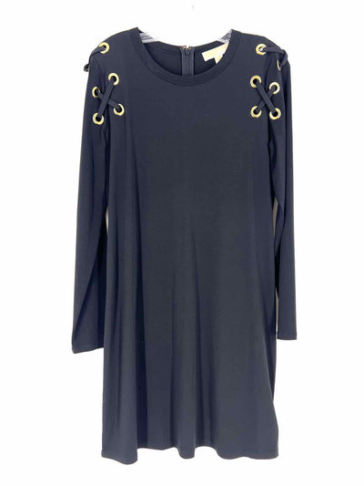 Michael Kors Size L Black/Gold Lace-Up Solid Dresses Dress