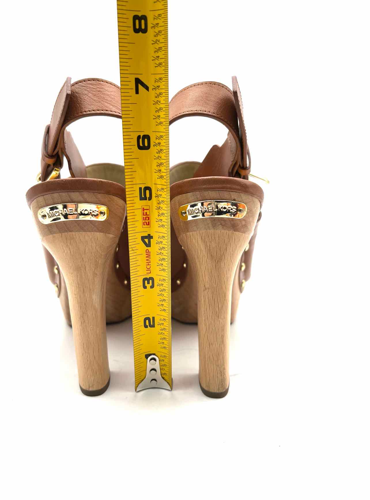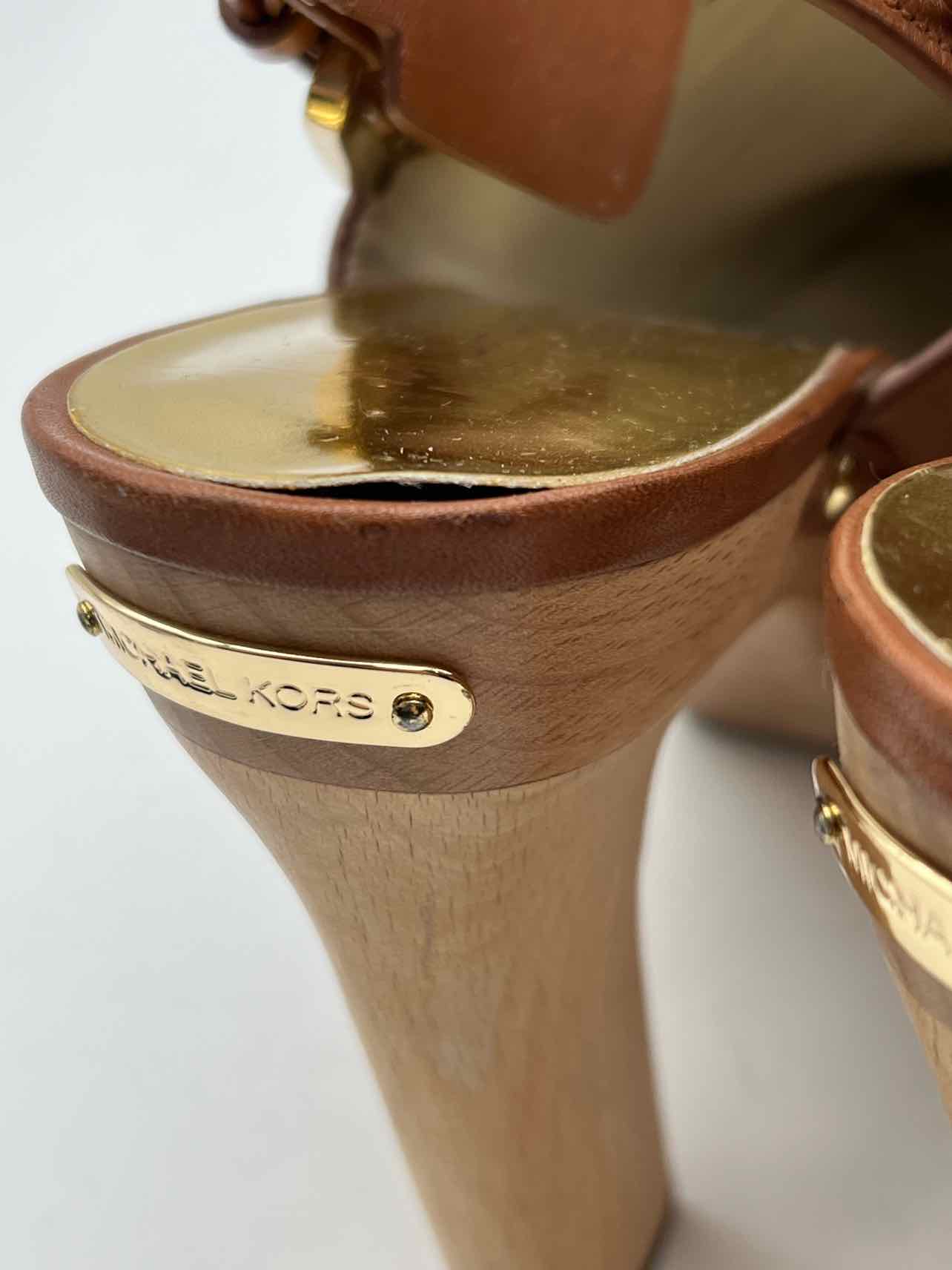 Michael Michael Kors Size 7.5 Brown/Gold Buckle(s) Caged Shoes Sandals Heels