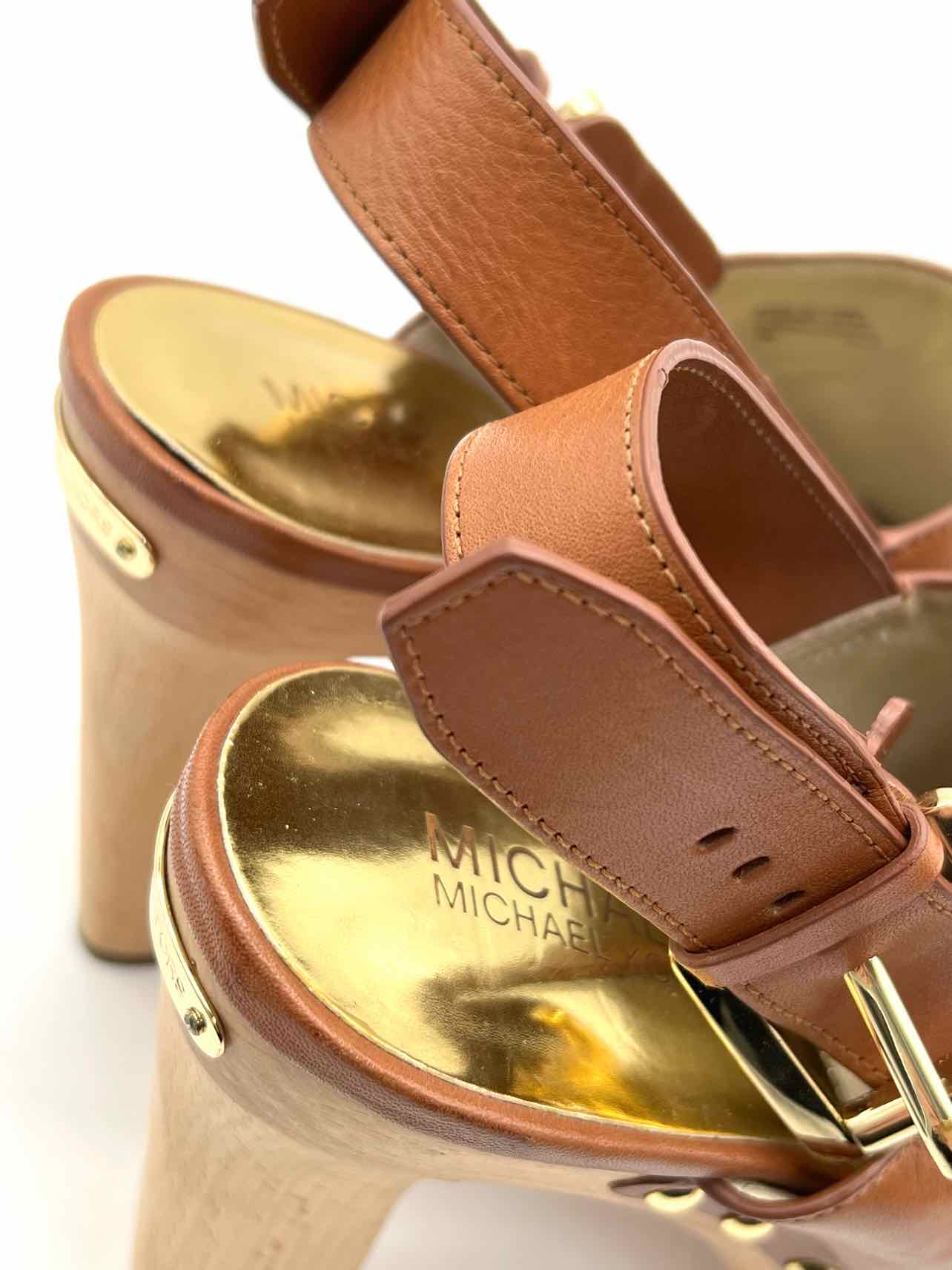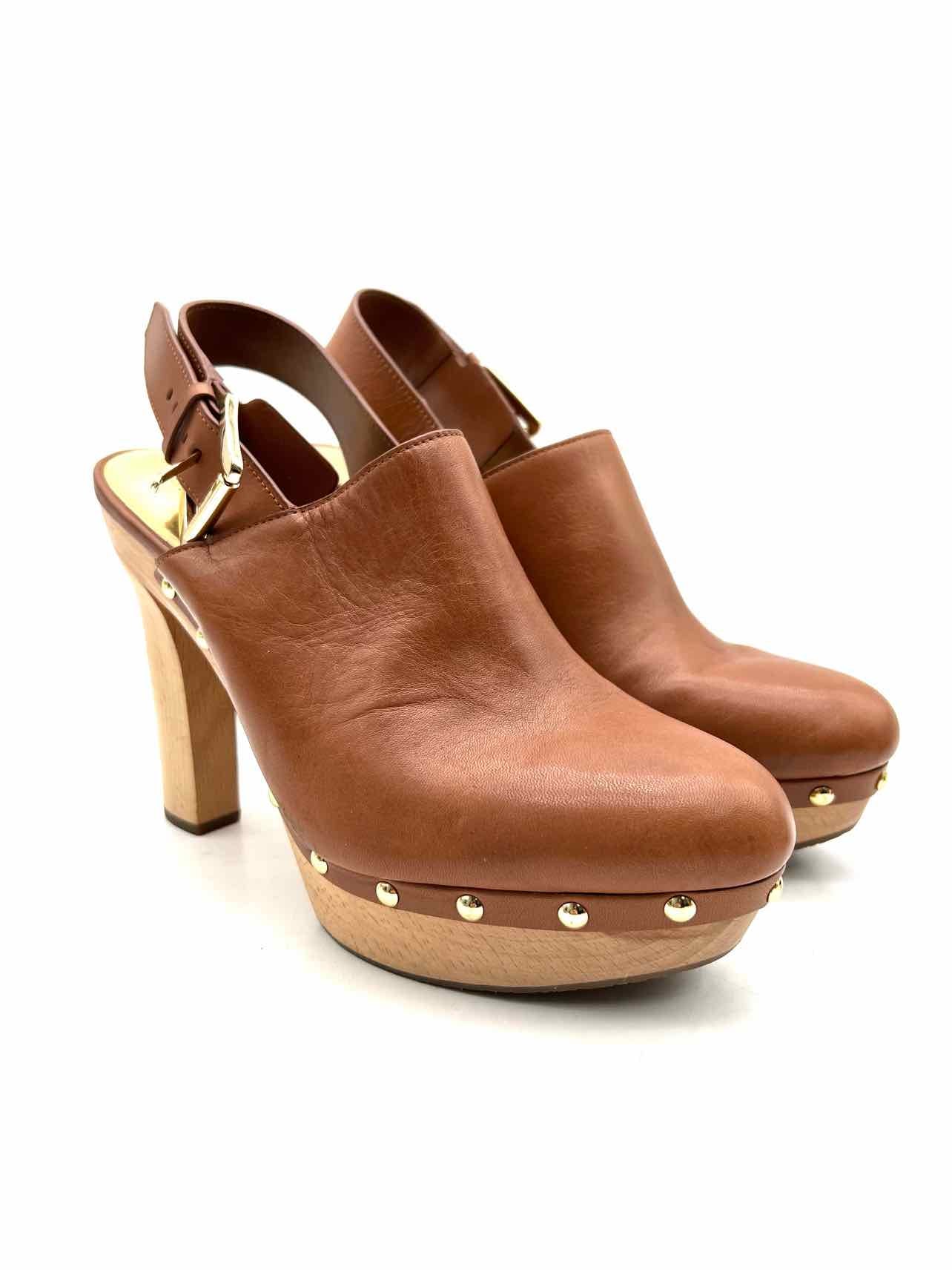 Michael Michael Kors Size 9 Tan/Gold Embellished Leather Shoes Clogs