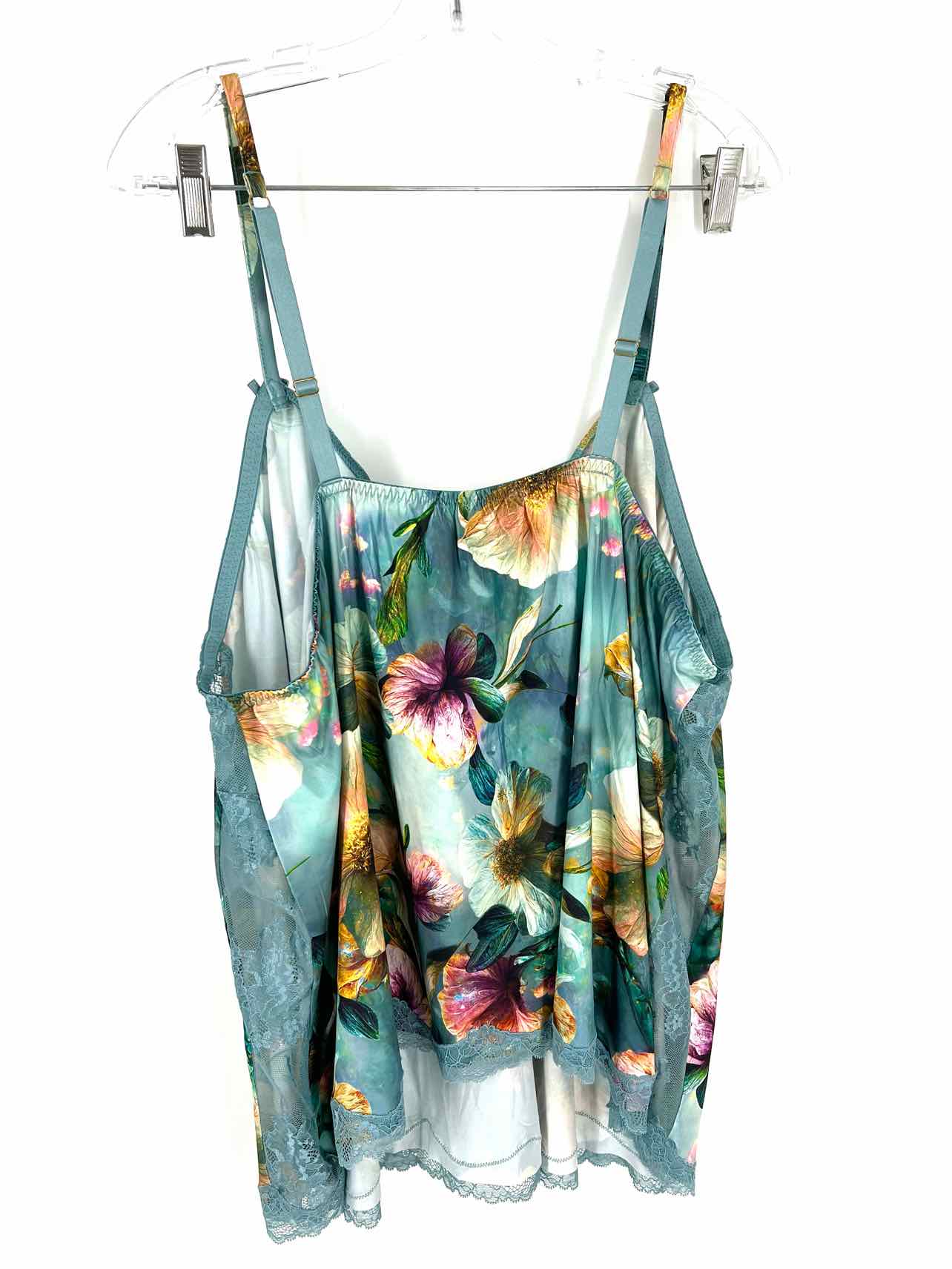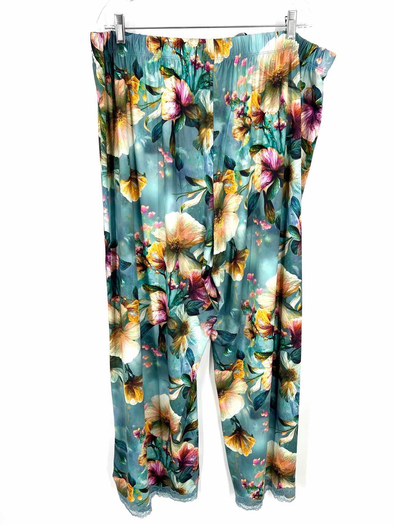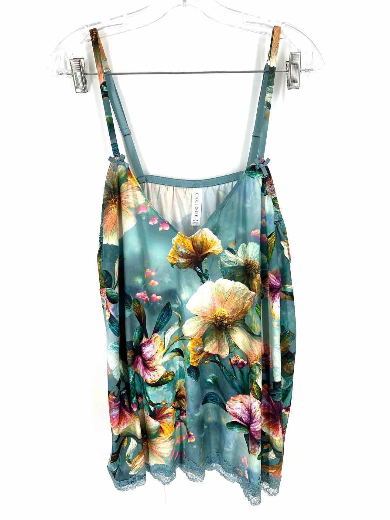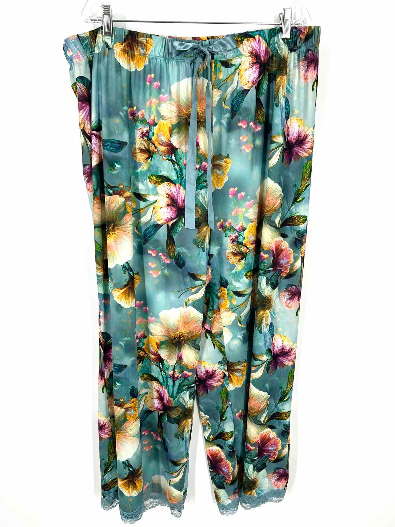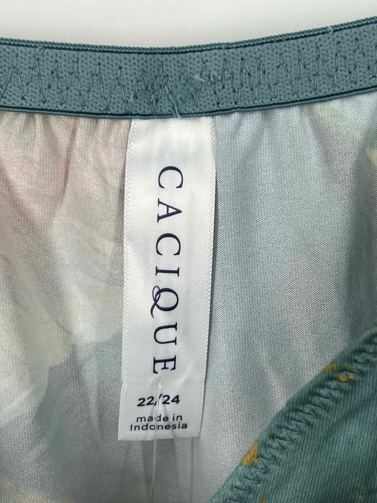 Cacique Size 22/24 Blue/Multi Floral Lace Trim PLUS Pajama Set