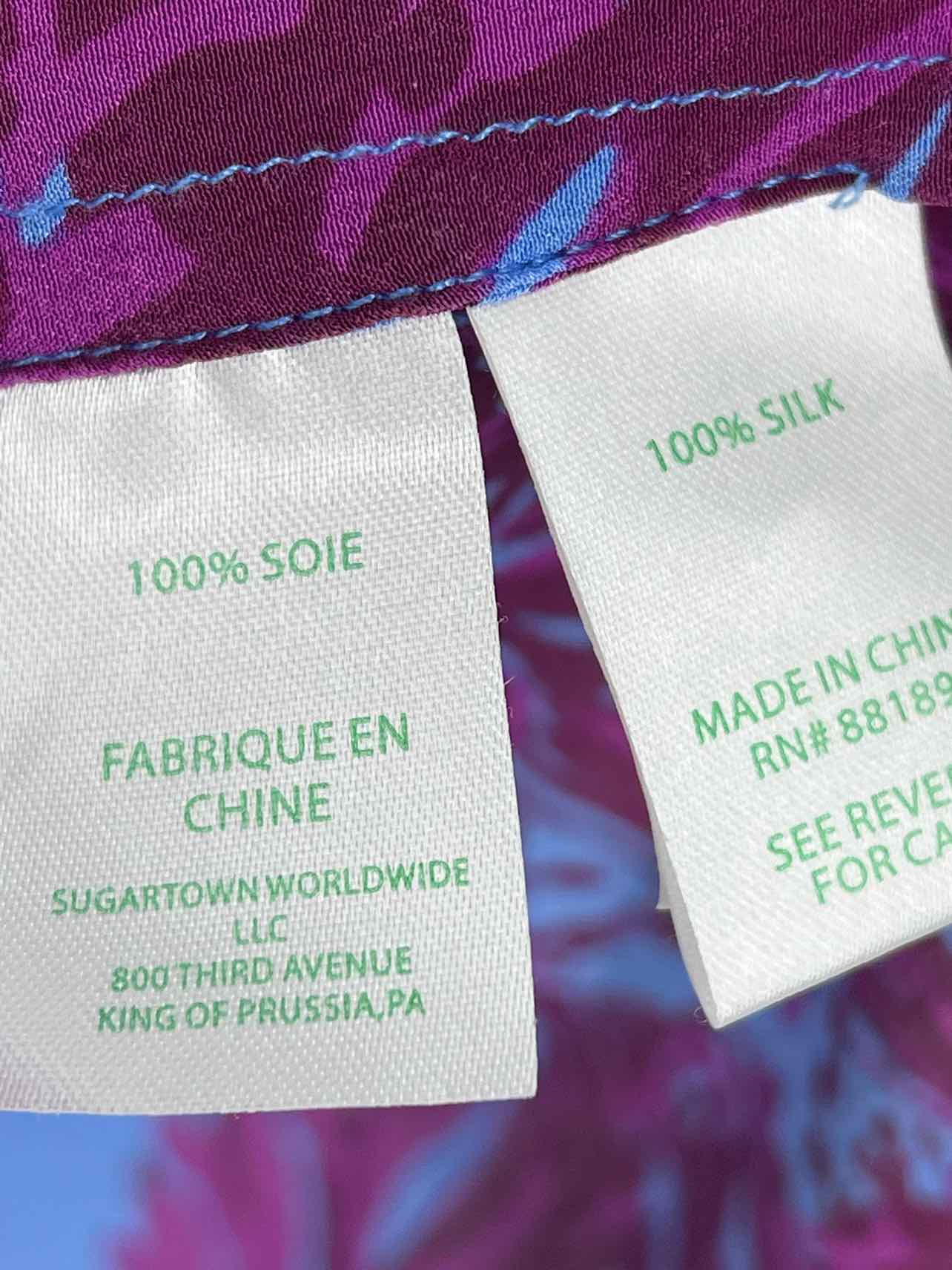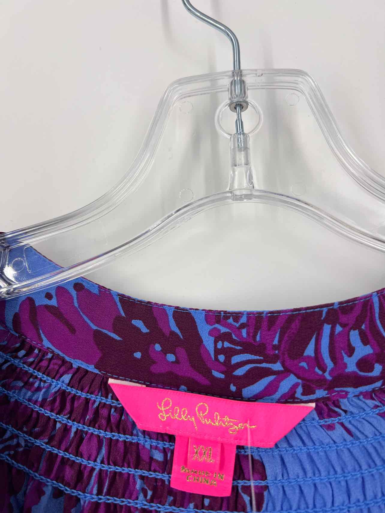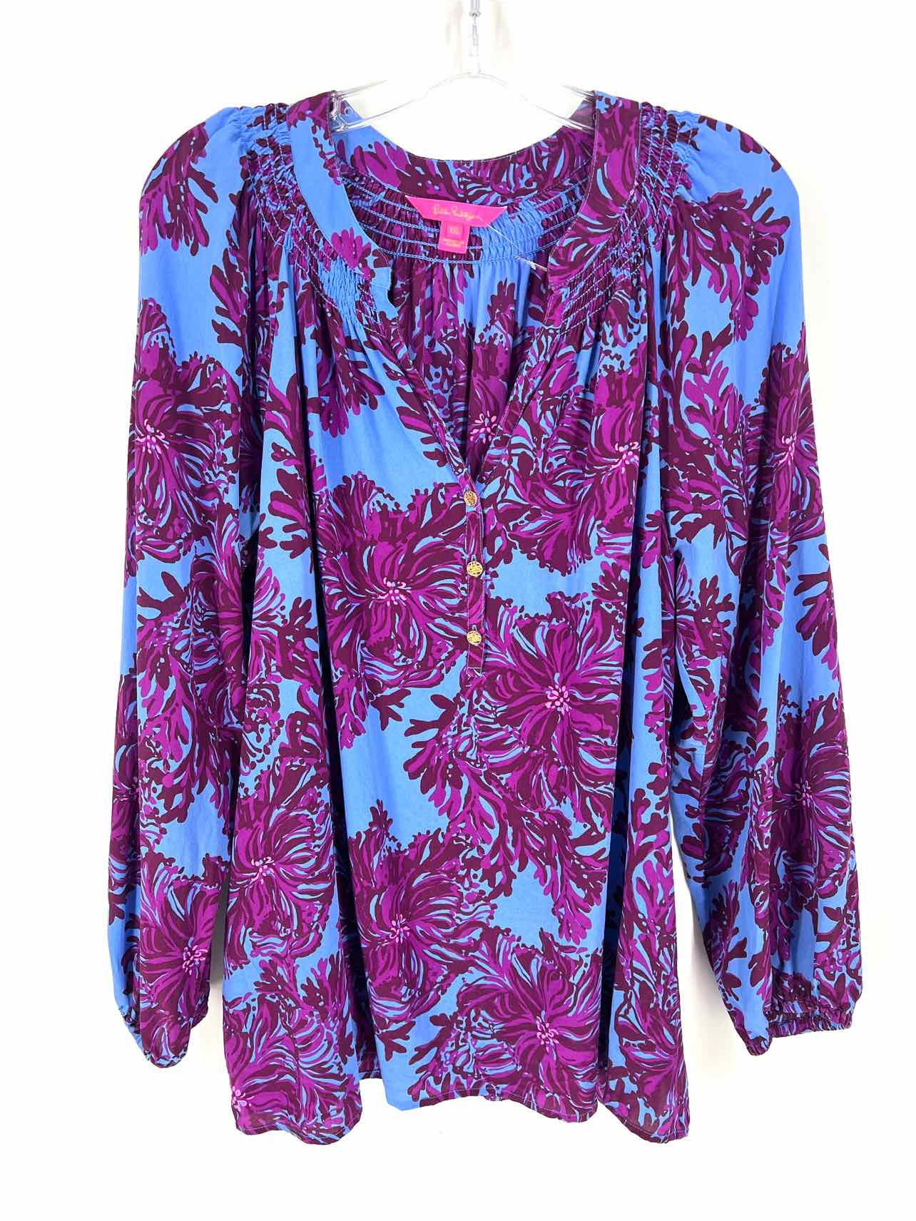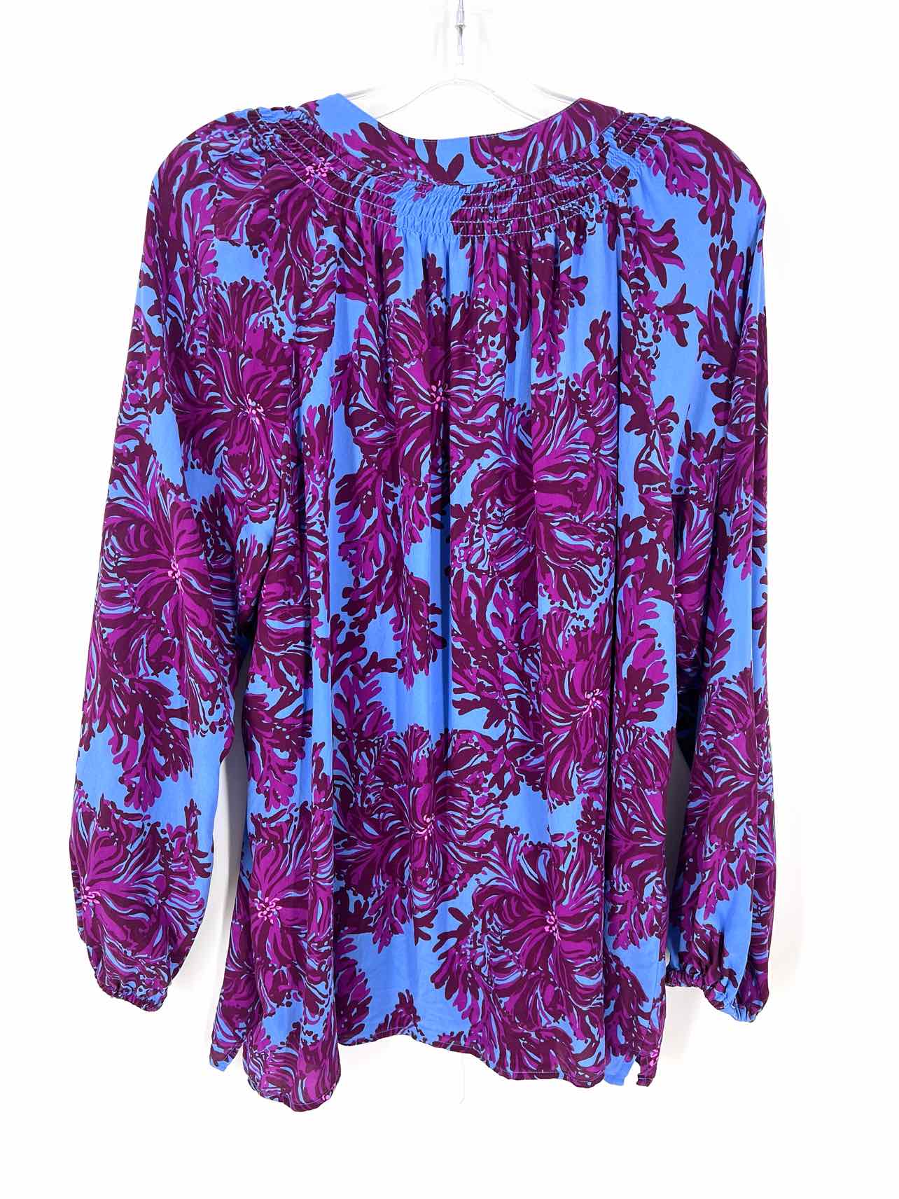 Lilly Pulitzer Size XXL Lt Blue/Plum Floral Silk PLUS Top-Long Sleeve-Plus