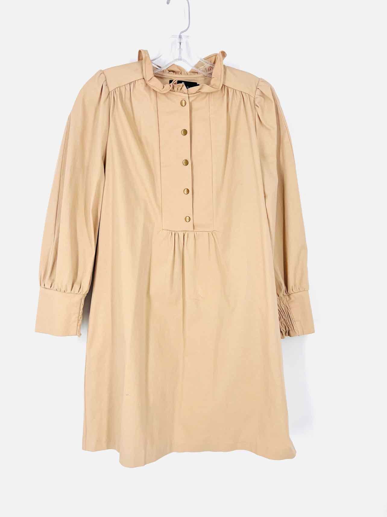 Pomander Place Size S Khaki Ruffle Collar Snap Buttons Designer Dress