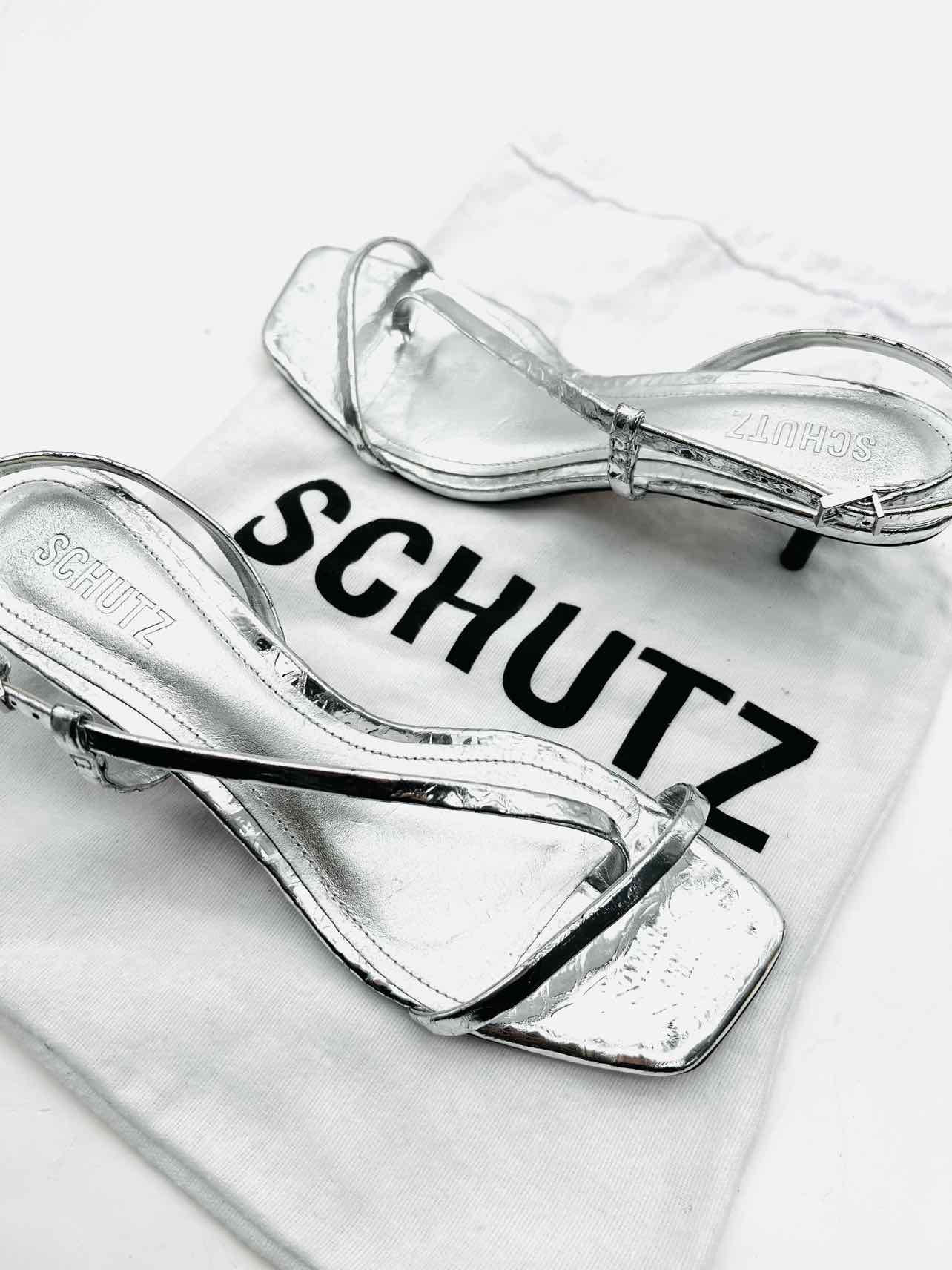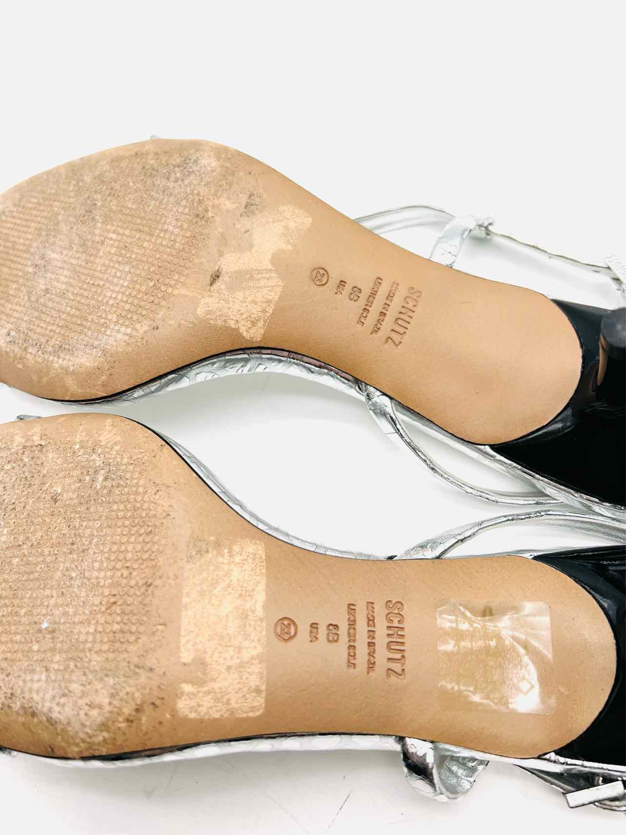Schutz Size 8 Silver Ankle Strap Metallic W/ DUST BAG Designer Heels