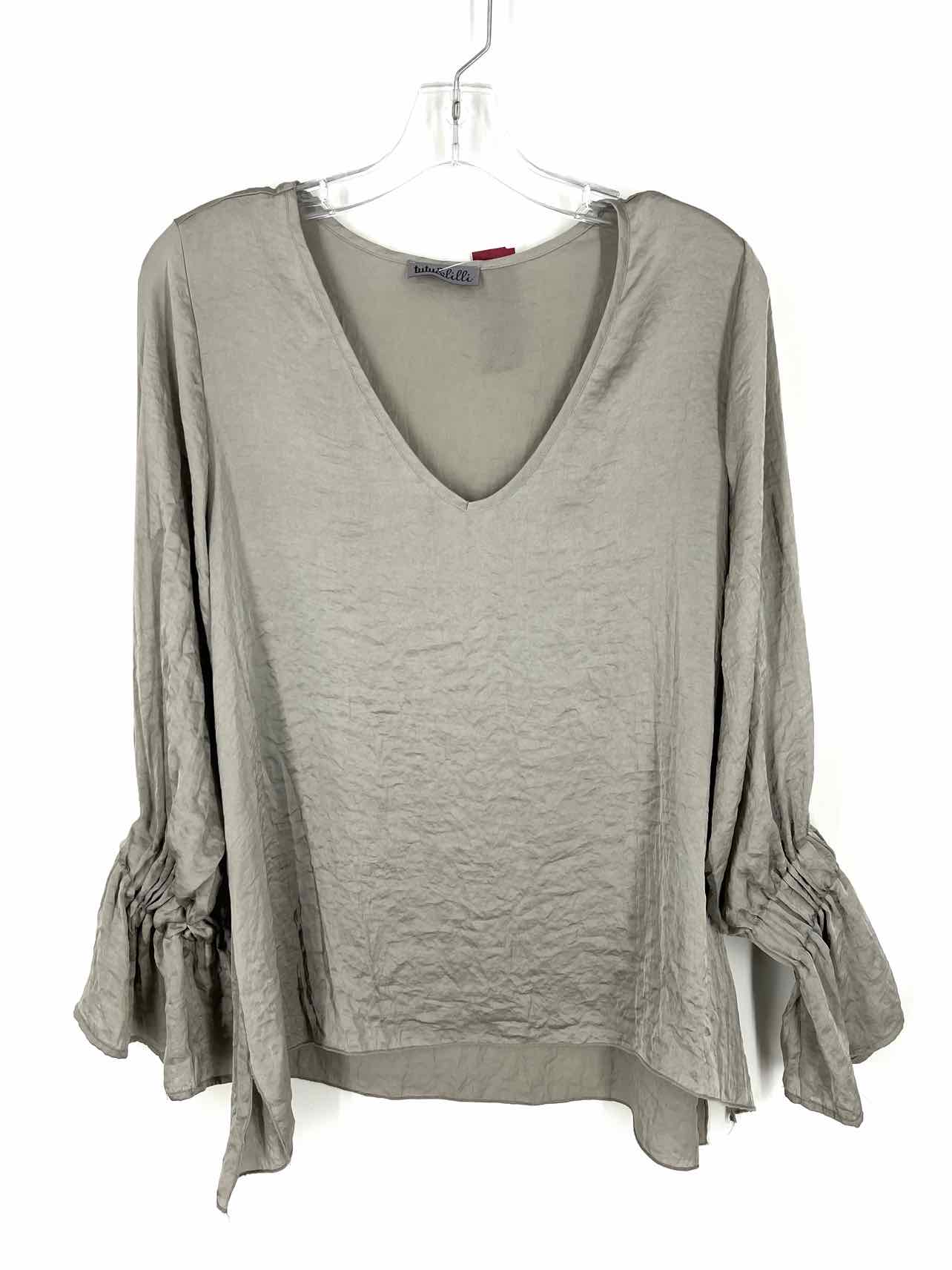 Tutu & Lilli Size S Silver Metallic Smocked Sleeves Tops Top-Long Sleeve