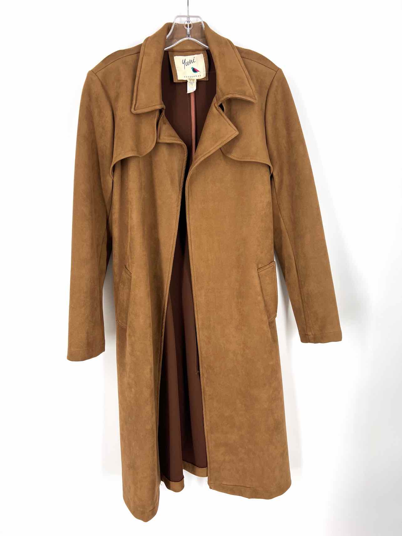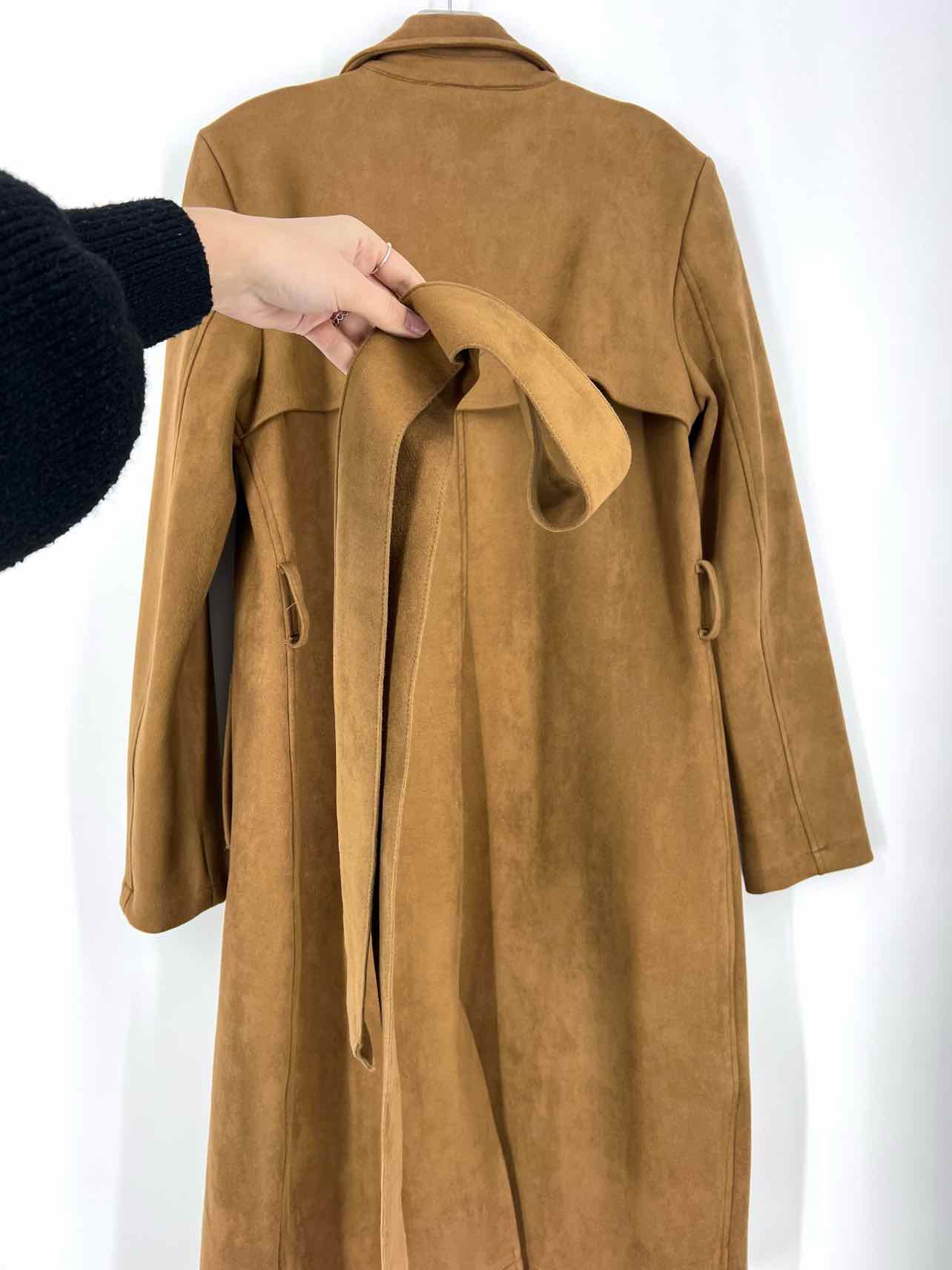 Yumi Size 6 Tan Belted Faux Suede Coats Coat
