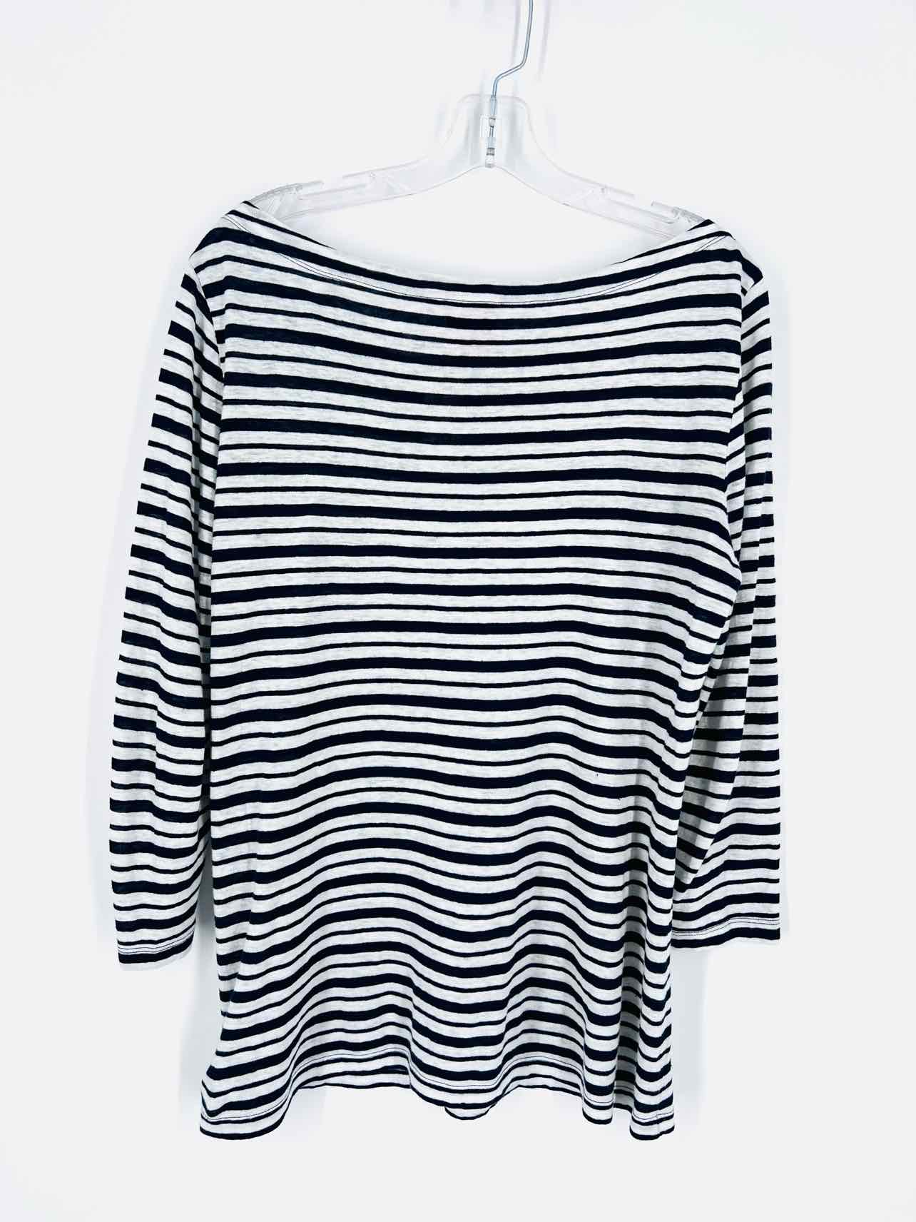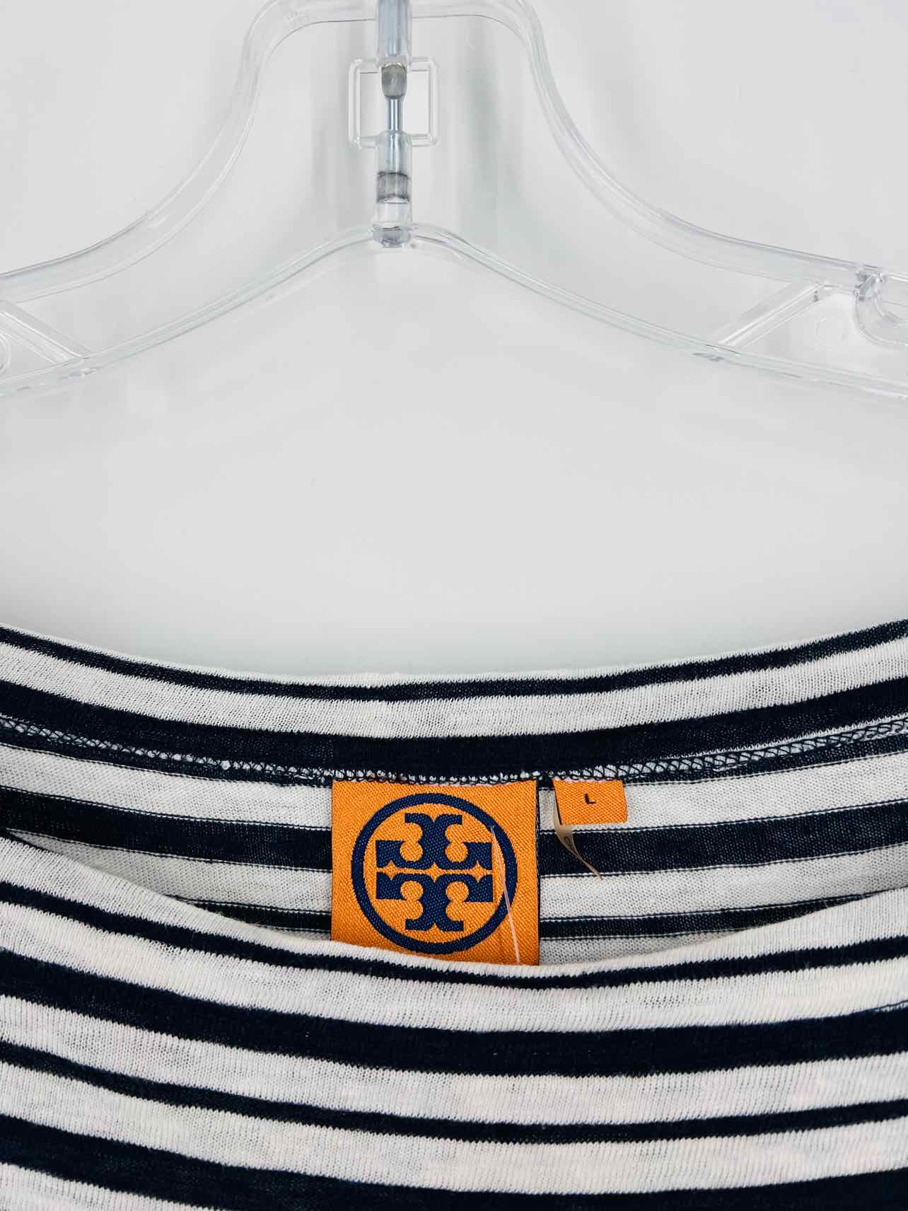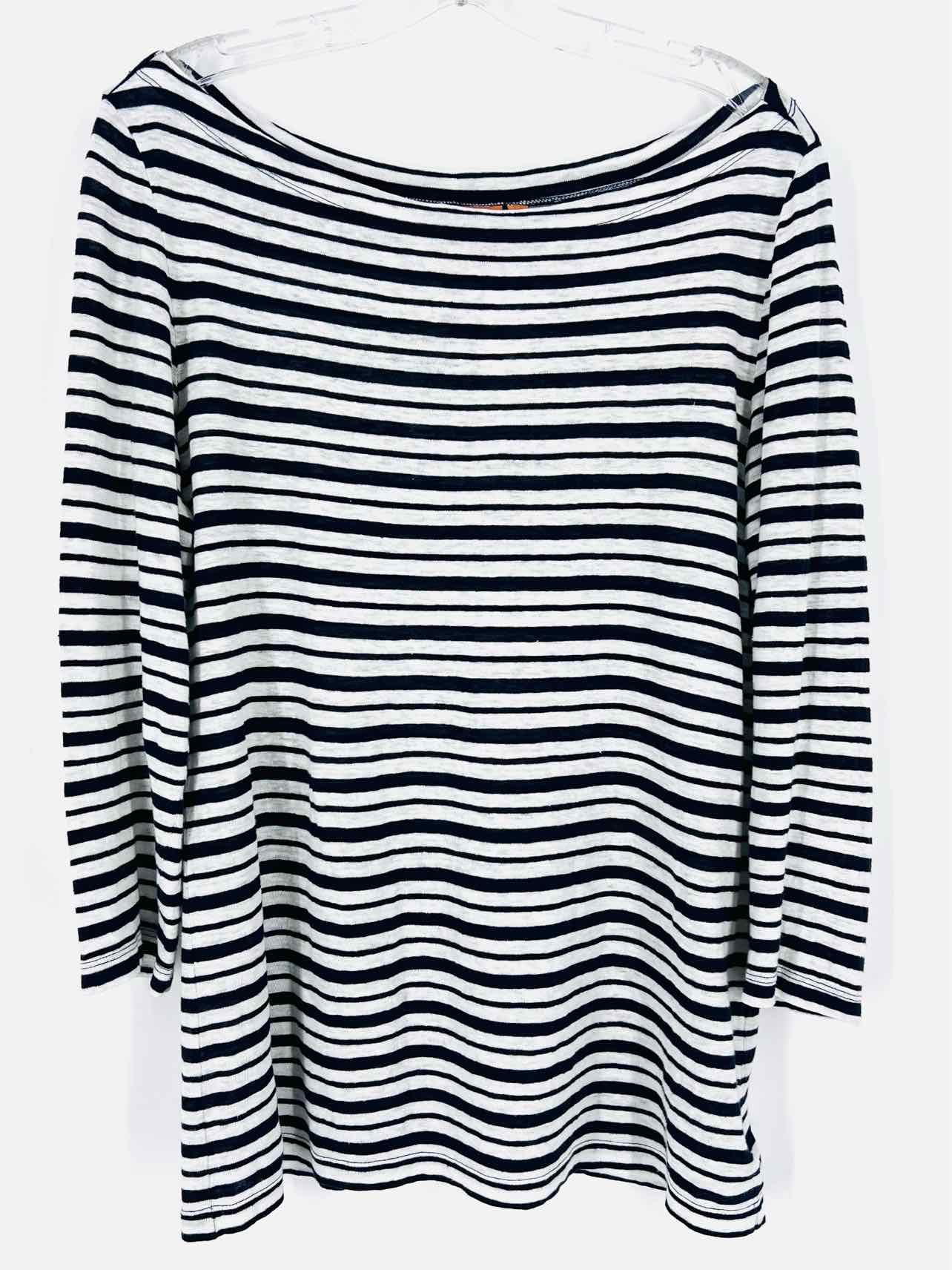Tory Burch Size L White/Navy Stripe Boat Neck Designer Top-3/4 Sleeve