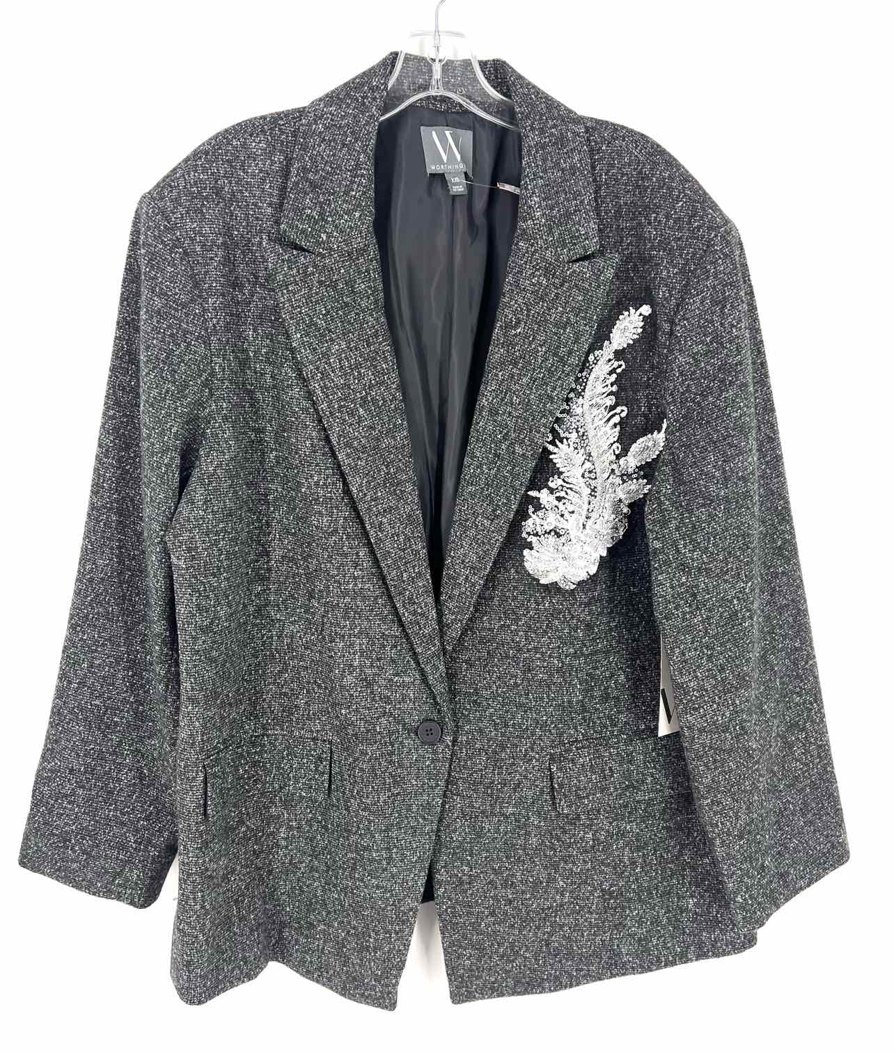 Worthington Size XXL Charcoal/White Embroidered Beaded NEW PLUS Blazer-Plus