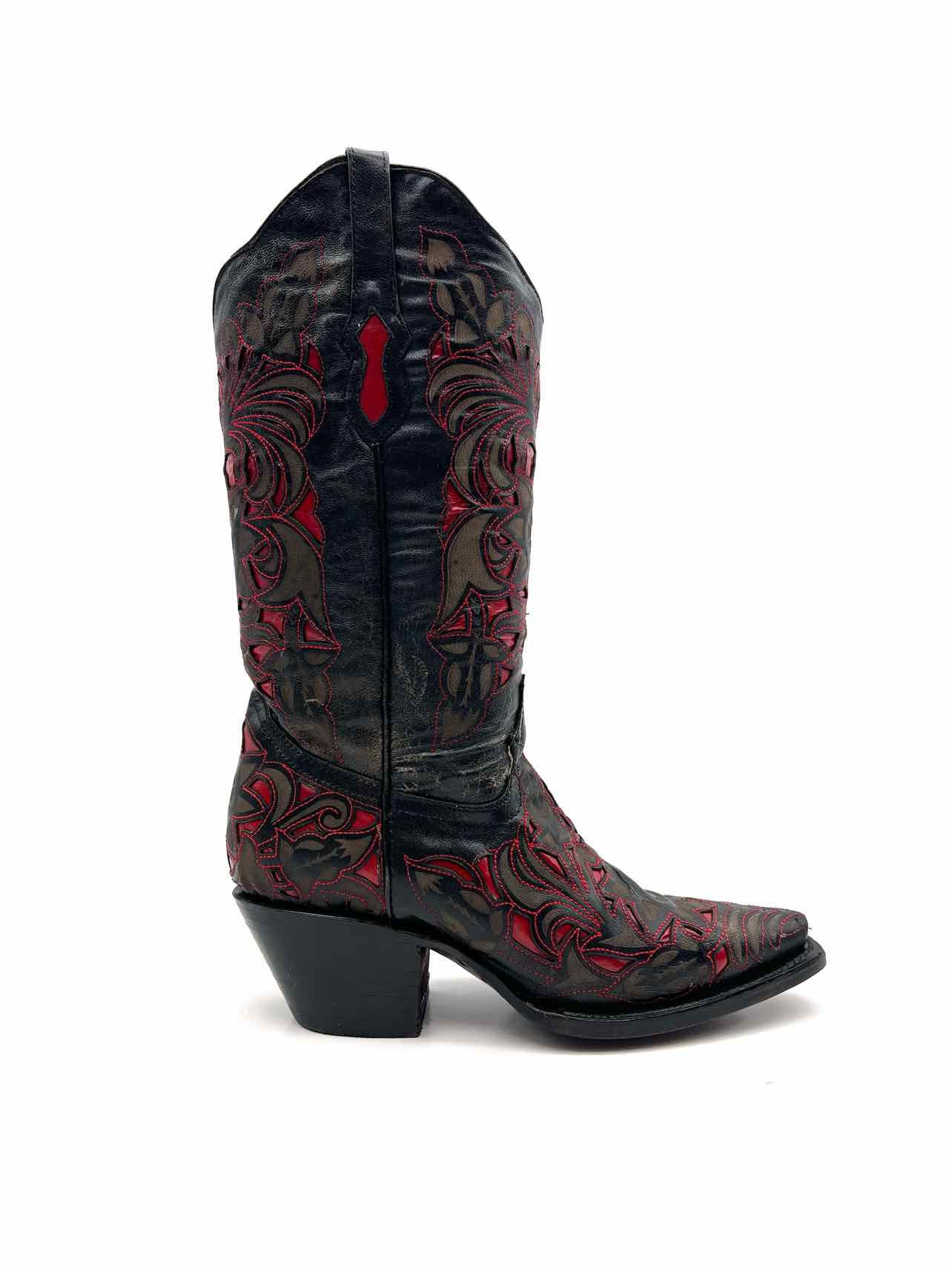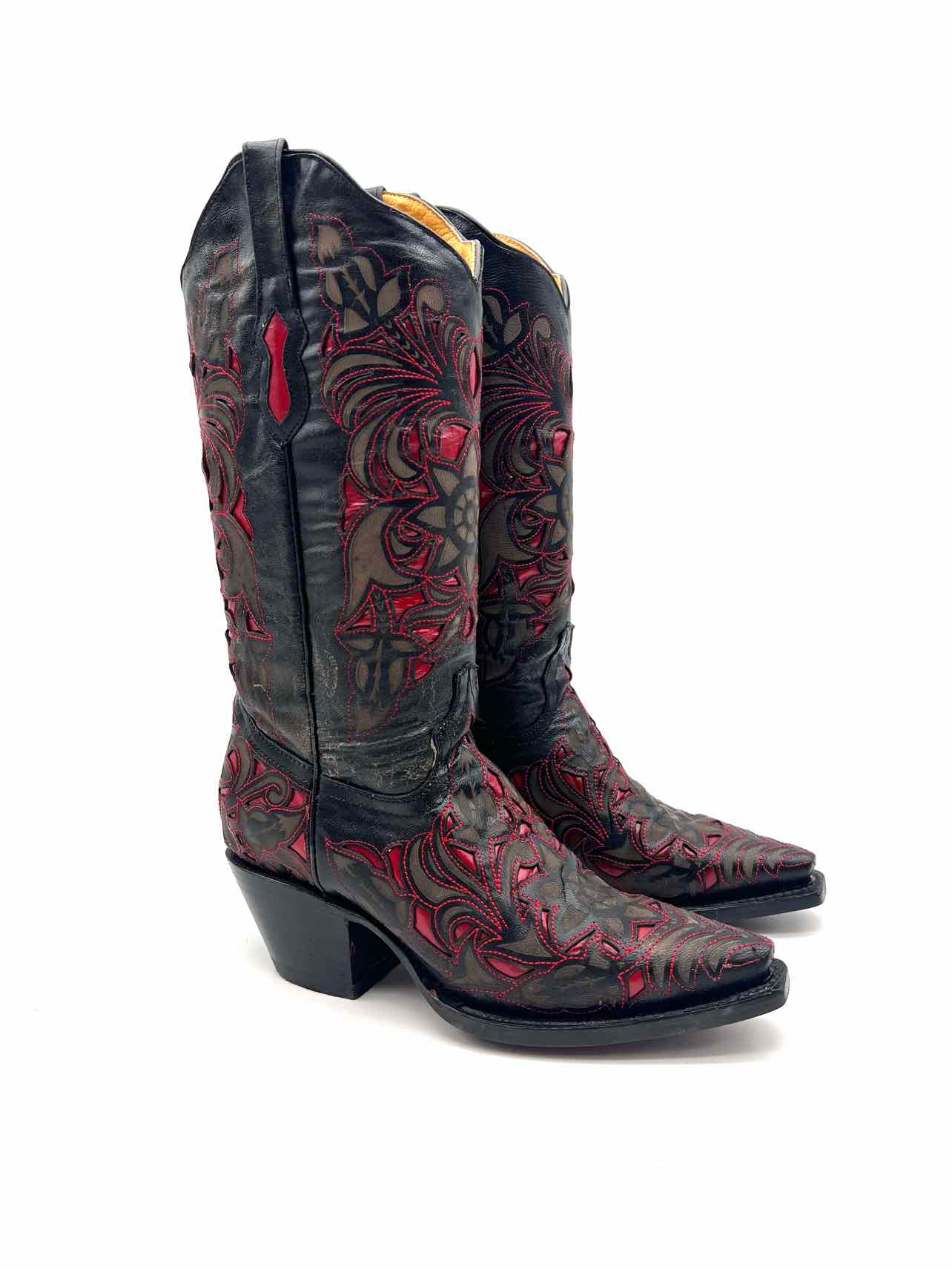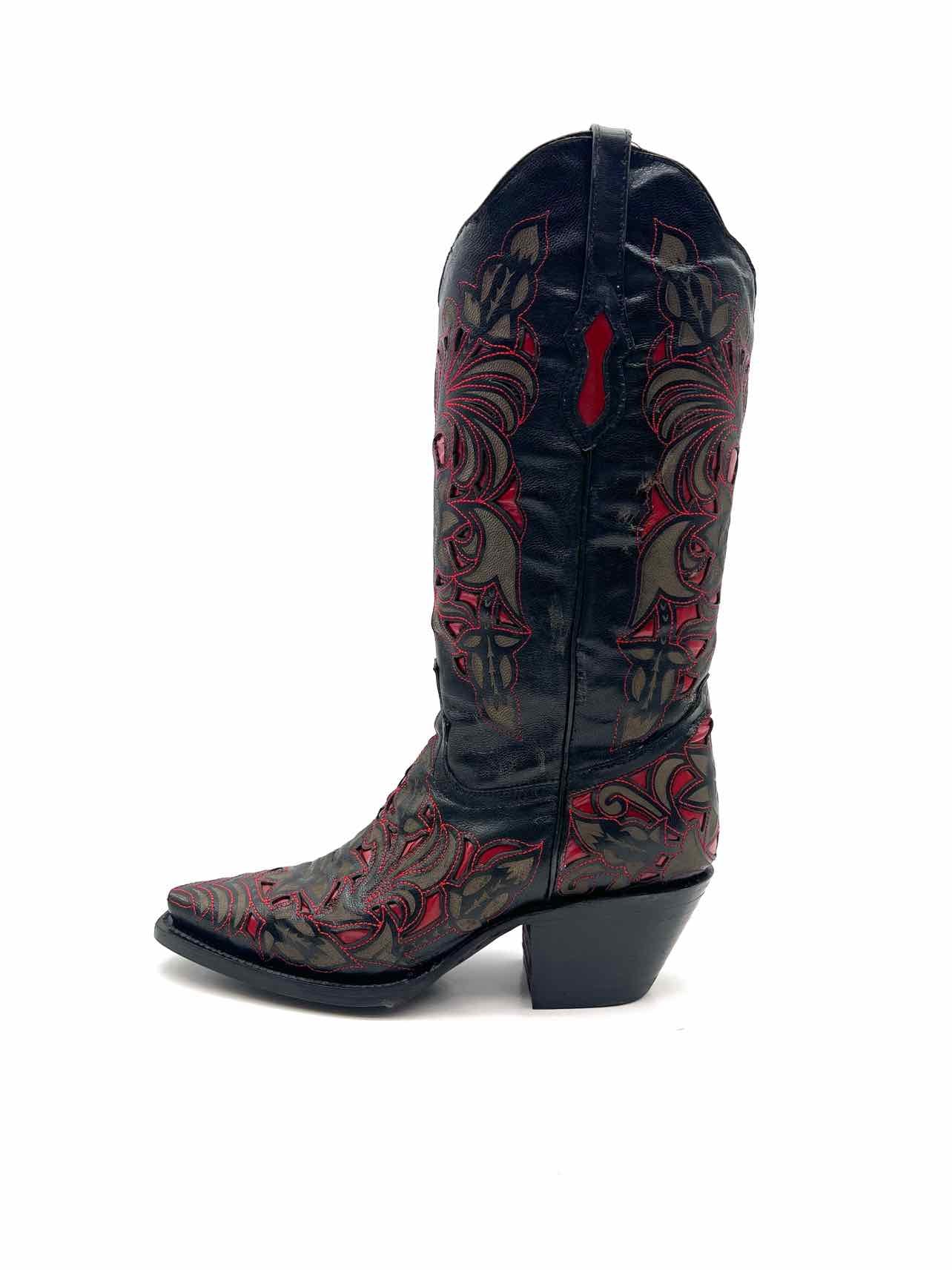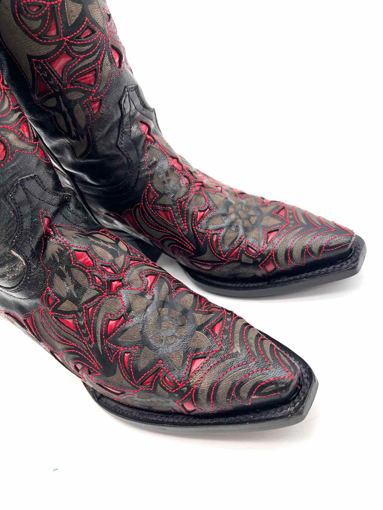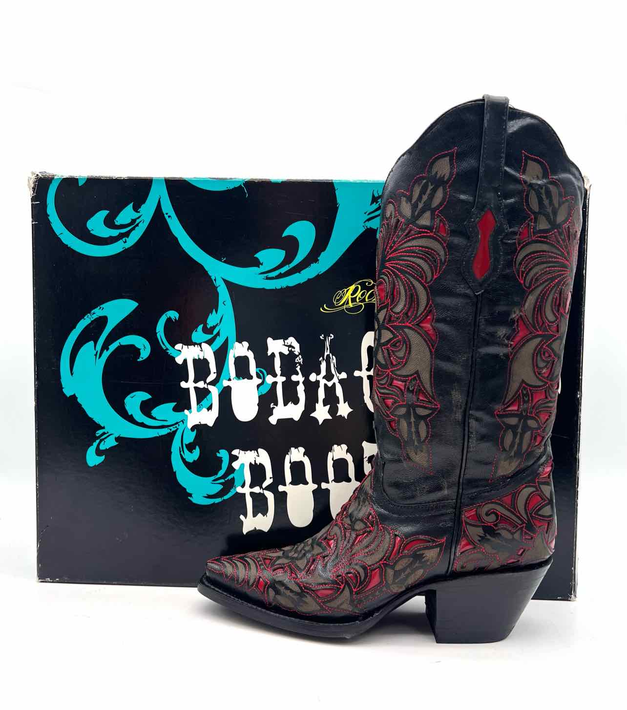 Bodacious Boot Co. Size 5 Bk/Gry/Rd Laser Cut Leather W/ BOX!!! Cowboy Boots