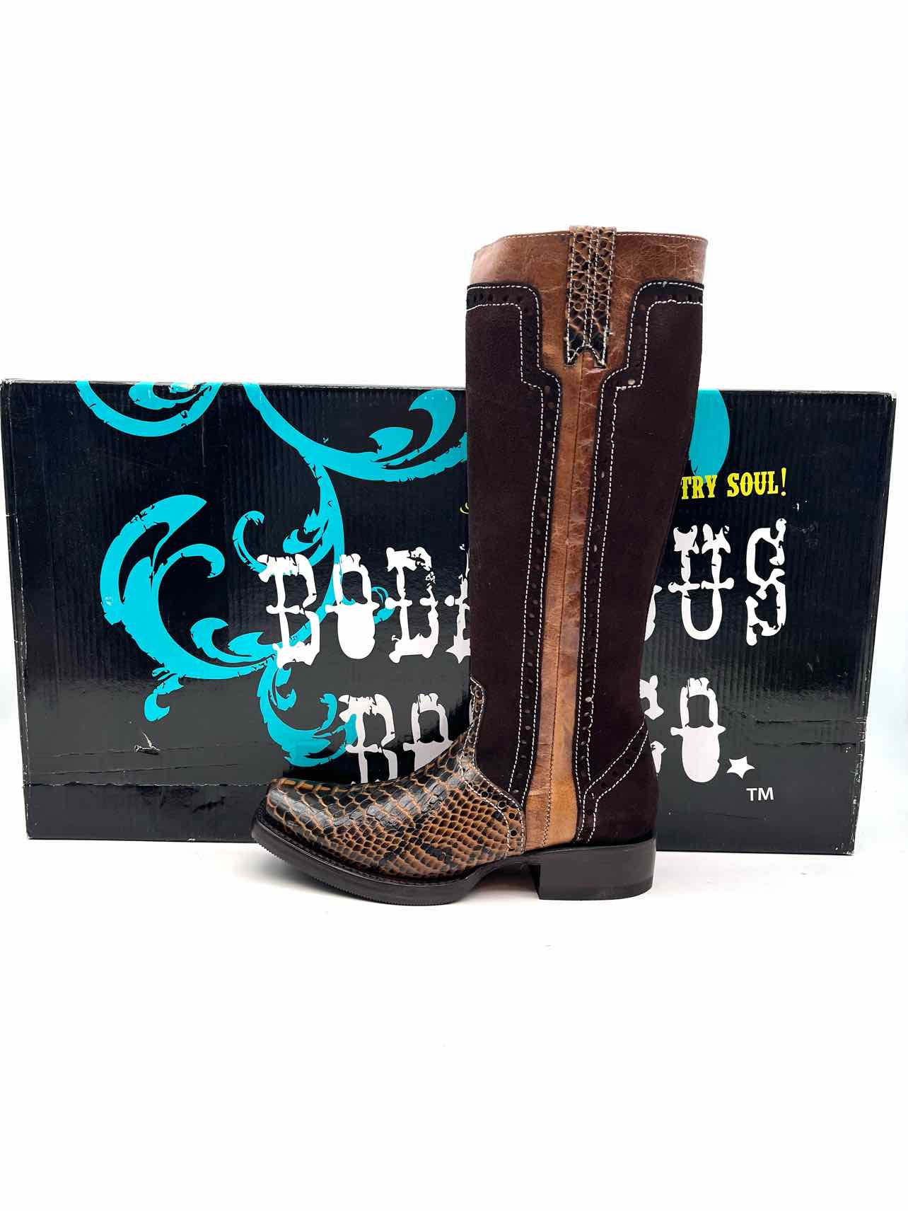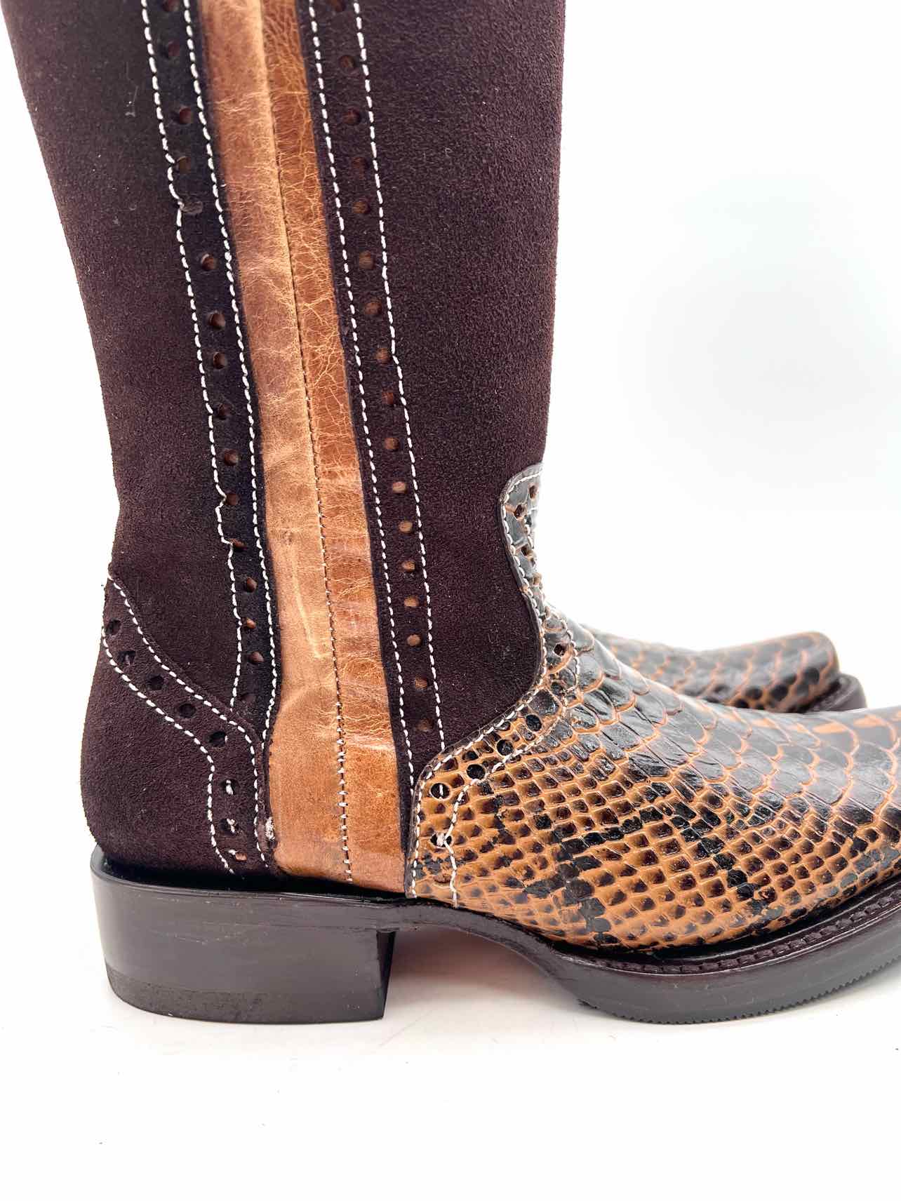 Bodacious Boot Co. Size 5.5 Chocolate/Tan Reptile Suede W/ BOX!!! Shoes Boots