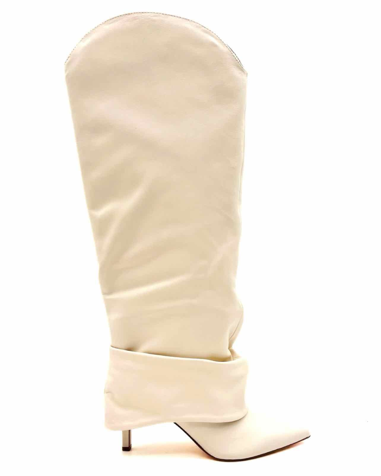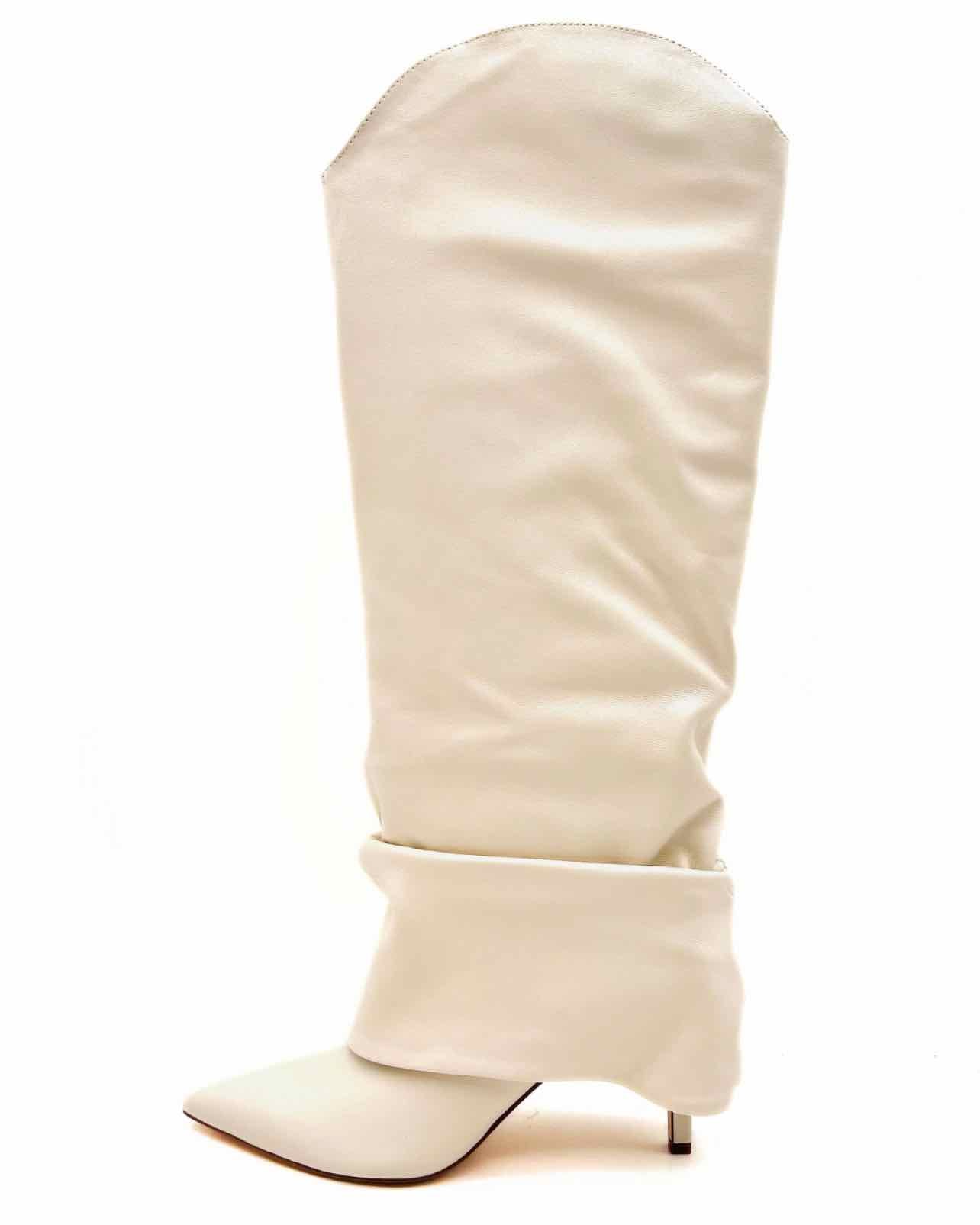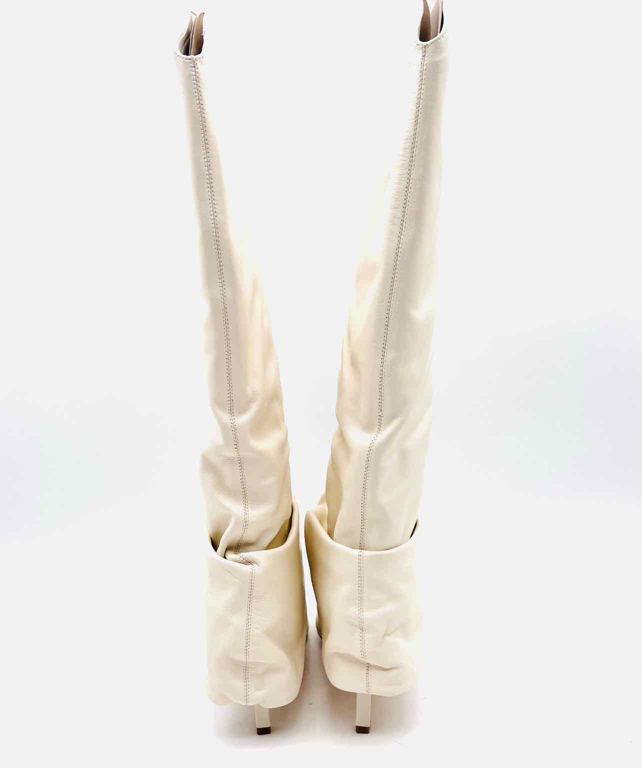 Marc Fisher Size 5.5 Ivory Ruched Leather Designer Boots
