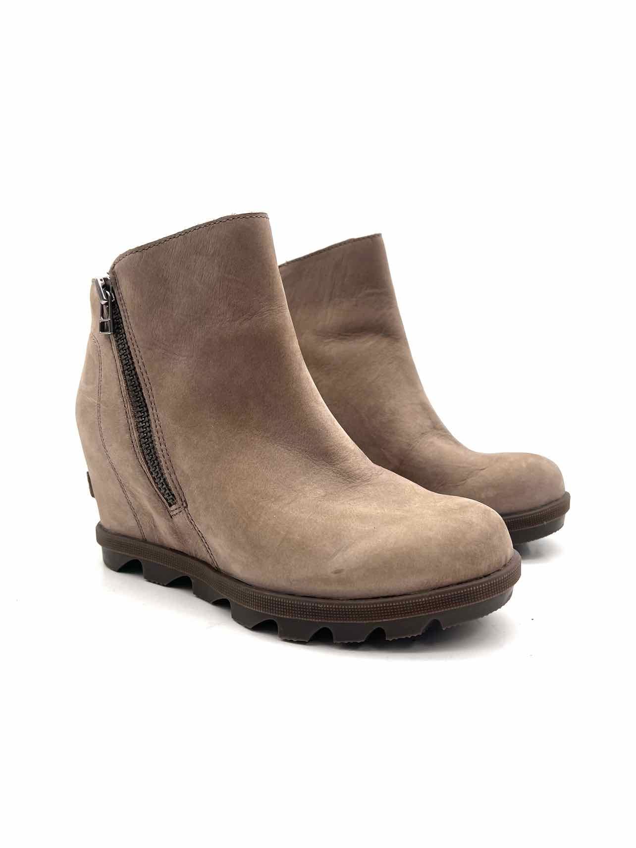Sorel Size 6.5 Taupe Wedge Leather Shoes Ankle Boots