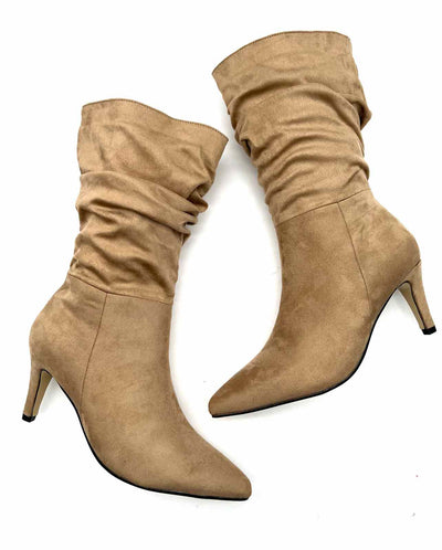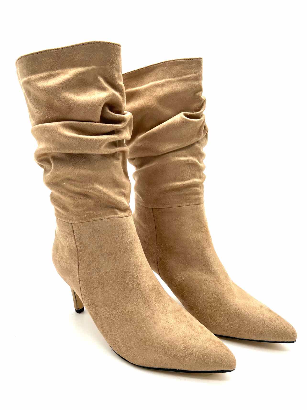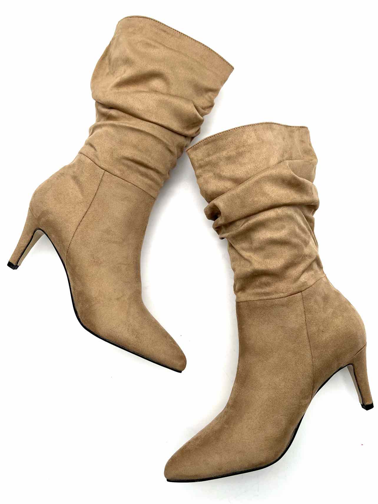 Size 10 Camel Ruched Faux Suede Shoes Boots