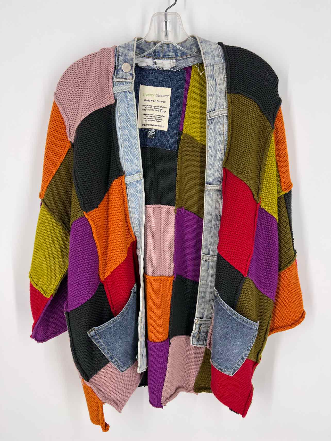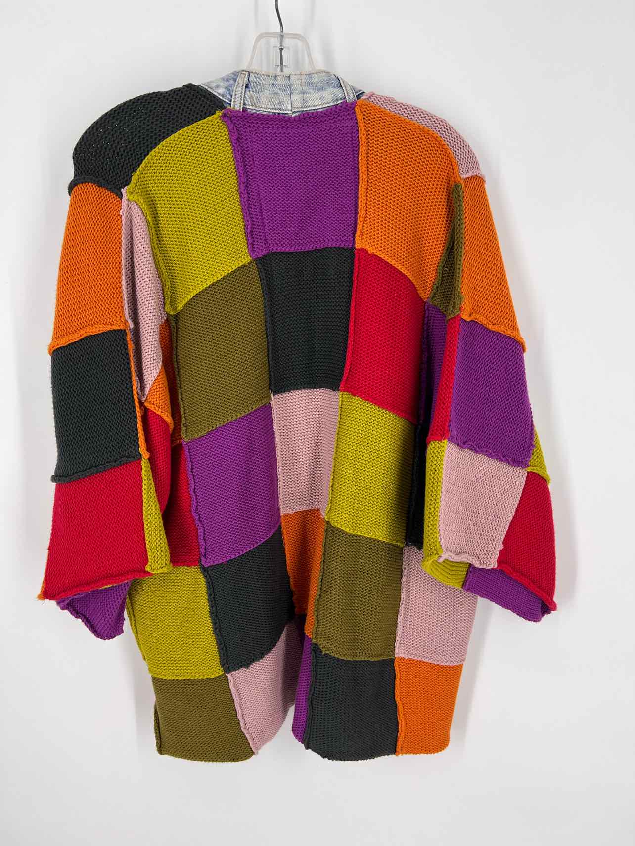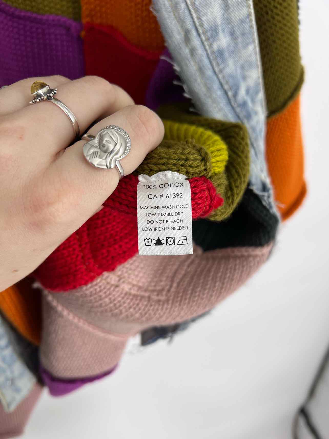 Shannon Passero Size L/XL Charcoal/Multi Color Block Knit Designer Cardigan