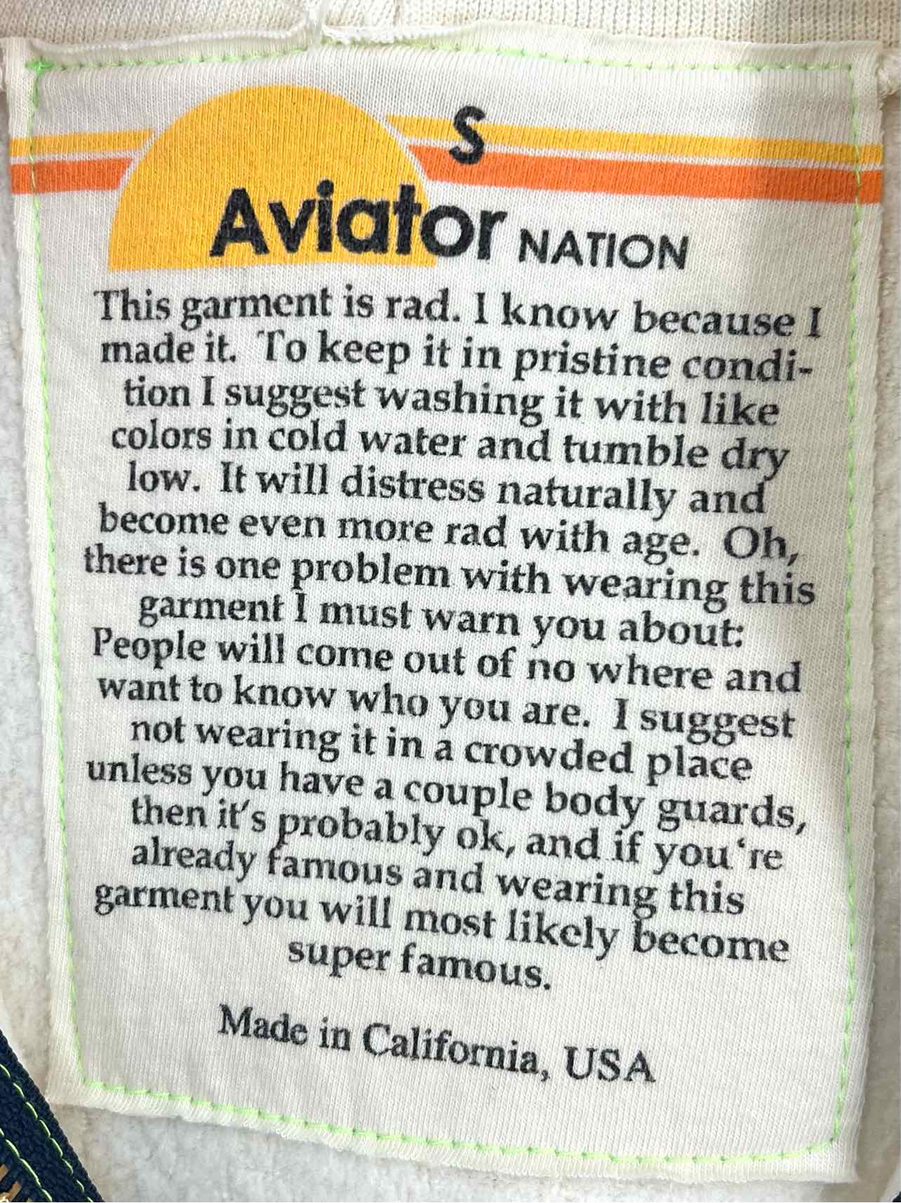 Aviator Nation Size S Cream/Multi Screen Print Zipper Jackets Jacket