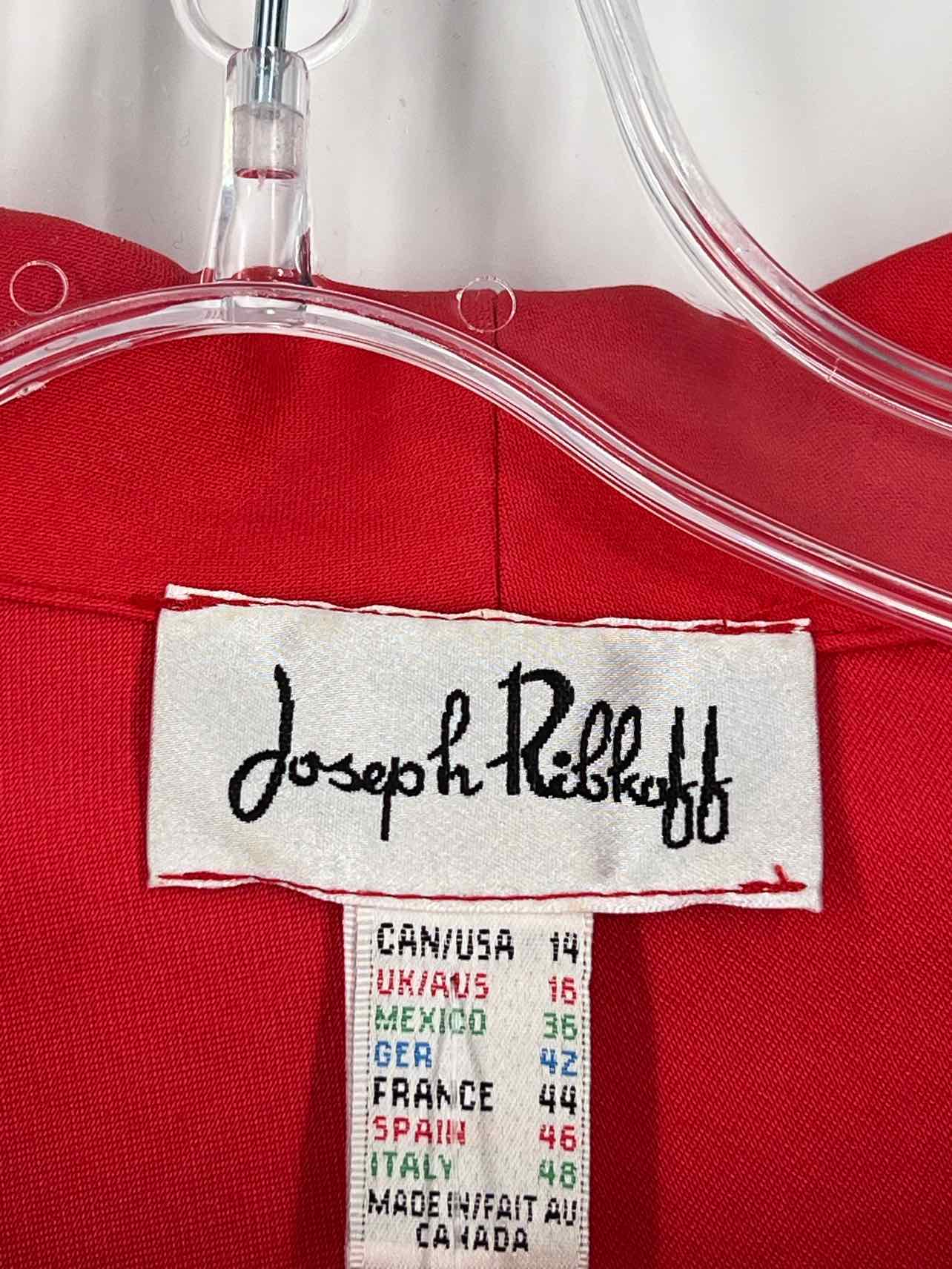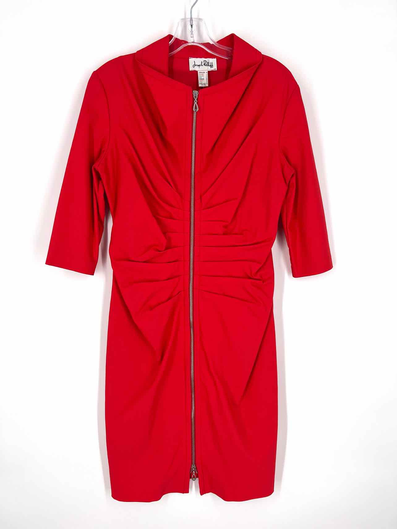 Joseph Ribkoff Size 14 Red-Orange Zipper Ruched Designer Dress
