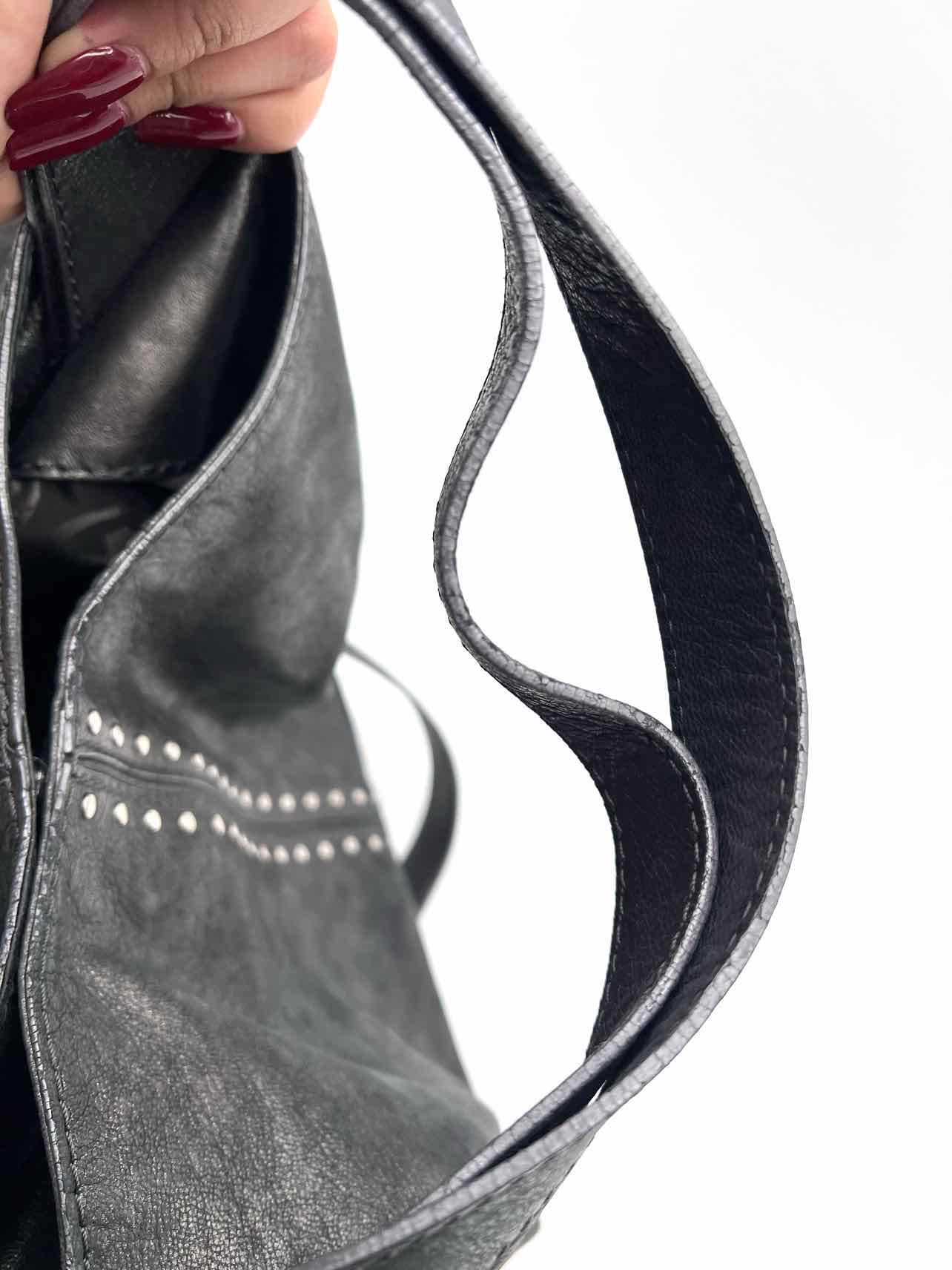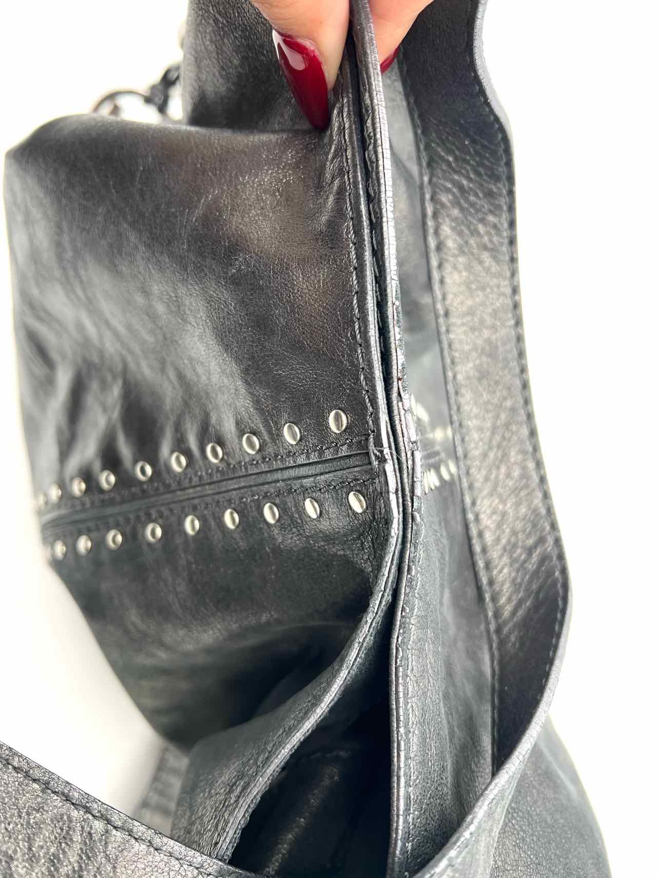 Michael Michael Kors Charcoal/Silver Hobo Studded Leather AS IS Designer Satchel