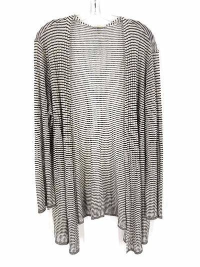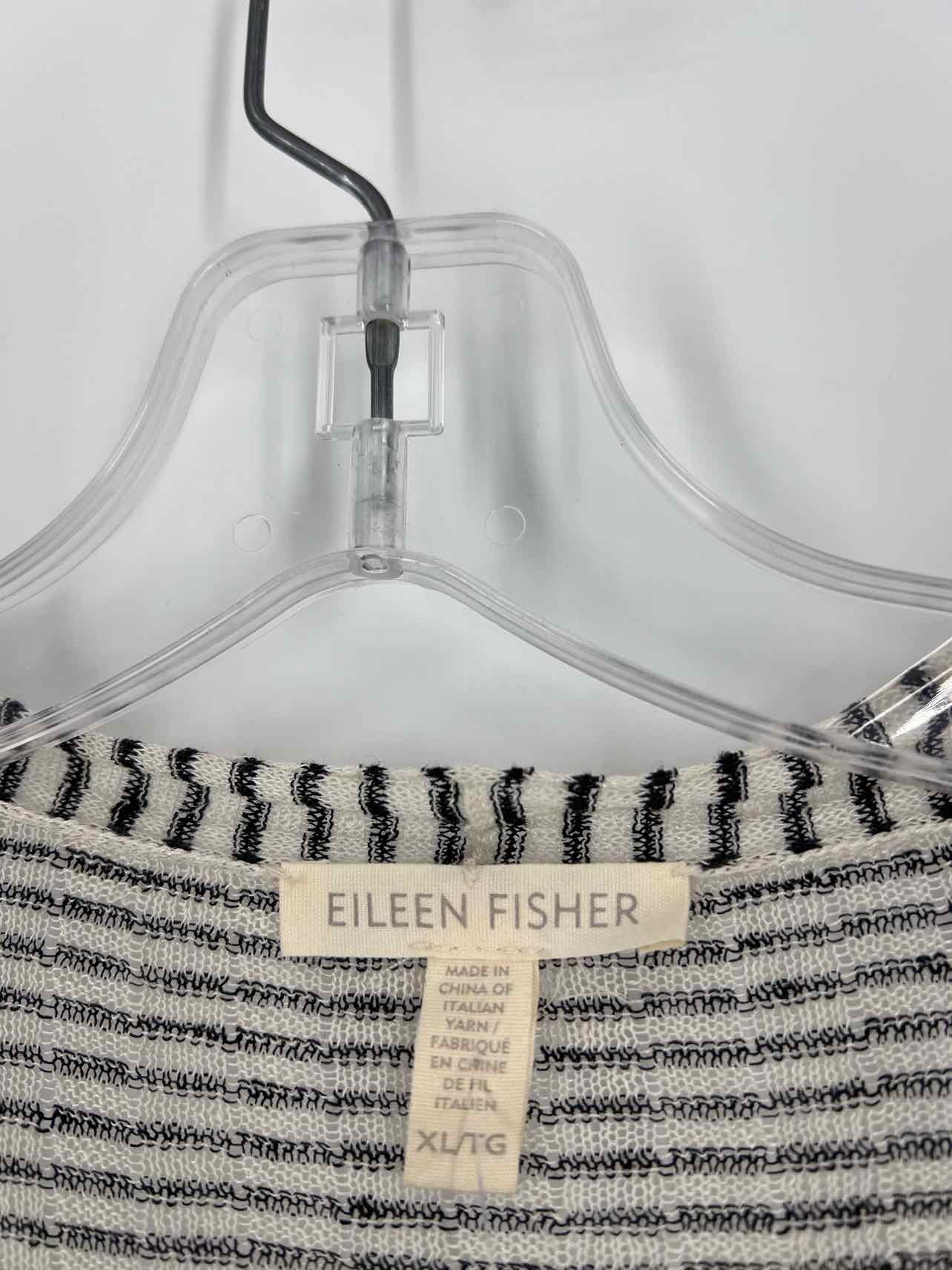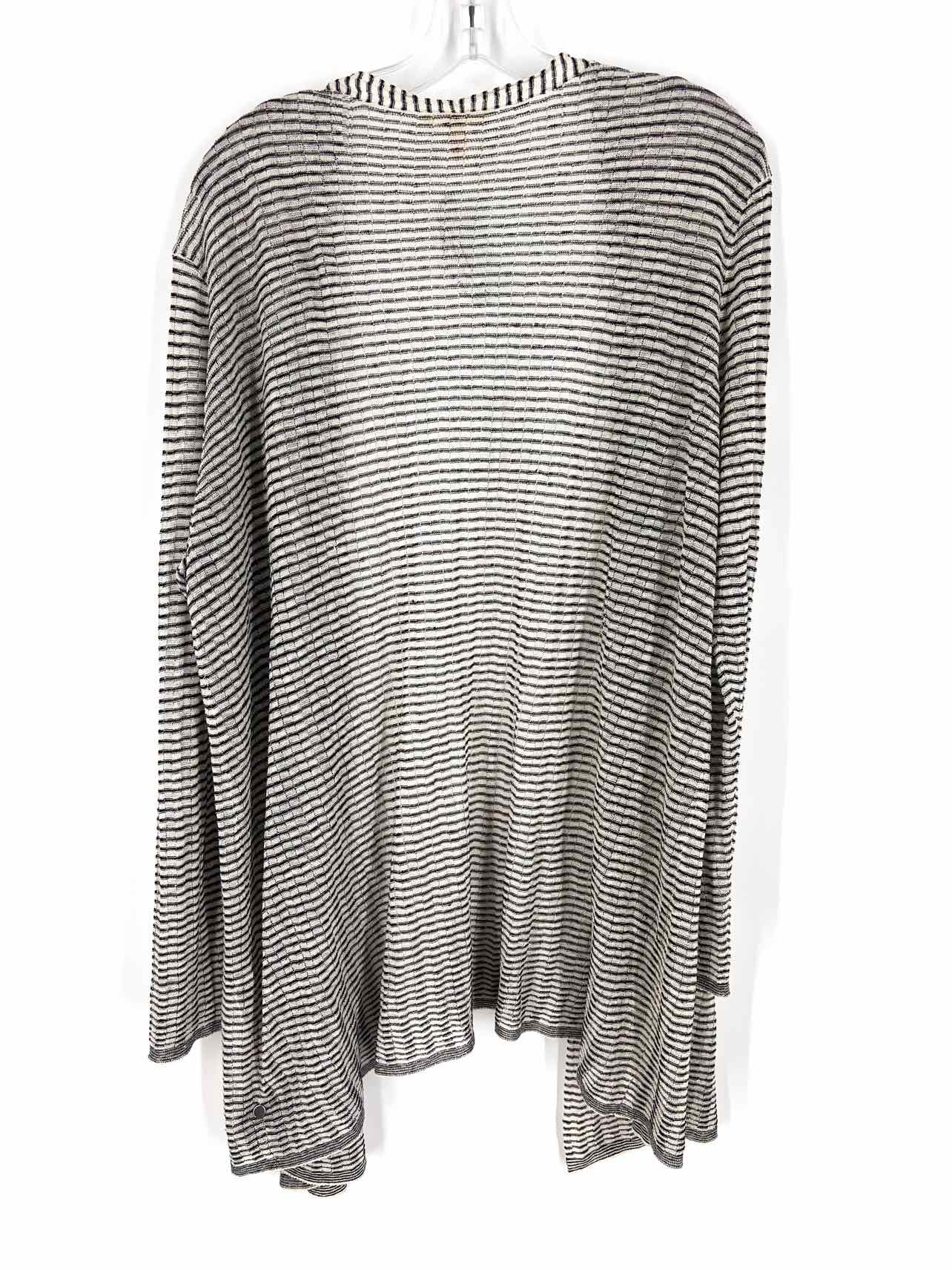 Eileen Fisher Size XL White/Black Stripe Linen Blend Designer Cardigan