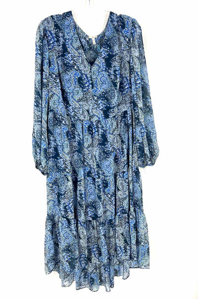 Joie Size XL Bl/Wh/Gr Paisley Tiered Designer Dress Maxi