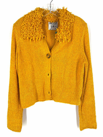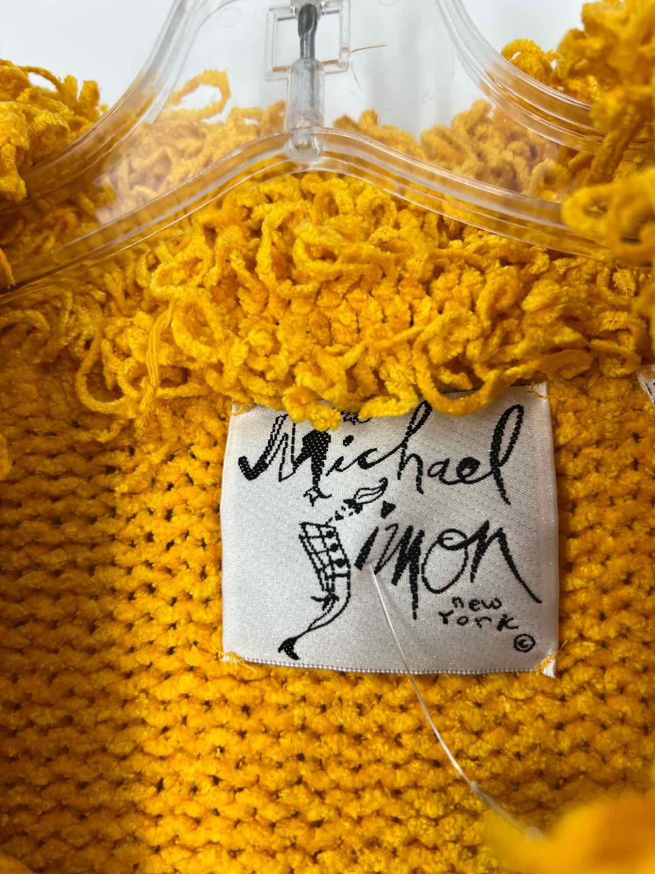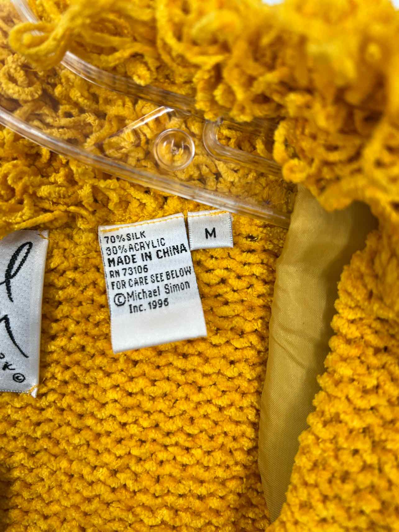 Michael Simon Size M Yellow Textured Knit Vintage Designer Cardigan