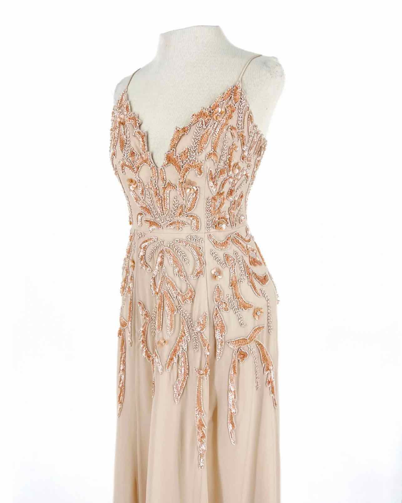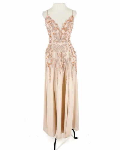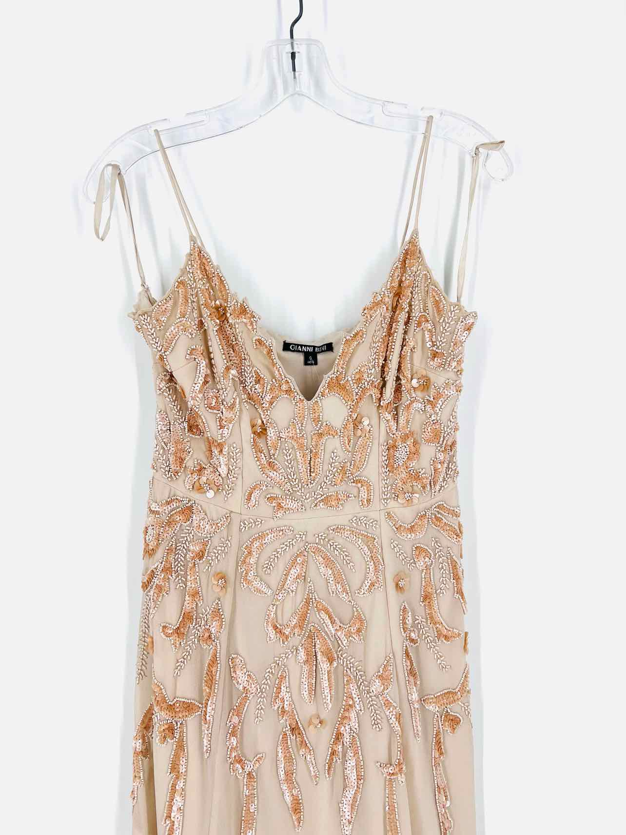Gianni Bini Size 0 Beige/Coral Sequined Beaded Formal Wear Formal
